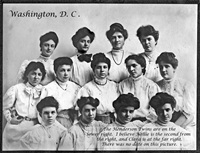 Clara Bell HENDERSON BROOKE, and her twin Nellie HENDERSON SCOTT in the lower right. The others, the date, and the place are unknown. Contributed May 2011 by Ann Chandler
