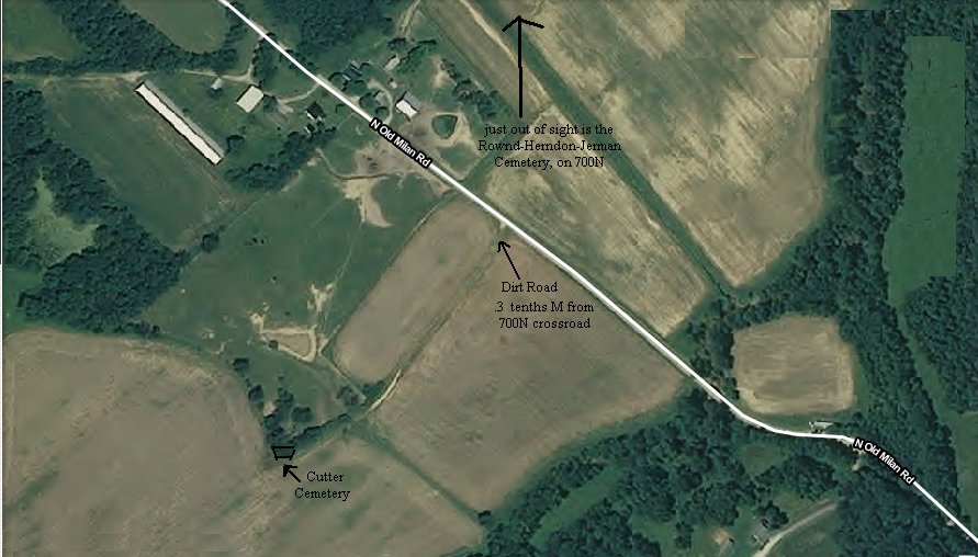 Cutter is further south and on the oppposite side of the road than the old cemetery, and has 10 unmarked graves in it also. FOUND!on Old Milan Road, .3 mile from 700N crossroad on property owned by Alan Crum (Crum Farms).Contact Alan before visiting the cemetery please 812-852-4424 or 812-852-2057. ![]() |
