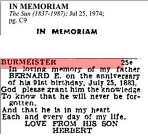 In loving memory of my father Bernard E. Burmeister on the anniversary of his