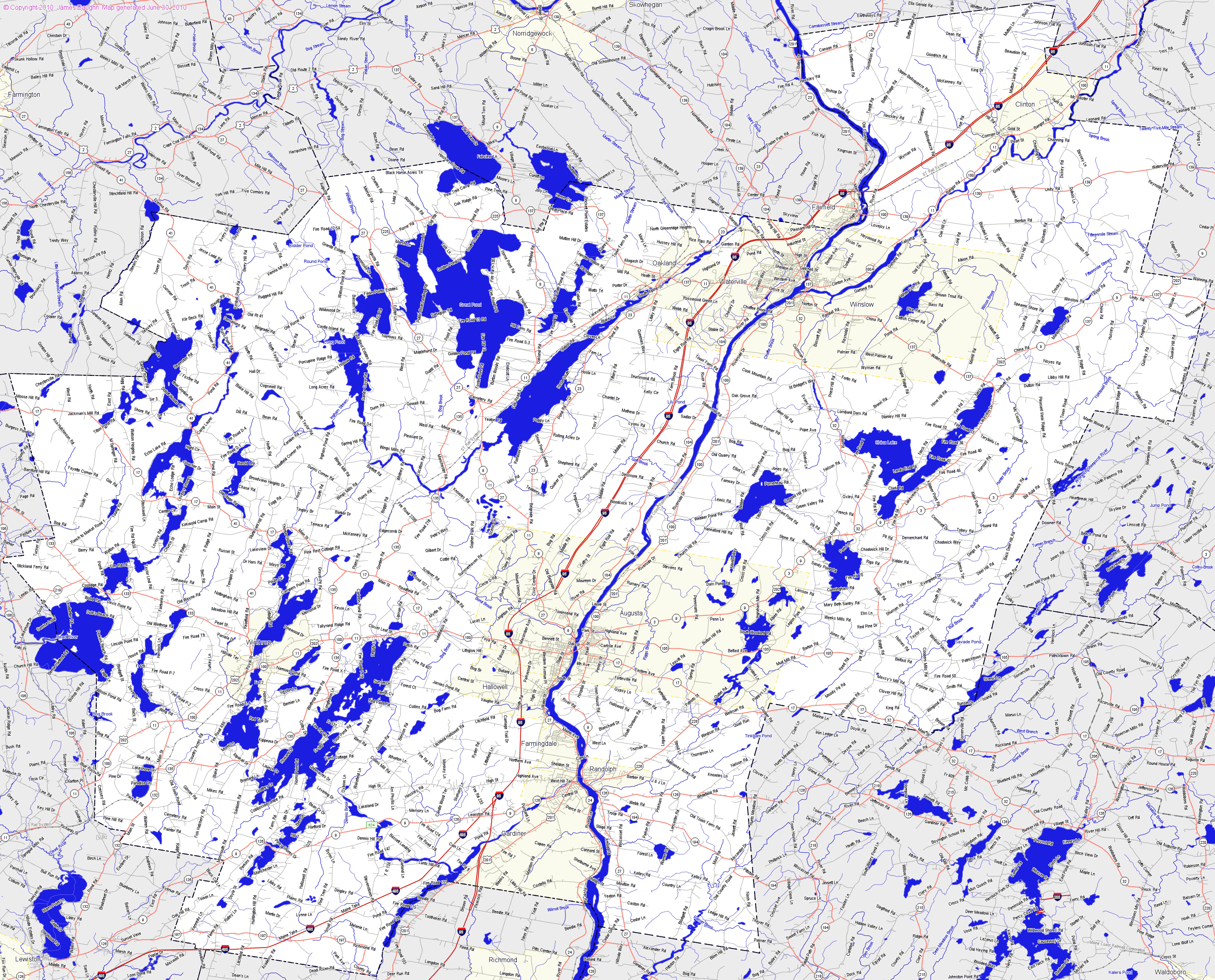 Large detail map of Kennebec county Maine