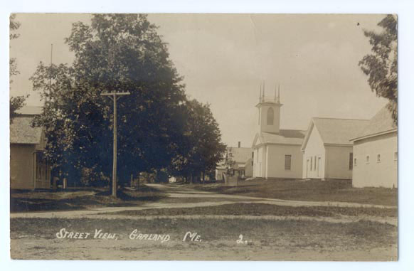On the 22d of June, Joseph Garland came from New Hampshire with his wife and three children to Bangor, which was then a village with but two stores, and placing his wife on a horse with one child before and another behind, he drove his stock by spotted trees to Garland. From this circumstance, when the town was incorporated, it took the name of Garland. During this year a saw-mill was built by the proprietors, and in 1803 several frame buildings were erected. In 1805, there were twelve families within the limits of the town. In 1806, the first school was opened by William Mitchell, in the house of Joseph Garland. In 1810, a Congregational church was organized, which was one of the first of the kind in Penobscot County. In 1811, the town was organized, when there were about fifty legal voters. The Freewill Baptists organized a church in 1813.