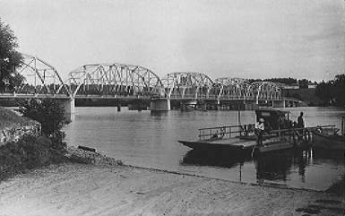 Also shown is the ferry that was the old method of crossing the river.