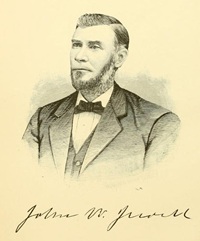 John W. Jewell early learned to labor. When but five years old he was tied in a chair and set to drive a horse to grind bark in his father's tan-yard, and from that day onward he has never shrank from earnest discharge of such of life's laborious duties as have fallen to his lot. He early and thoroughly learned his father's trade. When he was eighteen, his father consenting, he commenced working for himself on a farm. After a short time he was taken ill, and returned home. The next spring he expended the money he had then earned in attending Gilmanton Academy. Then for three successive summers he worked in a steam saw-mill, teaching school during the winter, and in the spring and fall attending Strafford Seminary (now Austin Academy) and Gilmanton Academy. In 1853 he went to Newmarket as "second hand" in the cloth-room of the Newmarket Manufacturing Company, but soon went to Manchester, whence in a very short period of time he returned to Newmarket, and spent one year as clerk for S. A. & B. F. Haley, merchants; then, at the urgent request of Hon. B. W. Jenness, the leading business man of Stratford, he entered his employ, and remained with him until 1864, when Mr. Jenness removed to Ohio, and Mr. Jewell purchased his stock of goods at Bow Lake, and has been since, and now is, the leading merchant of the town.