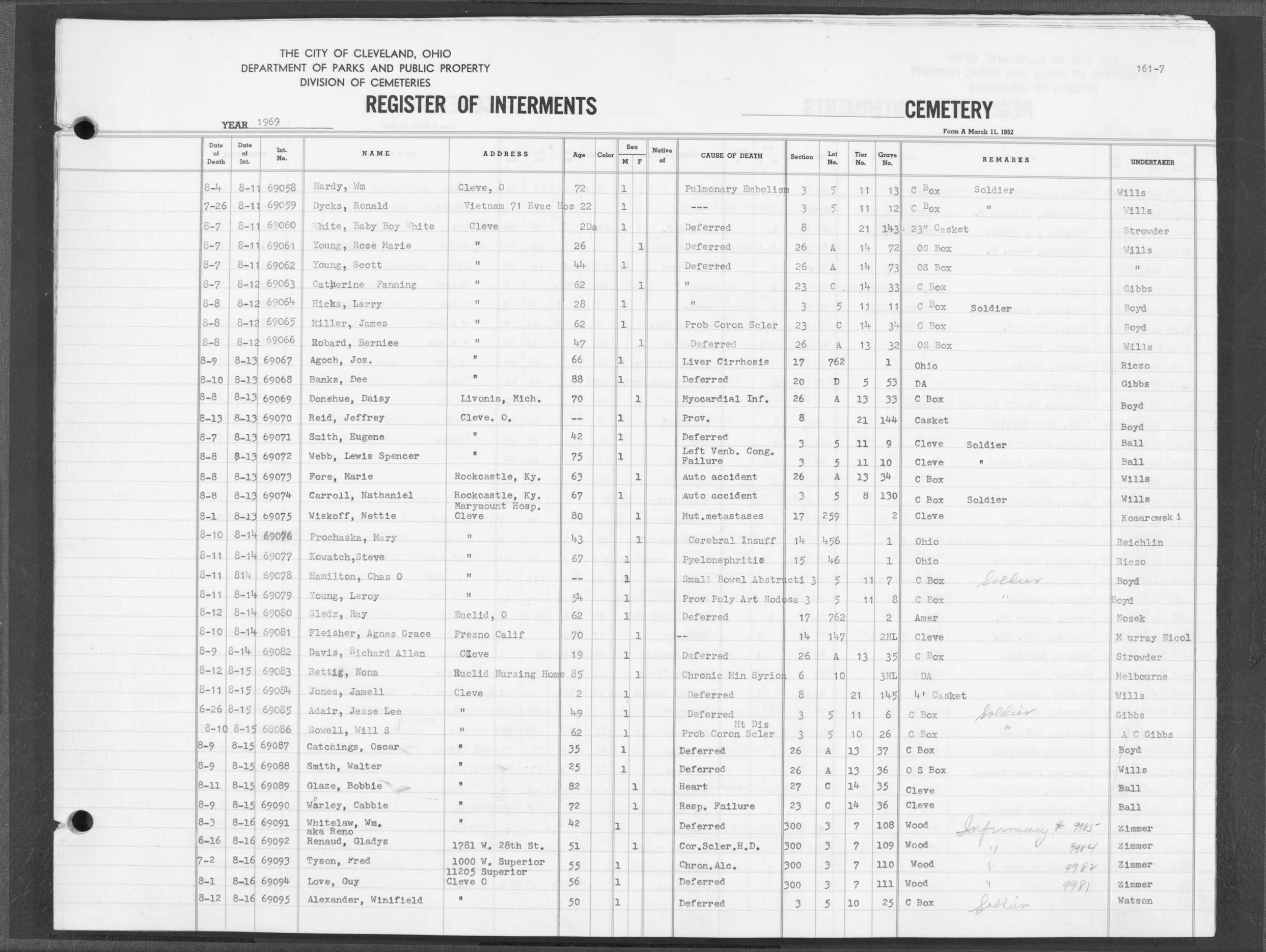 | West Park | 5 | 91 | Aug | 20 | 1971 | Aug | 24 | 1971 | 34186 | Alberty, Fred Clarence | 61y | M | ||