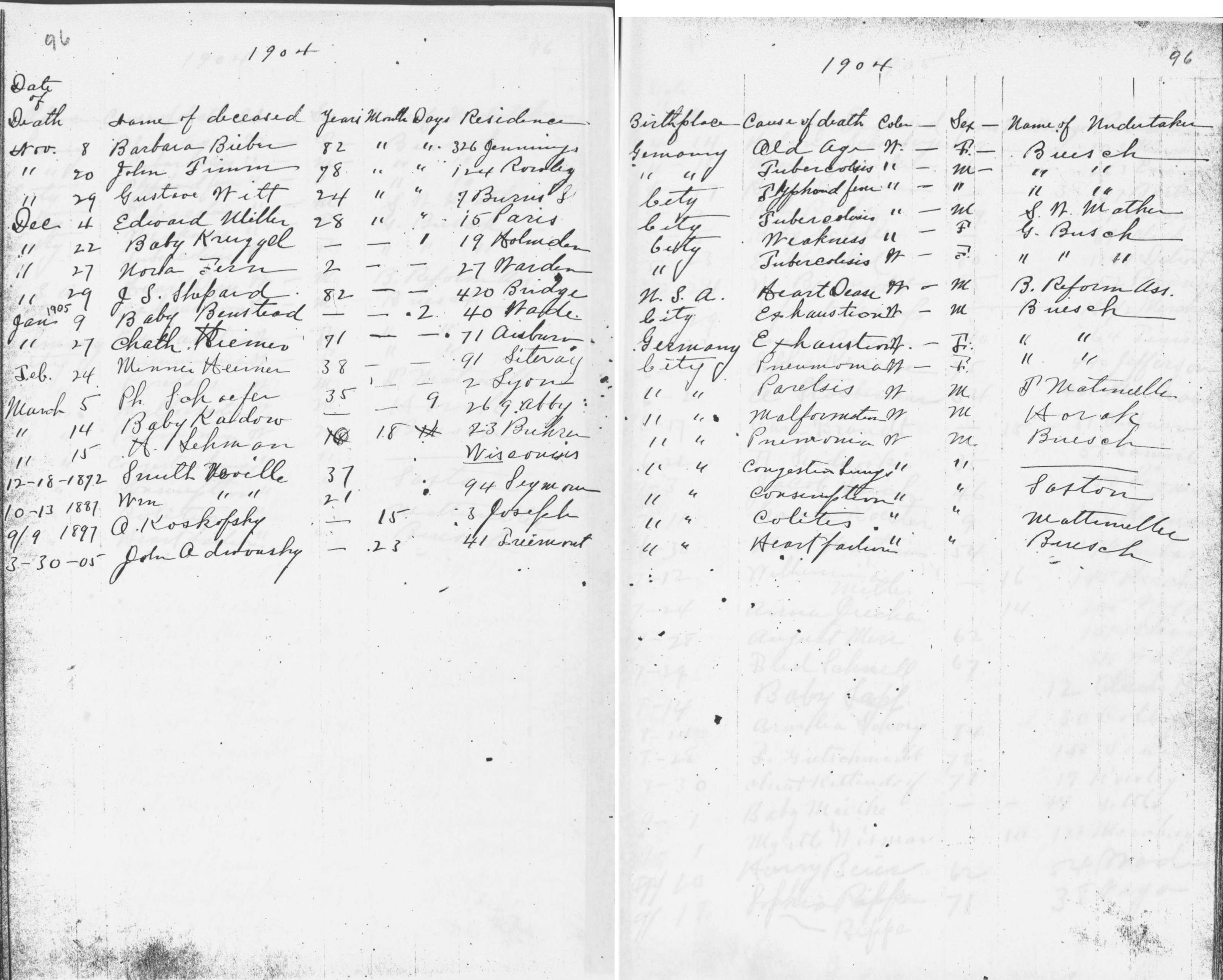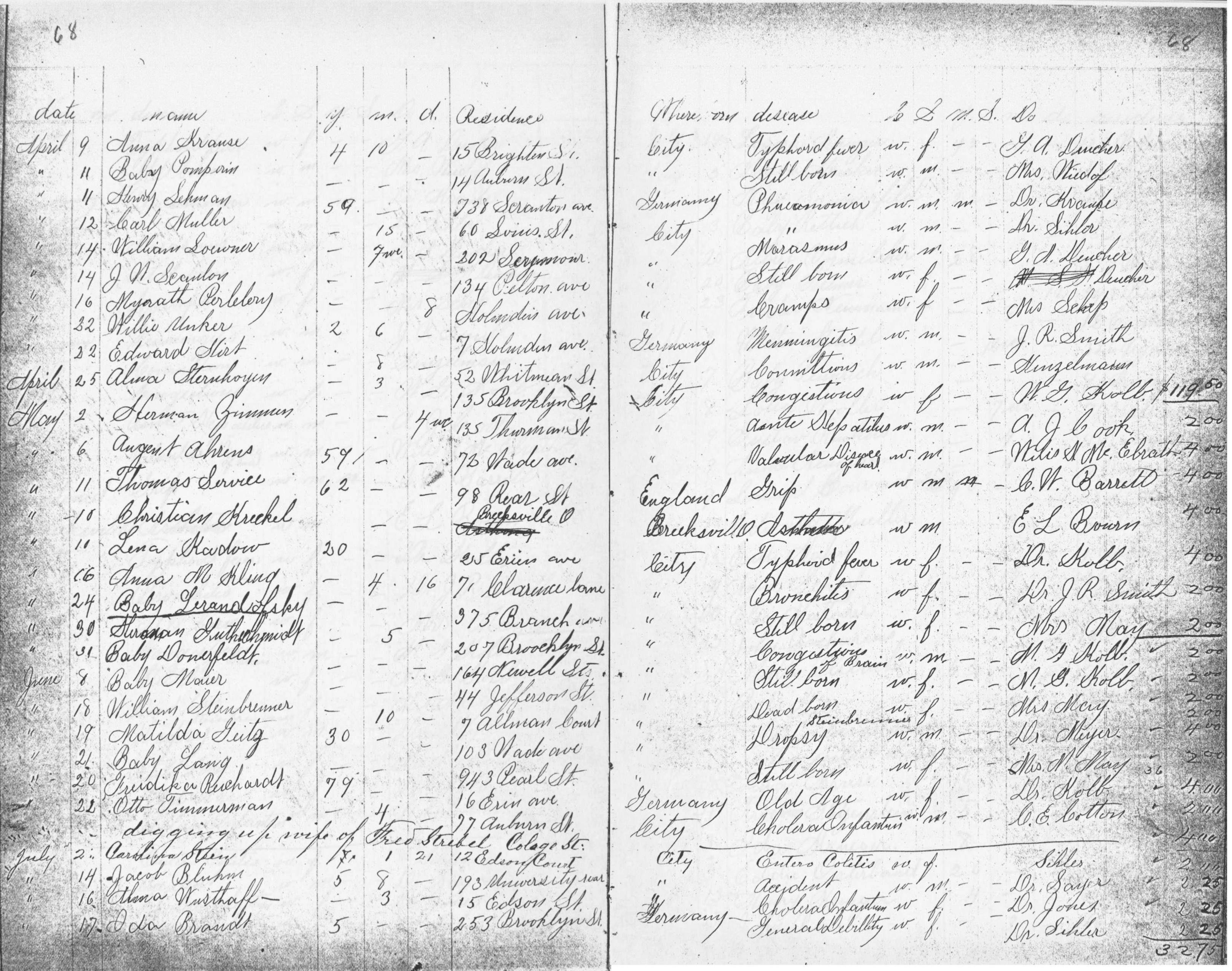 | Monroe Street | 2 | 219 | Mar | 31 | 1896 | 19098 | Albers, Maria E | 55y | W | F | ||||