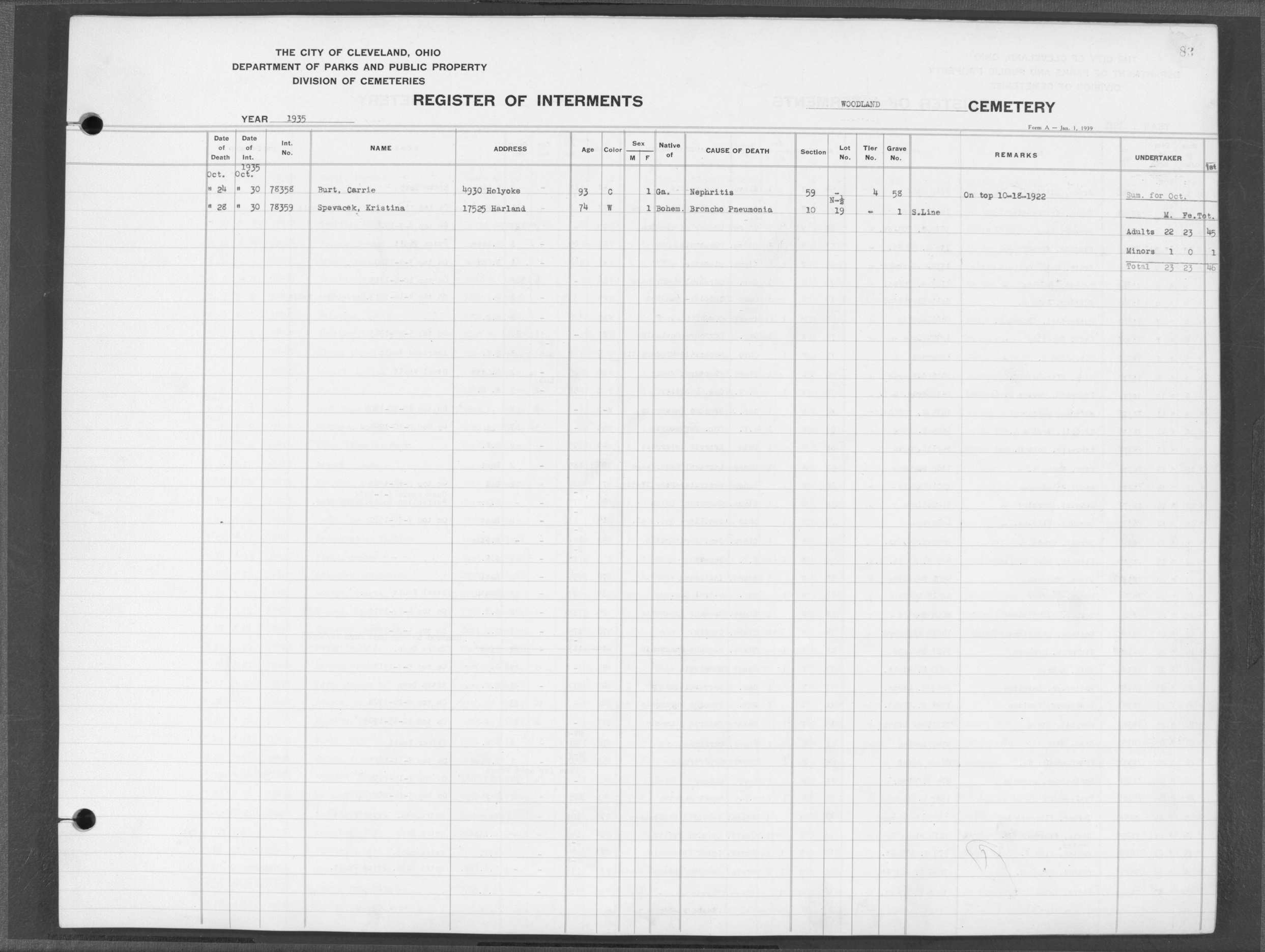 | Highland Park | 2 | 88 | Nov | 27 | 1927 | Dec | 1 | 1927 | 10636 | Burrell, Alice | 59y | B | F | |