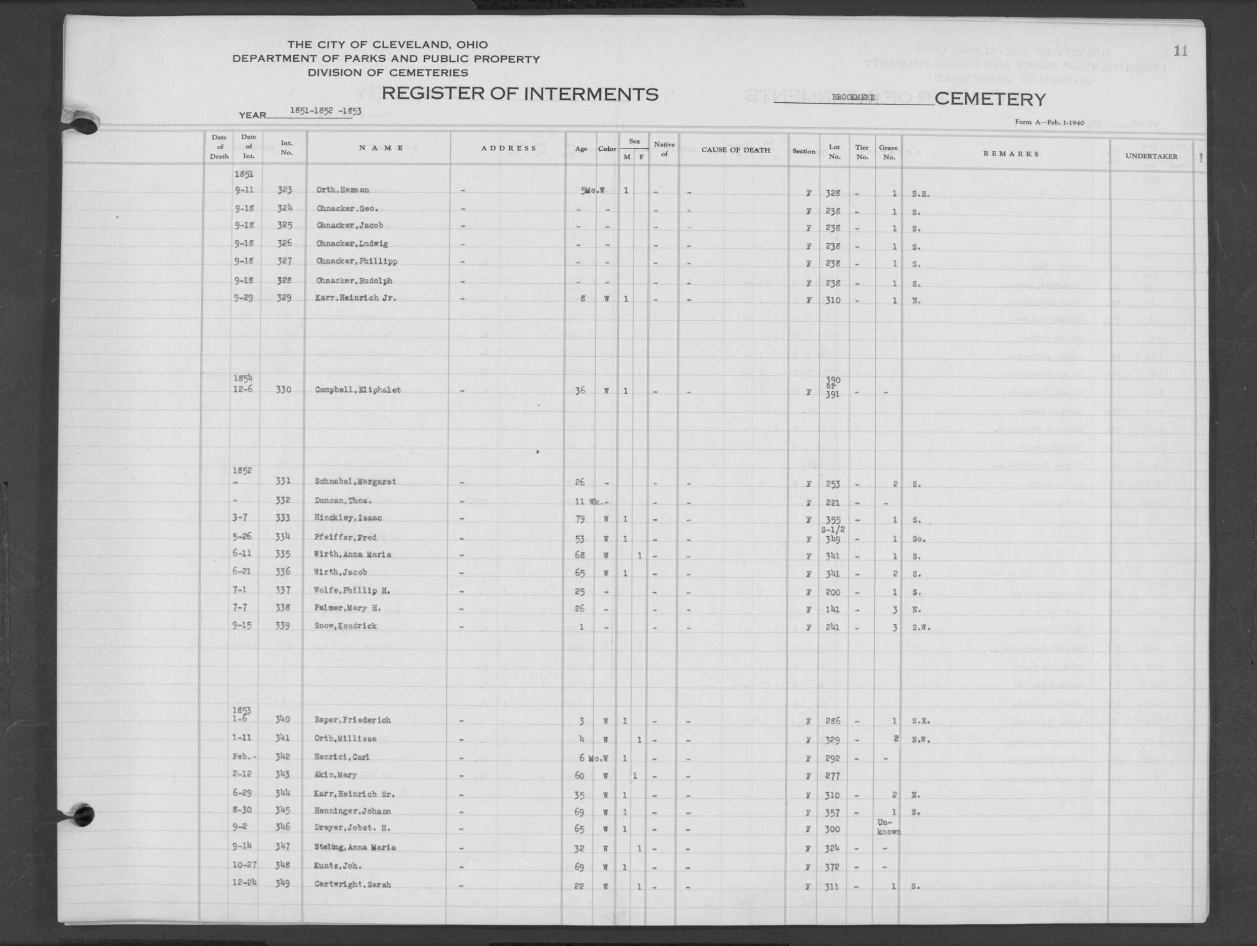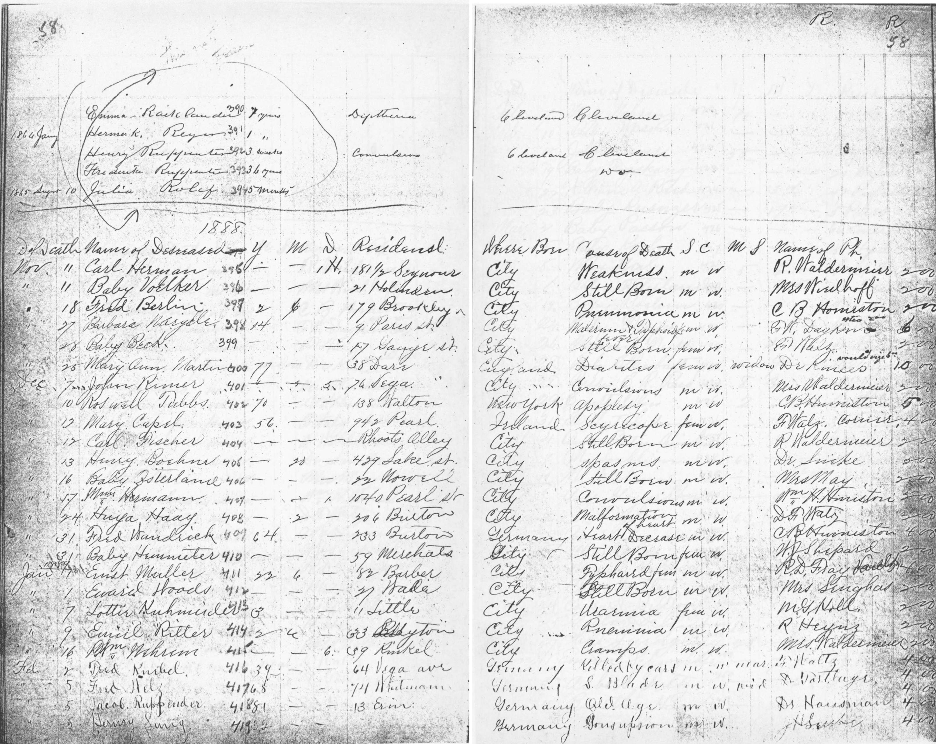 | Erie Street | 1 | 184 | Mar | 18 | 1858 | 7490 | Cabbelder, Walter | 4m | W | M | ||||