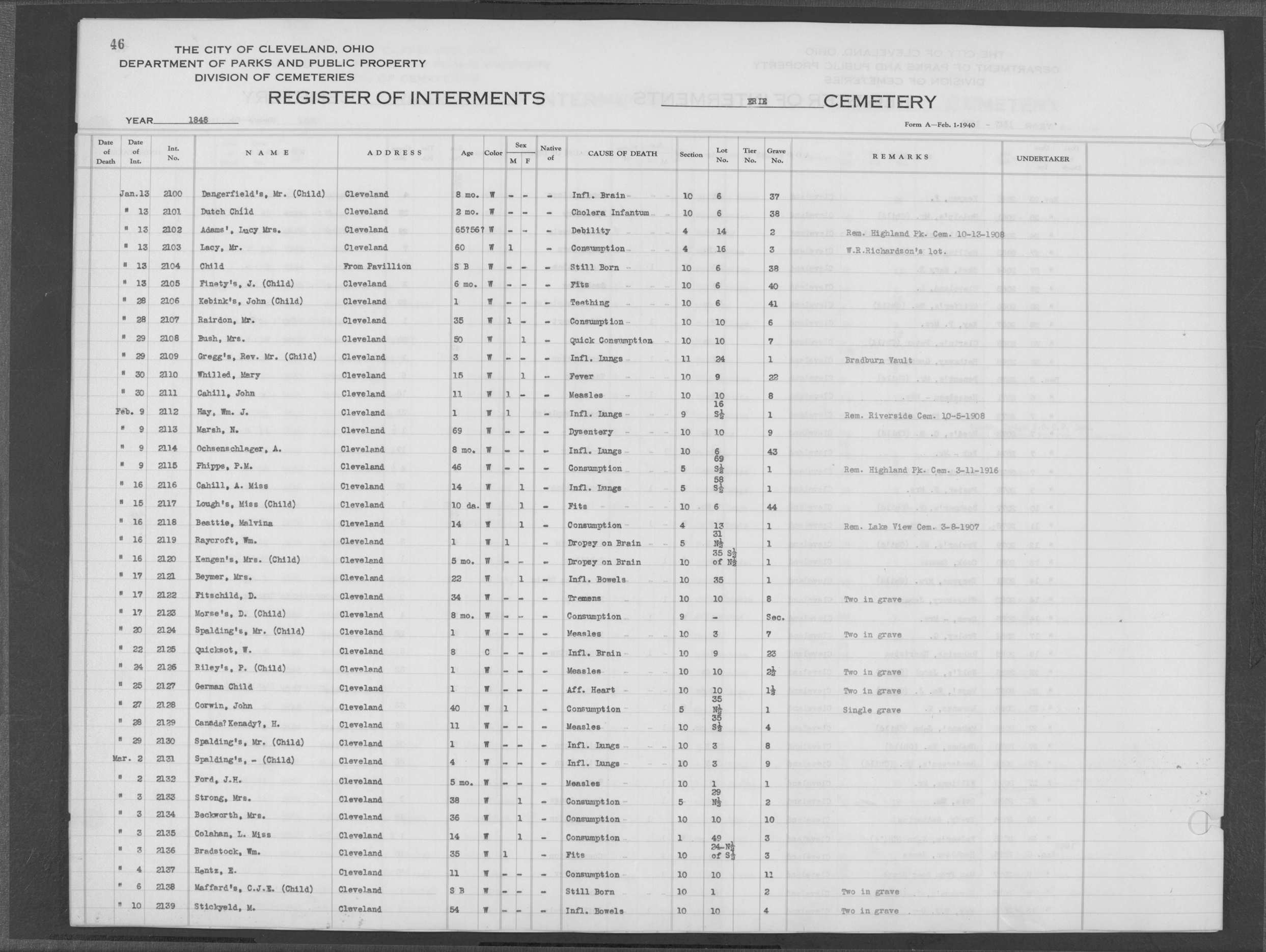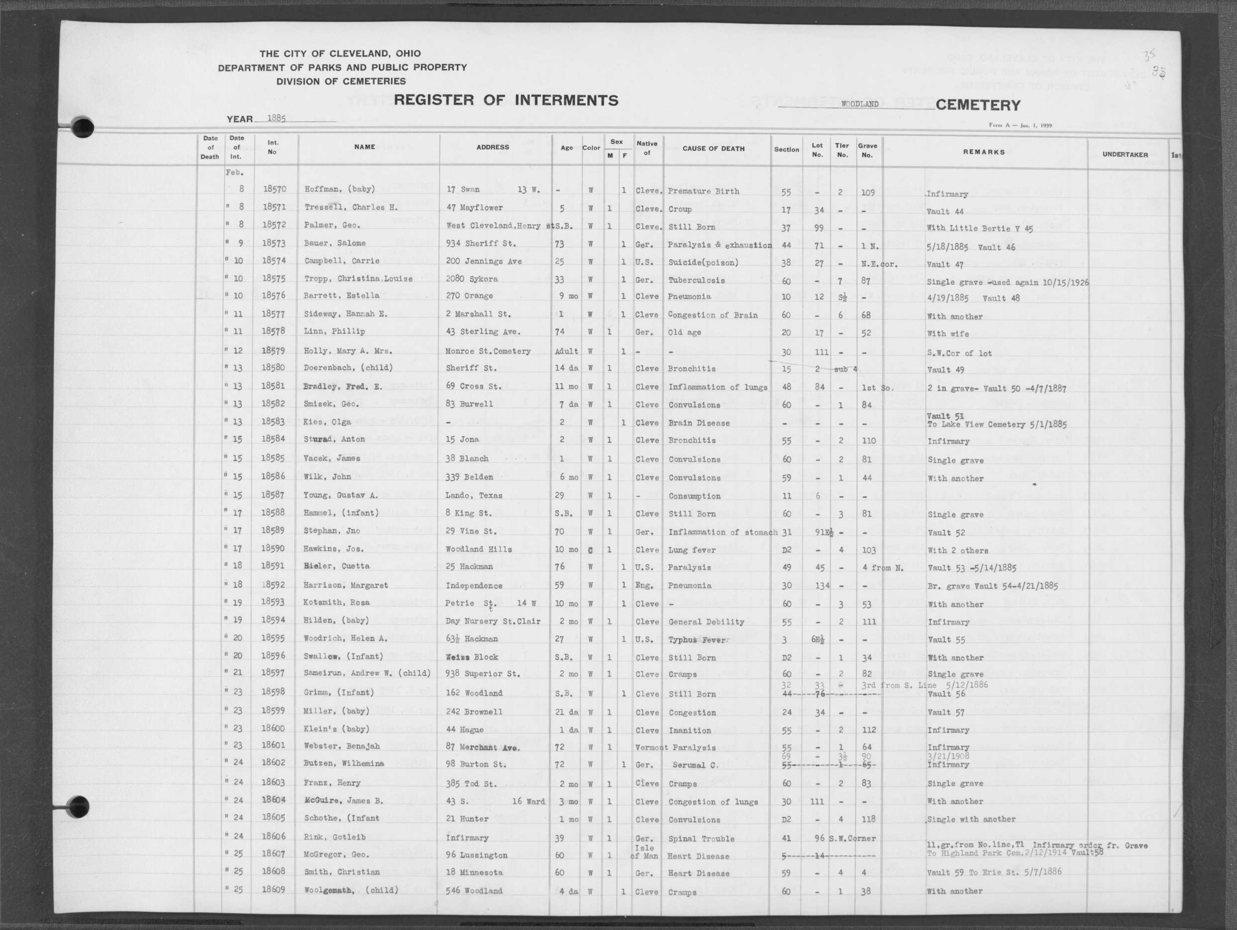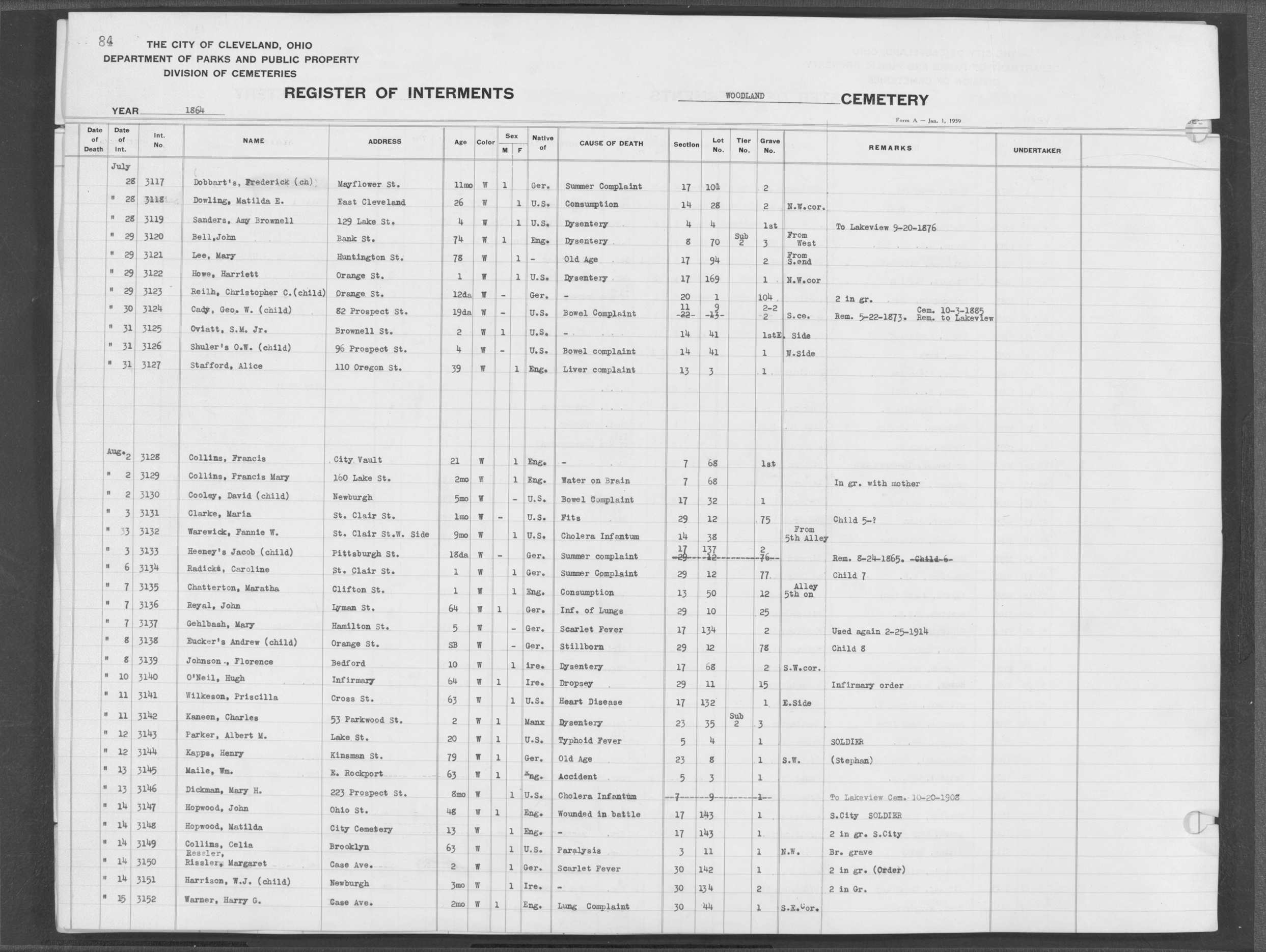 | Monroe Street | 1 | 35 | Oct | 1 | 1867 | 5859 | Capeter, Elizabeth | 1y | W | F | ||||