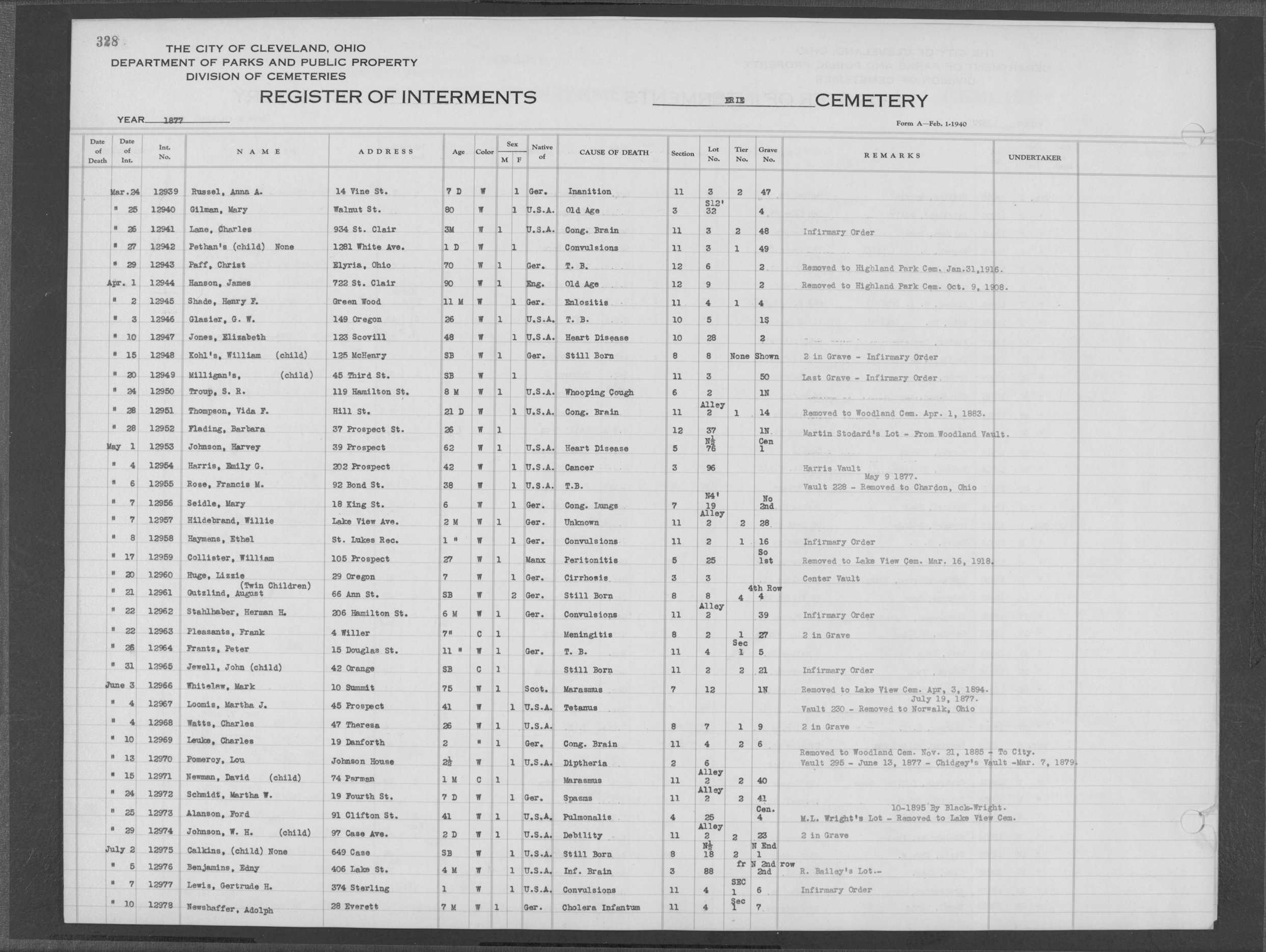 | Erie Street | 1 | 319 | Feb | 2 | 1876 | 12674 | Capell, John | 1y | W | M | ||||