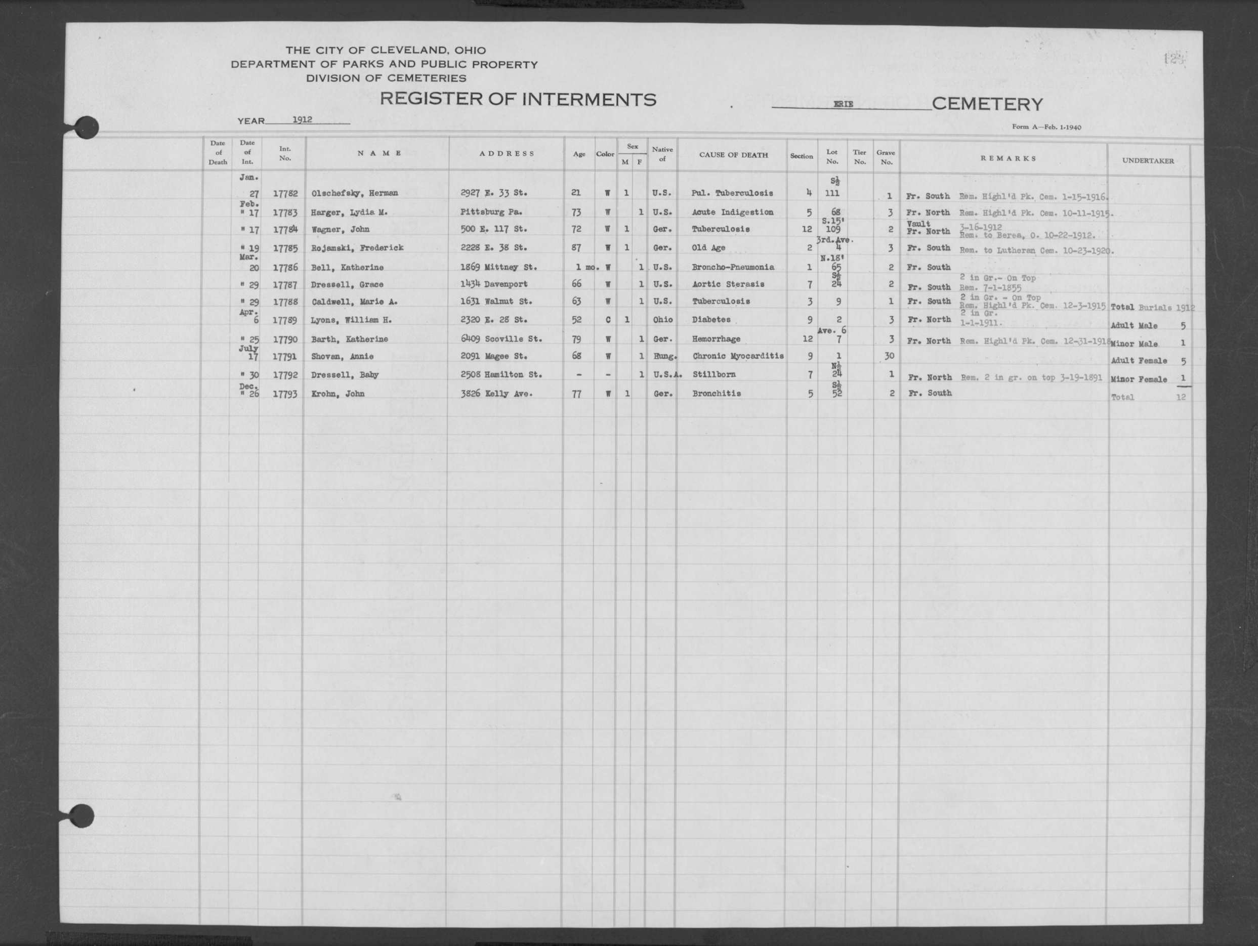 | Erie Street | 1 | 322 | Aug | 12 | 1876 | 12803 | Canusky, M | 1y | W | M | ||||