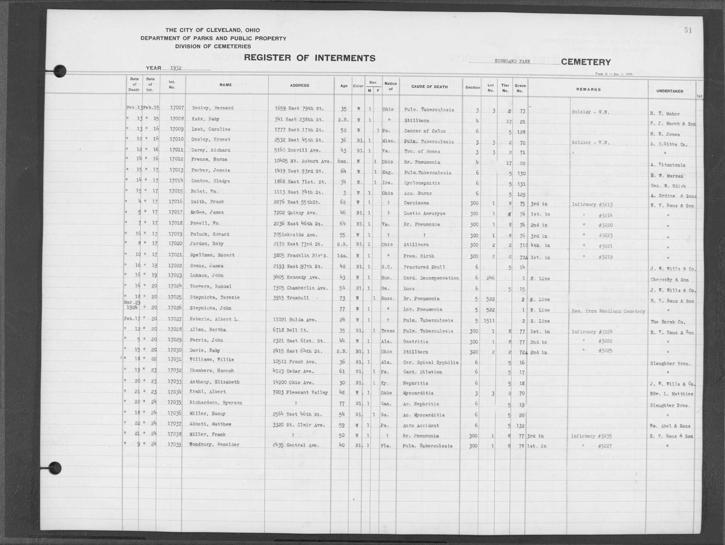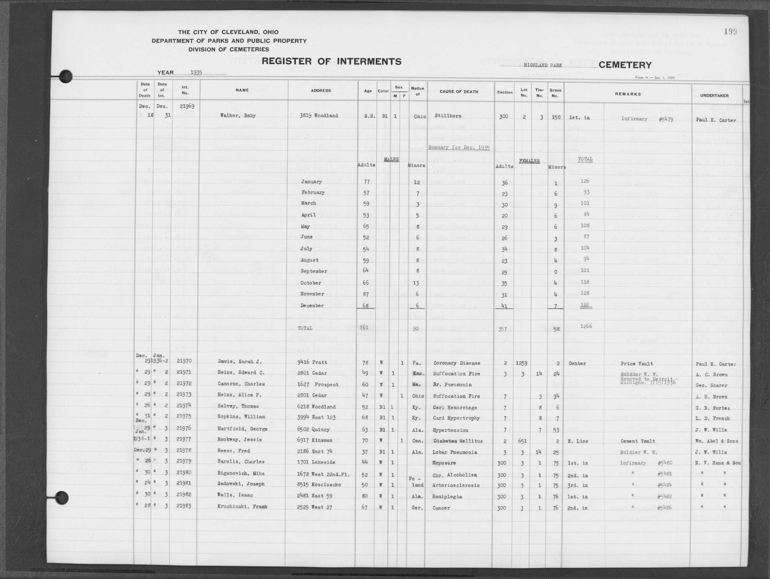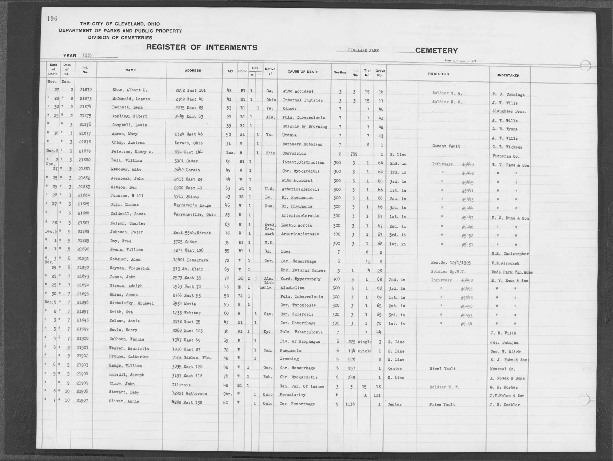 | Highland Park | 2 | 158 | Aug | 1929 | Aug | 9 | 1929 | 13206 | Capek, Joseph | 54y | W | M | ||