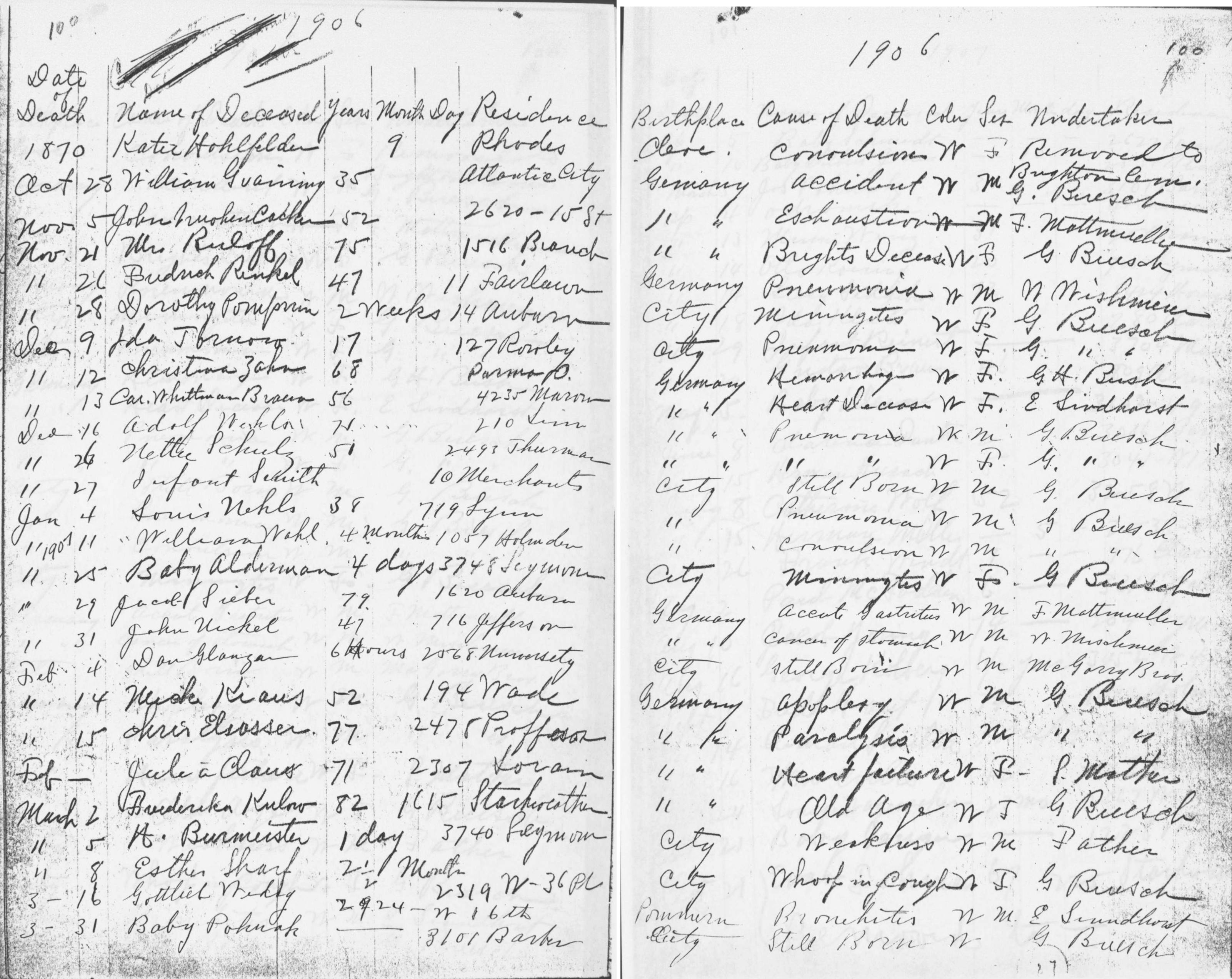 | Scranton Road | 1 | 100 | Nov | 5 | 1906 | Cacker, John Nuohen | 52y | W | M | |||||