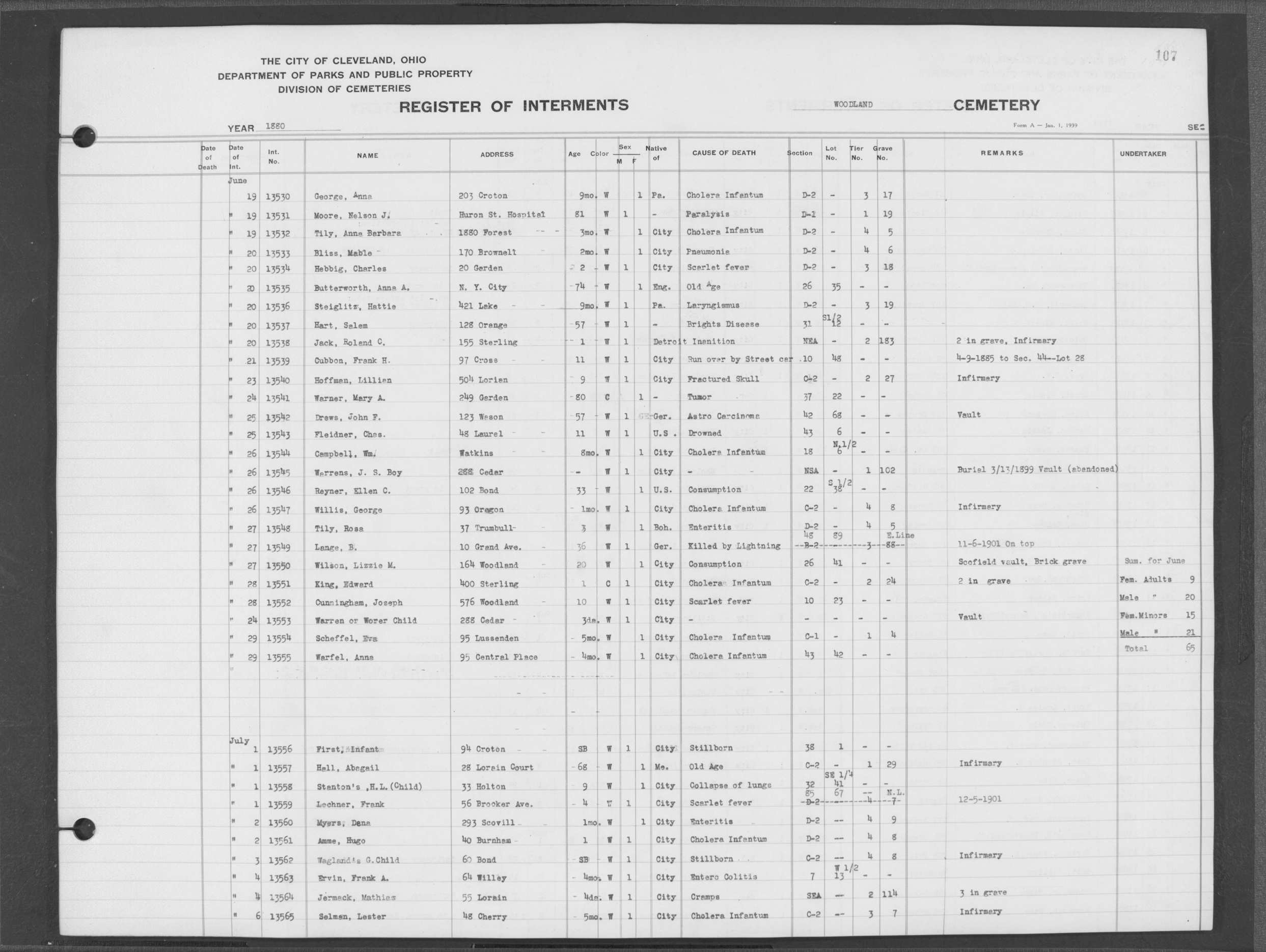 | Woodland | 1 | 164 | Jul | 6 | 1870 | 5970 | Capan, Edward | 8m | W | M | ||||