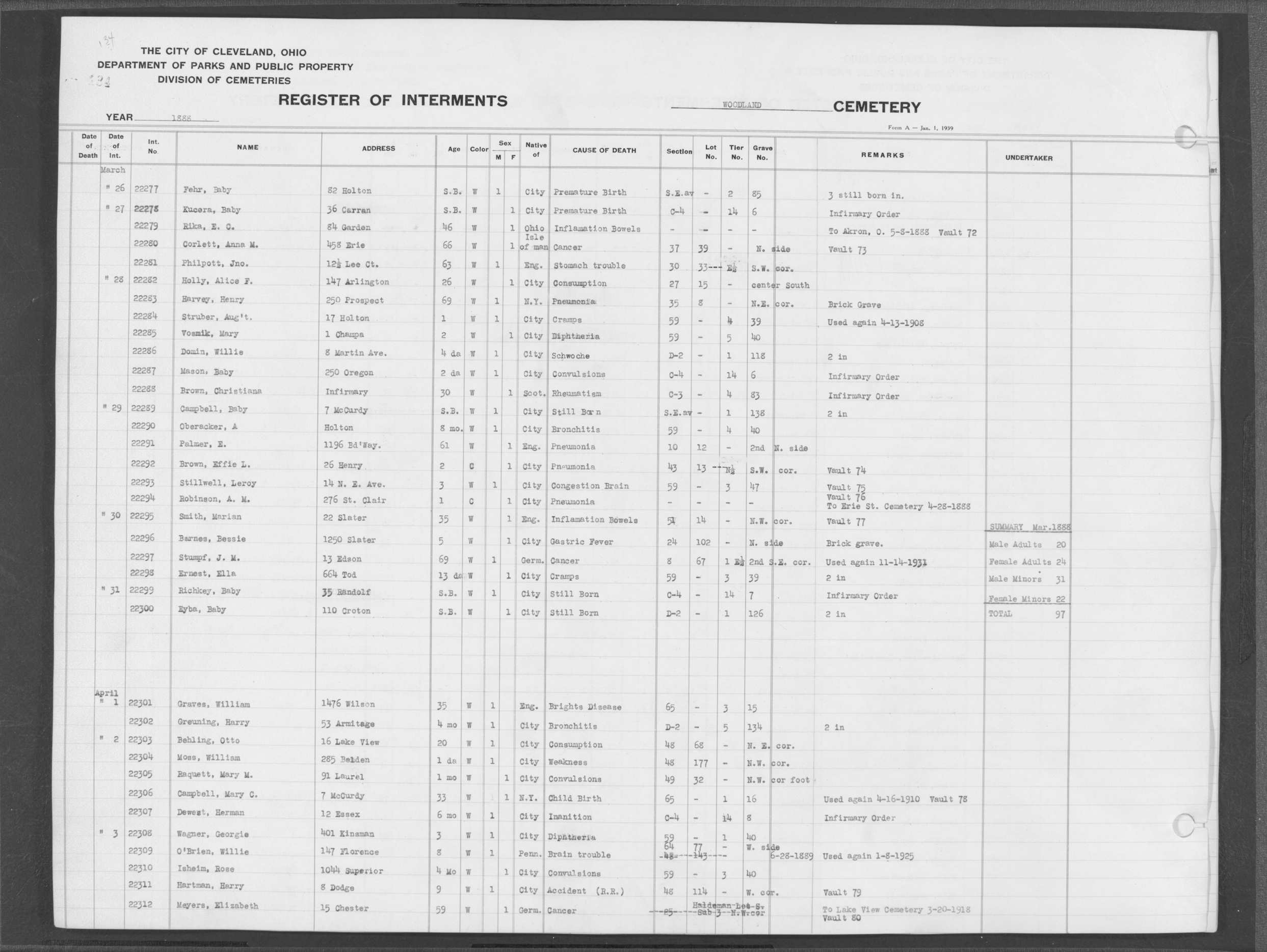 | Woodland | 4 | 97 | Apr | 28 | 1892 | 28428 | Capek, Mary | 45y | W | F | ||||