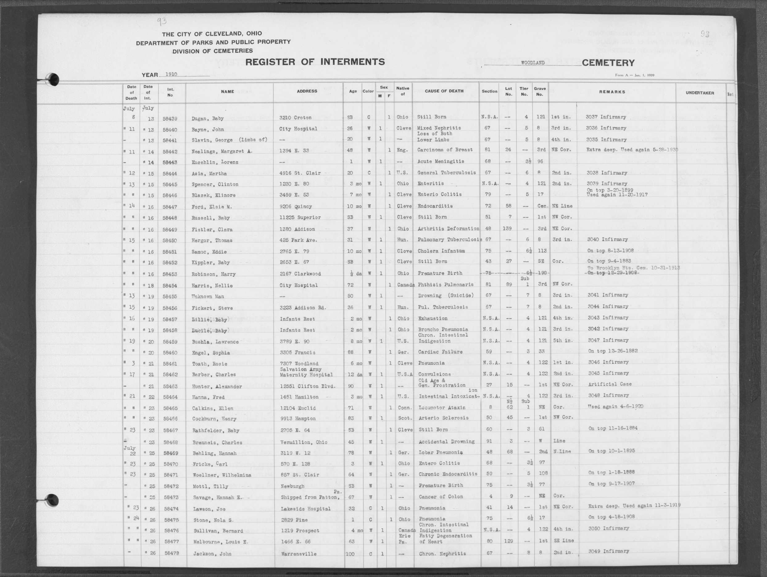| Highland Park | 3 | 108 | Jul | 1933 | Jul | 15 | 1933 | 19031 | Capek, Katherine | 75y | W | F | ||