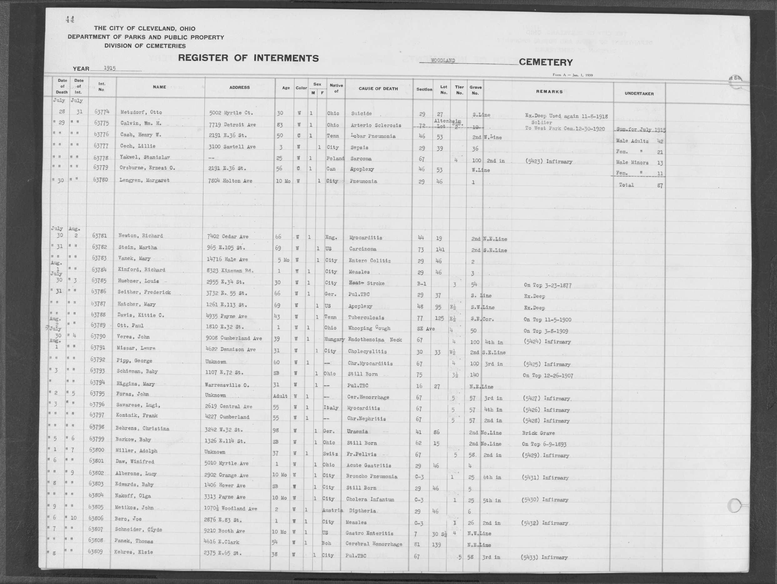 | Woodland | 9 | 18 | Aug | 26 | 1914 | Aug | 29 | 1914 | 62815 | Caddy, Wm | 47y | W | M | |