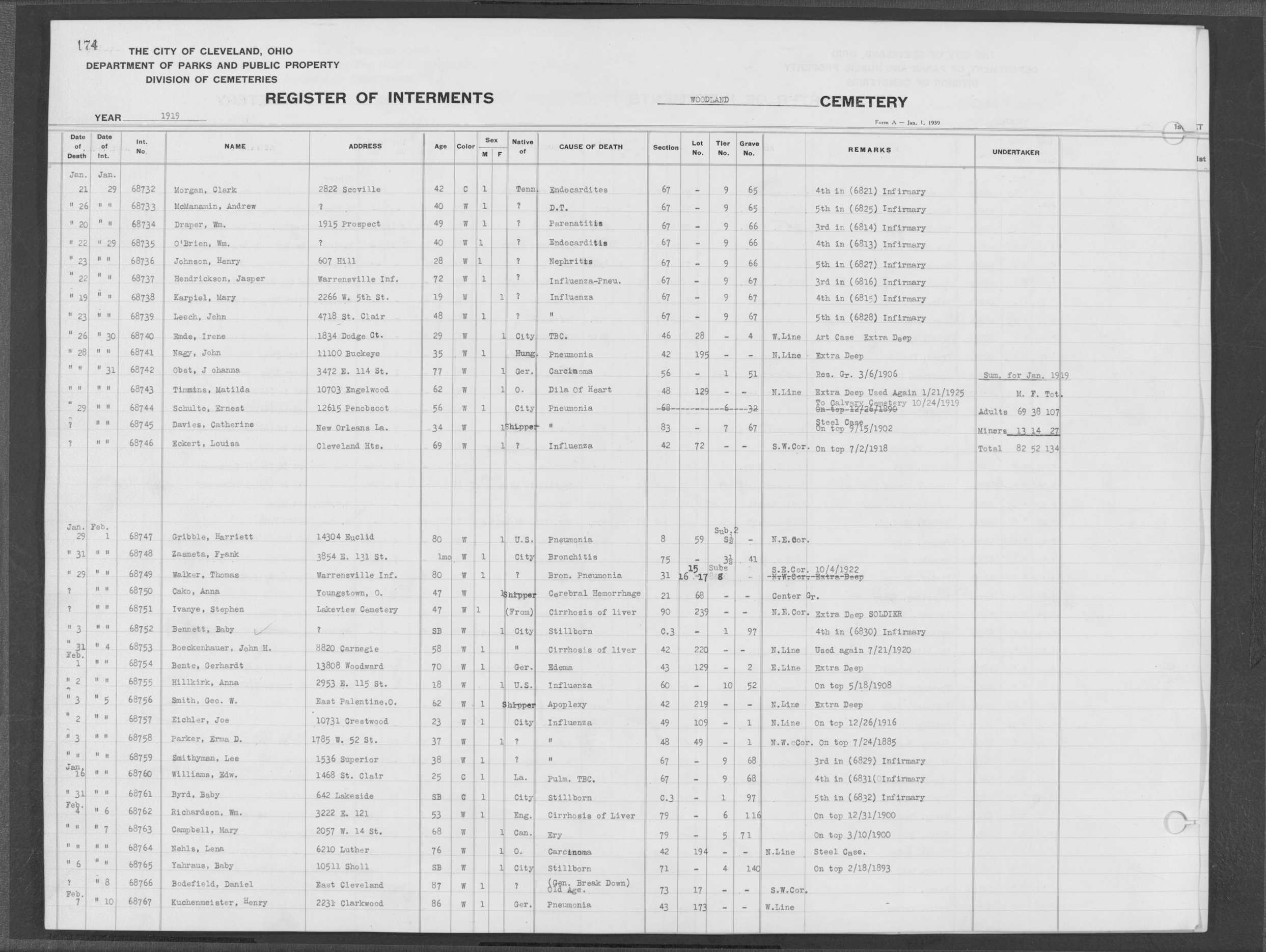| Woodland | 9 | 97 | Jan | 16 | 1917 | Jan | 19 | 1917 | 65817 | Caddy, Chas | 46y | W | M | |