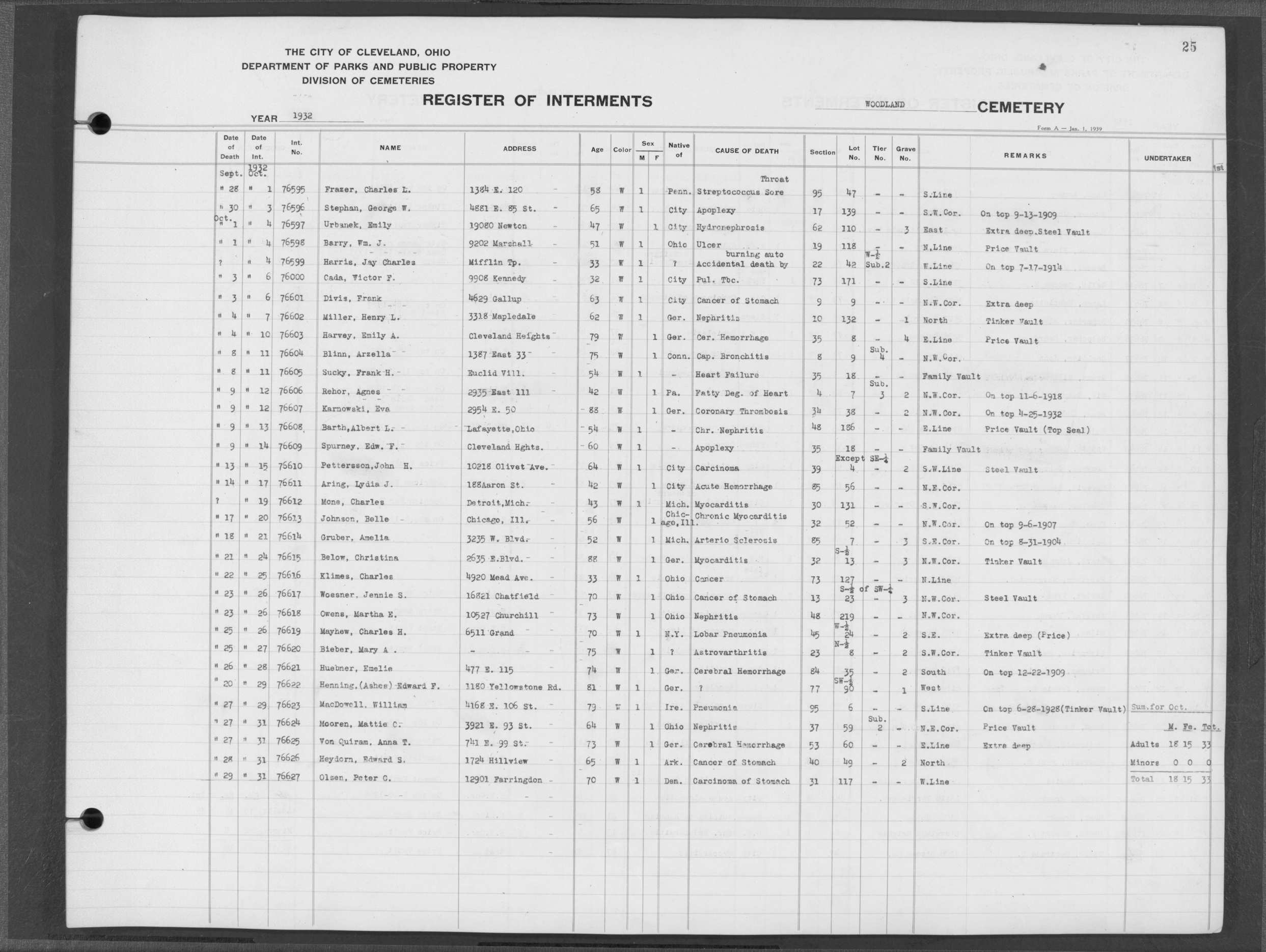 | Woodland | 11 | 25 | Oct | 3 | 1932 | Oct | 6 | 1932 | 76600 | Cada, Victor F | 32y | W | M | |