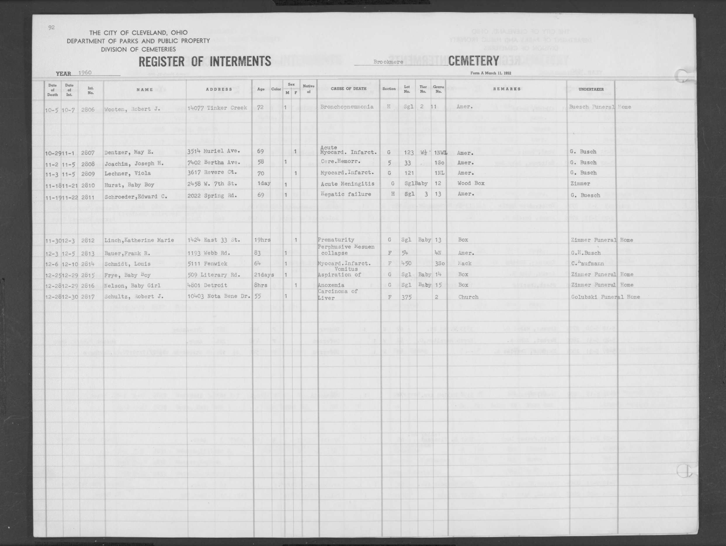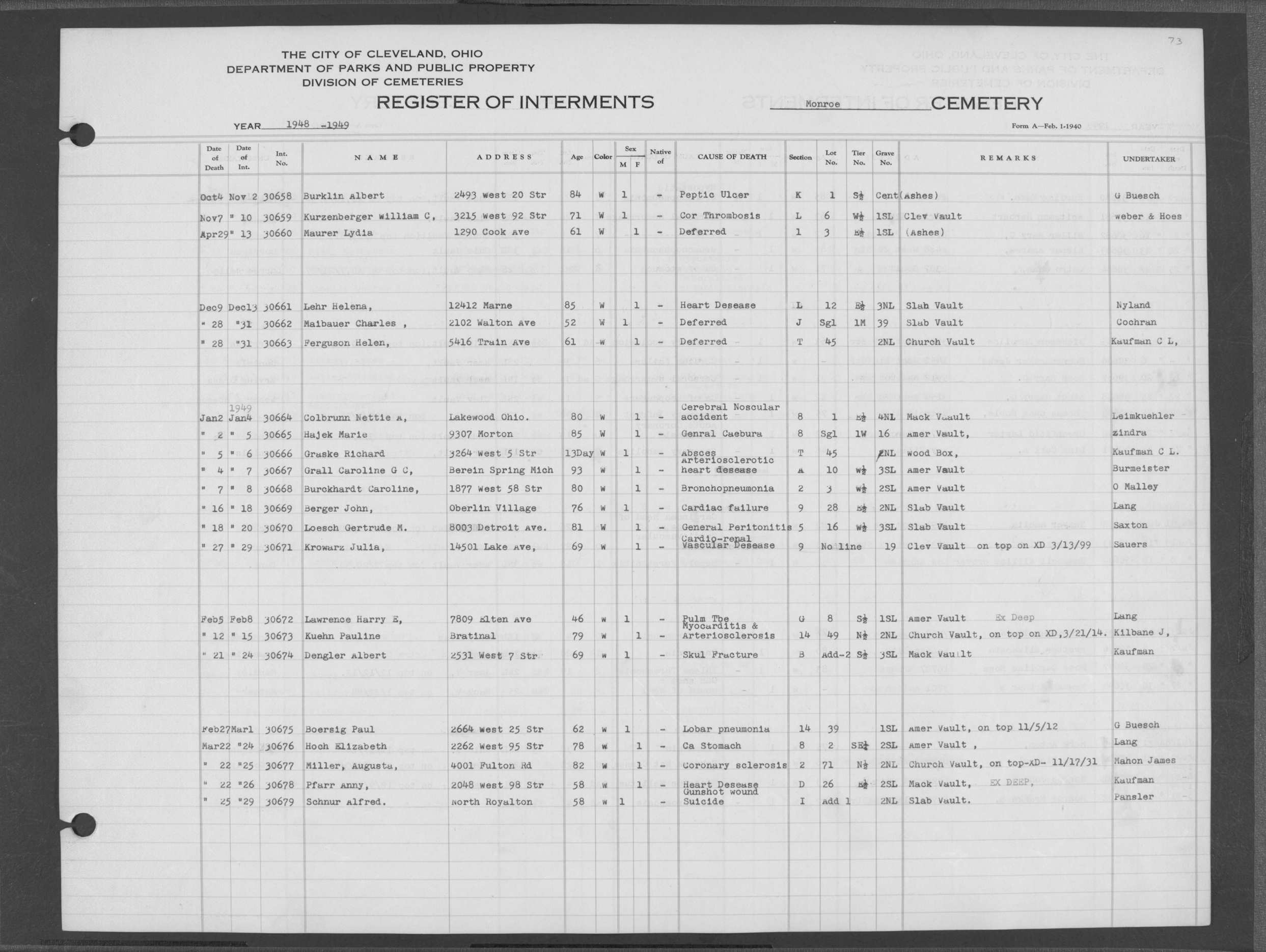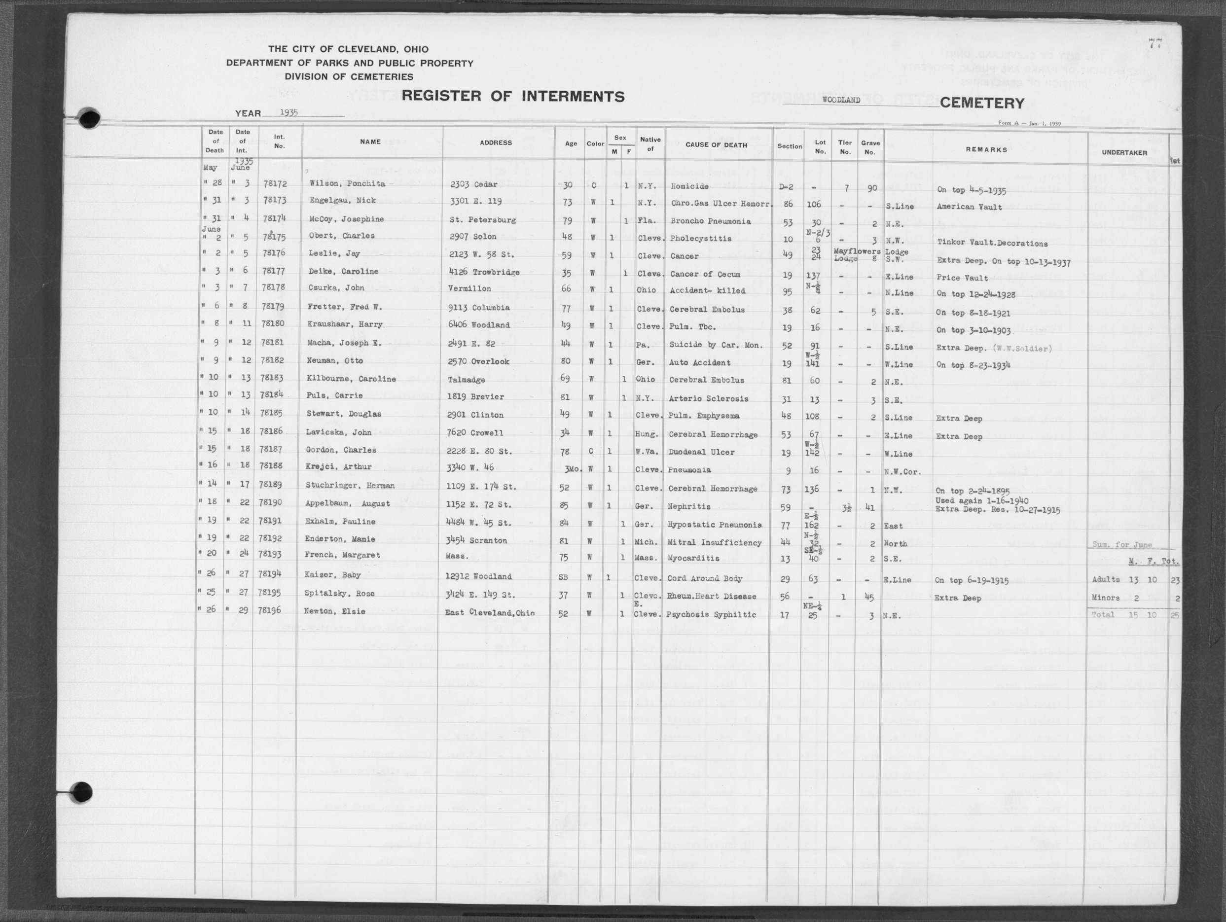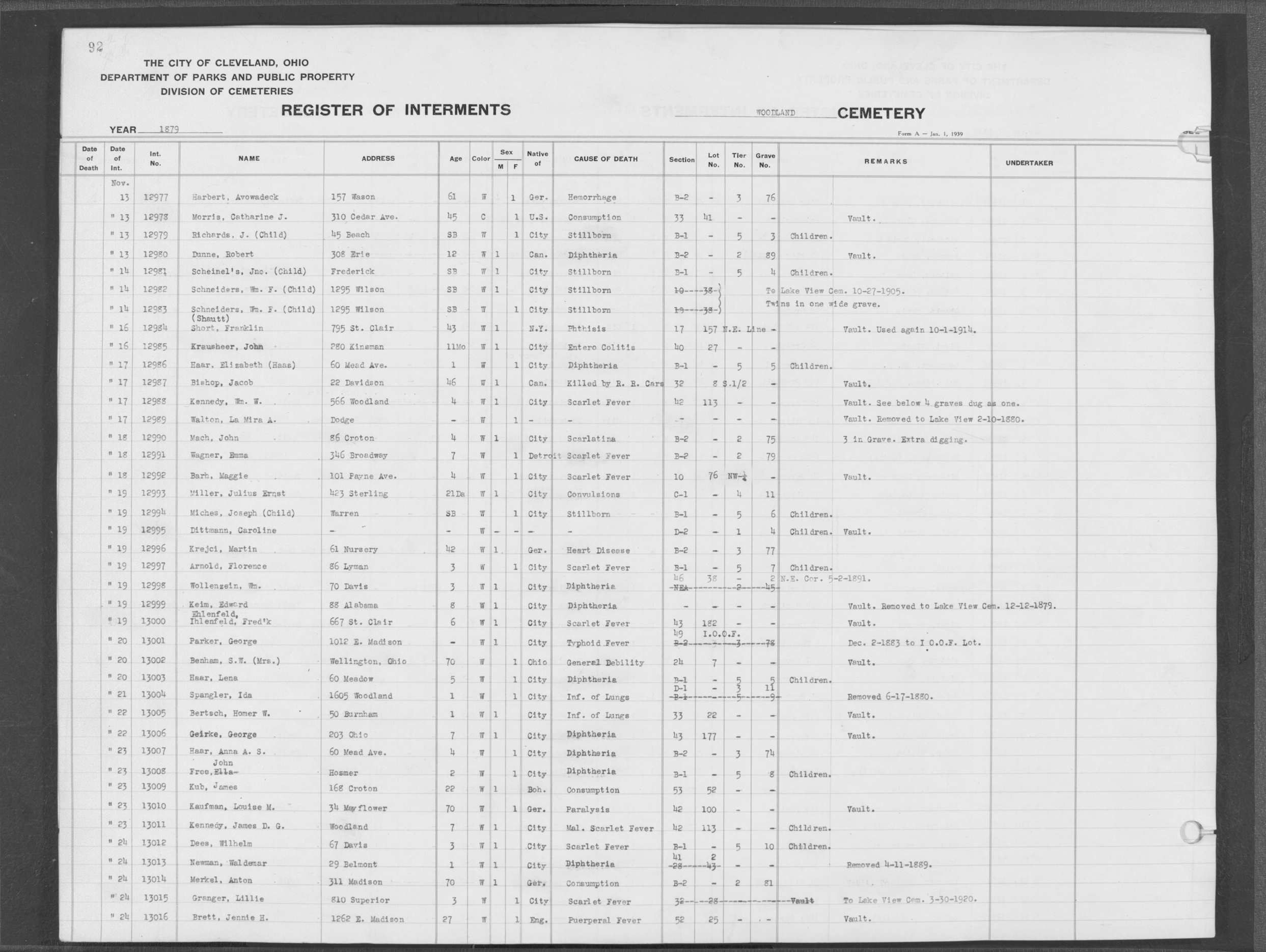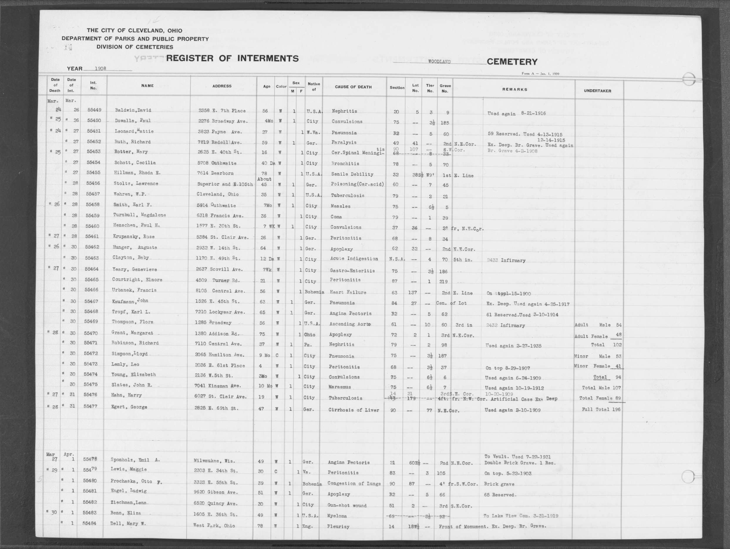 | West Park | 1 | 151 | Oct | 9 | 1917 | 4967 | Derrer, Minnie | 57y | W | F | ||||