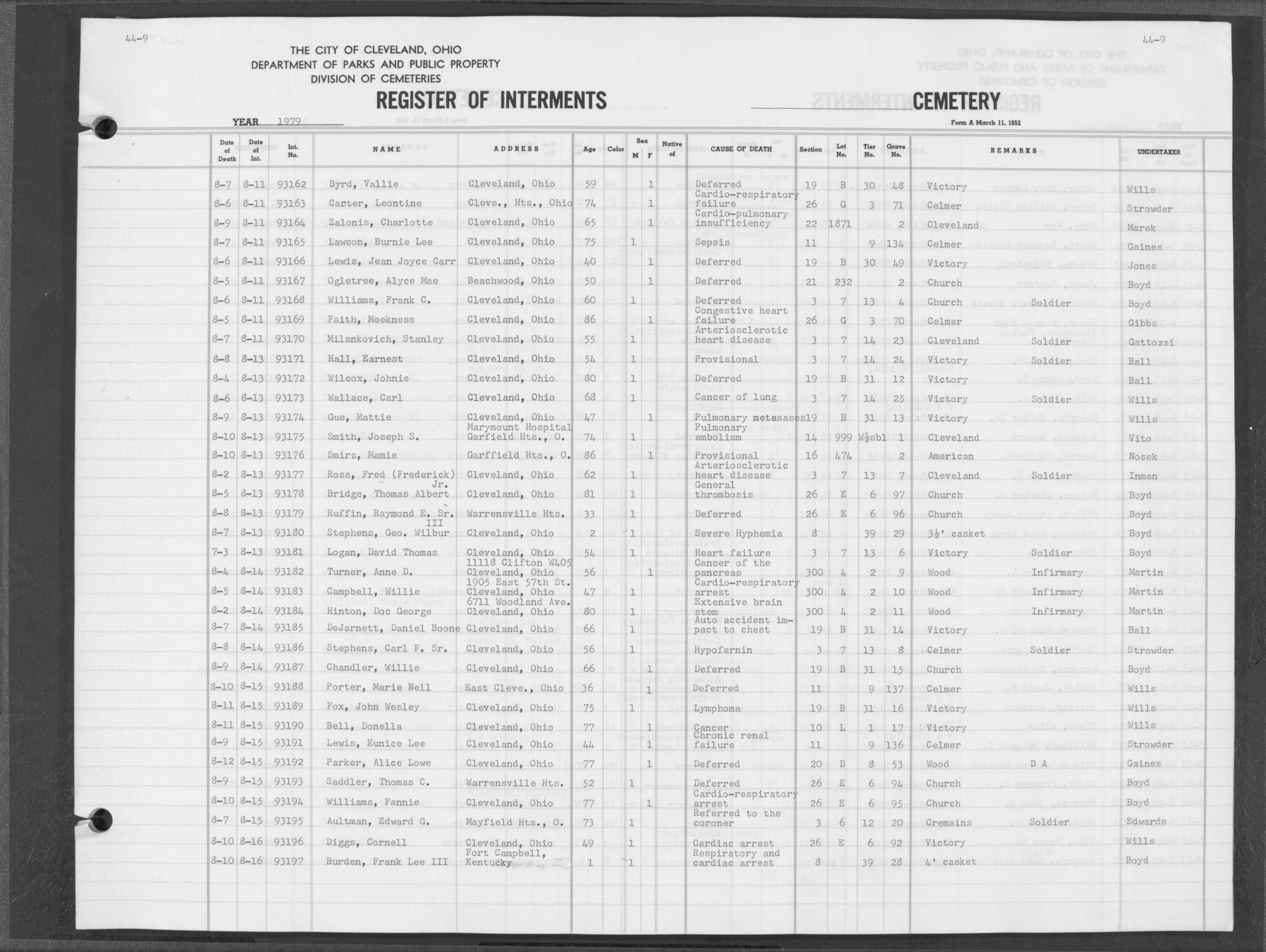 | Highland Park | 9 | 2 | Jan | 5 | 1979 | Jan | 8 | 1979 | 91759 | Deadwiley, Stanley Robert | 30d | M | ||