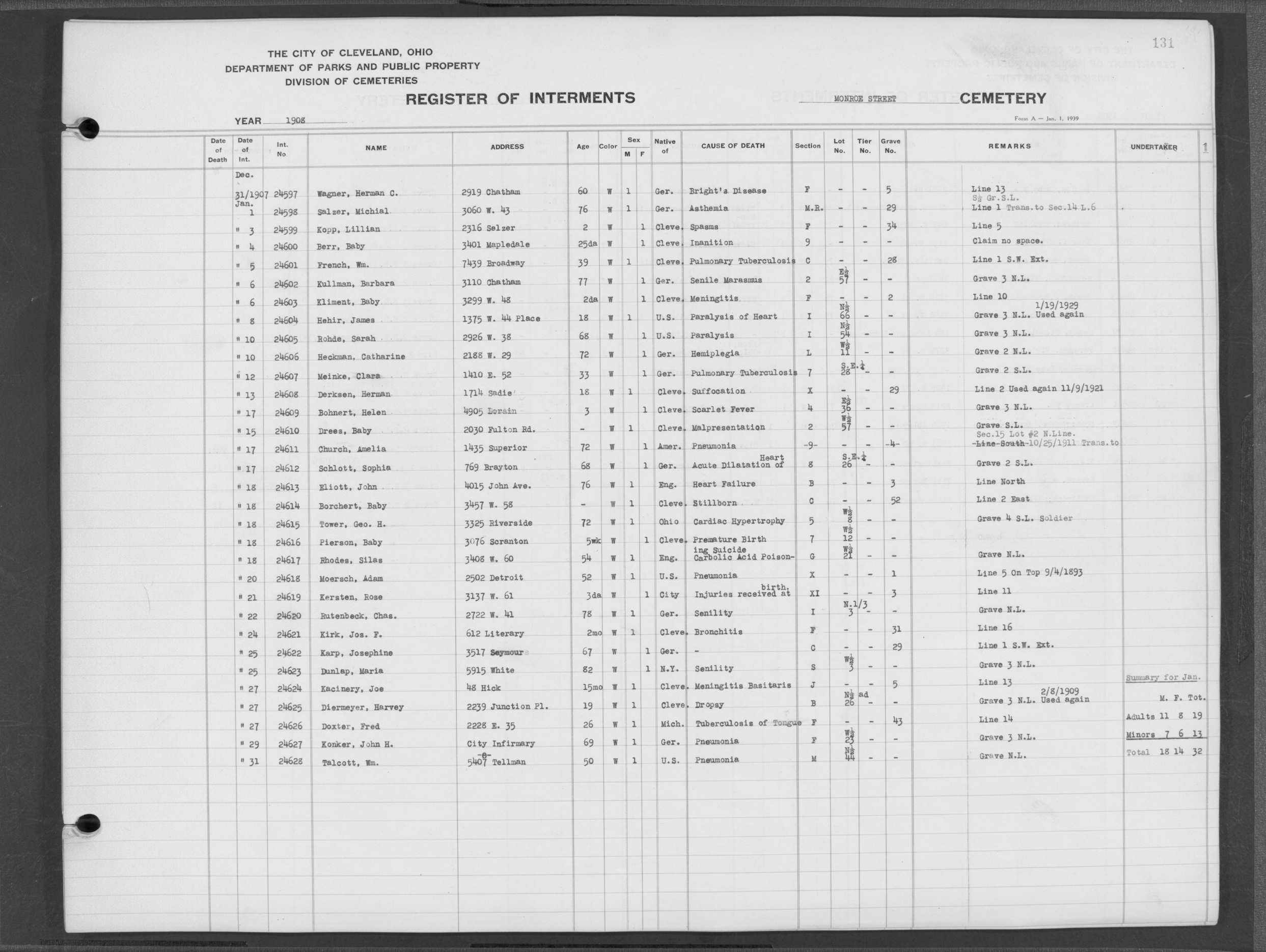 | Monroe Street | 3 | 130 | Dec | 10 | 1907 | 24581 | DeRussy, Sarah | 81y | W | F | ||||