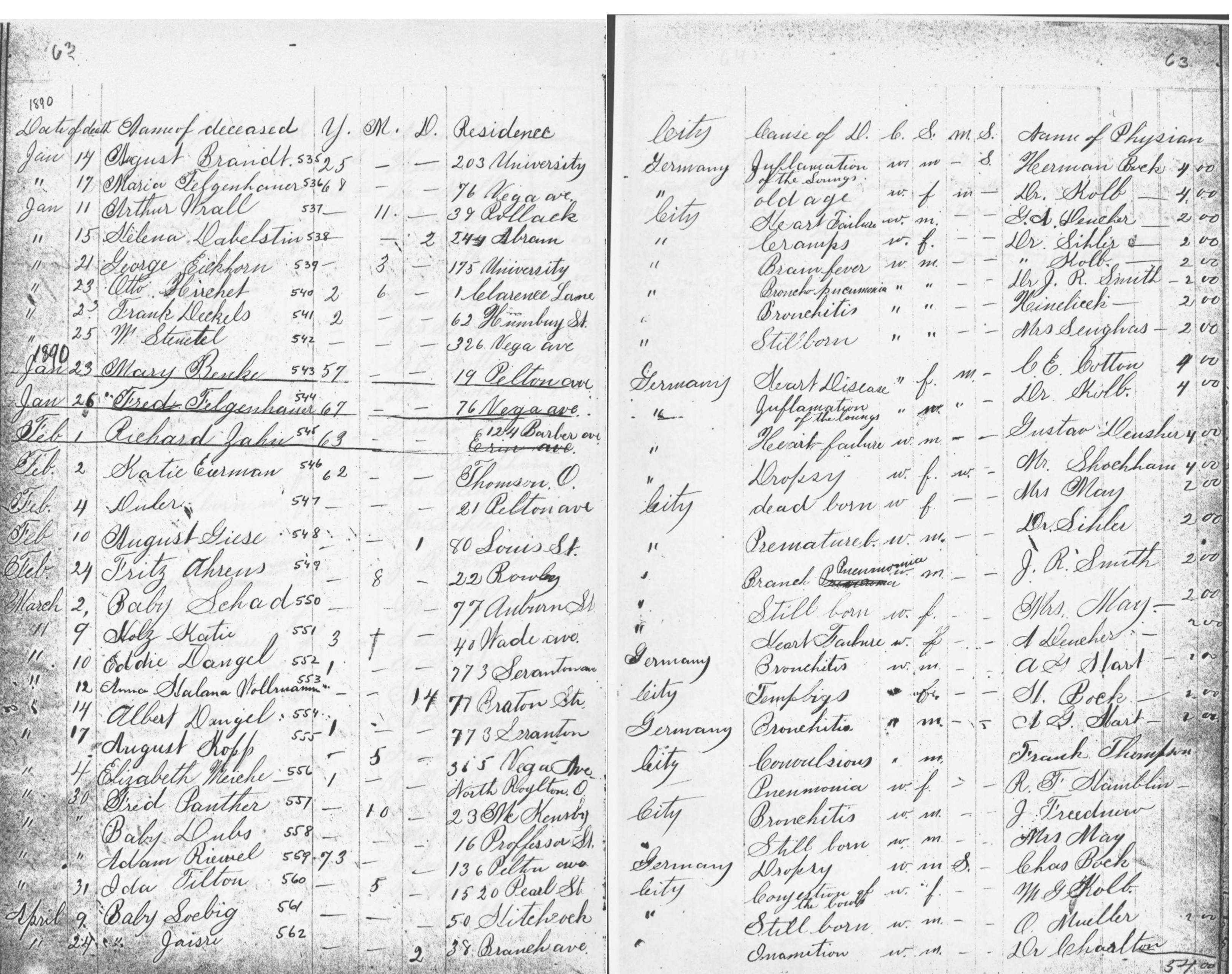 | Monroe Street | 2 | 101 | Jan | 18 | 1889 | 14870 | Derrer, Jacob | 76y | W | M | ||||