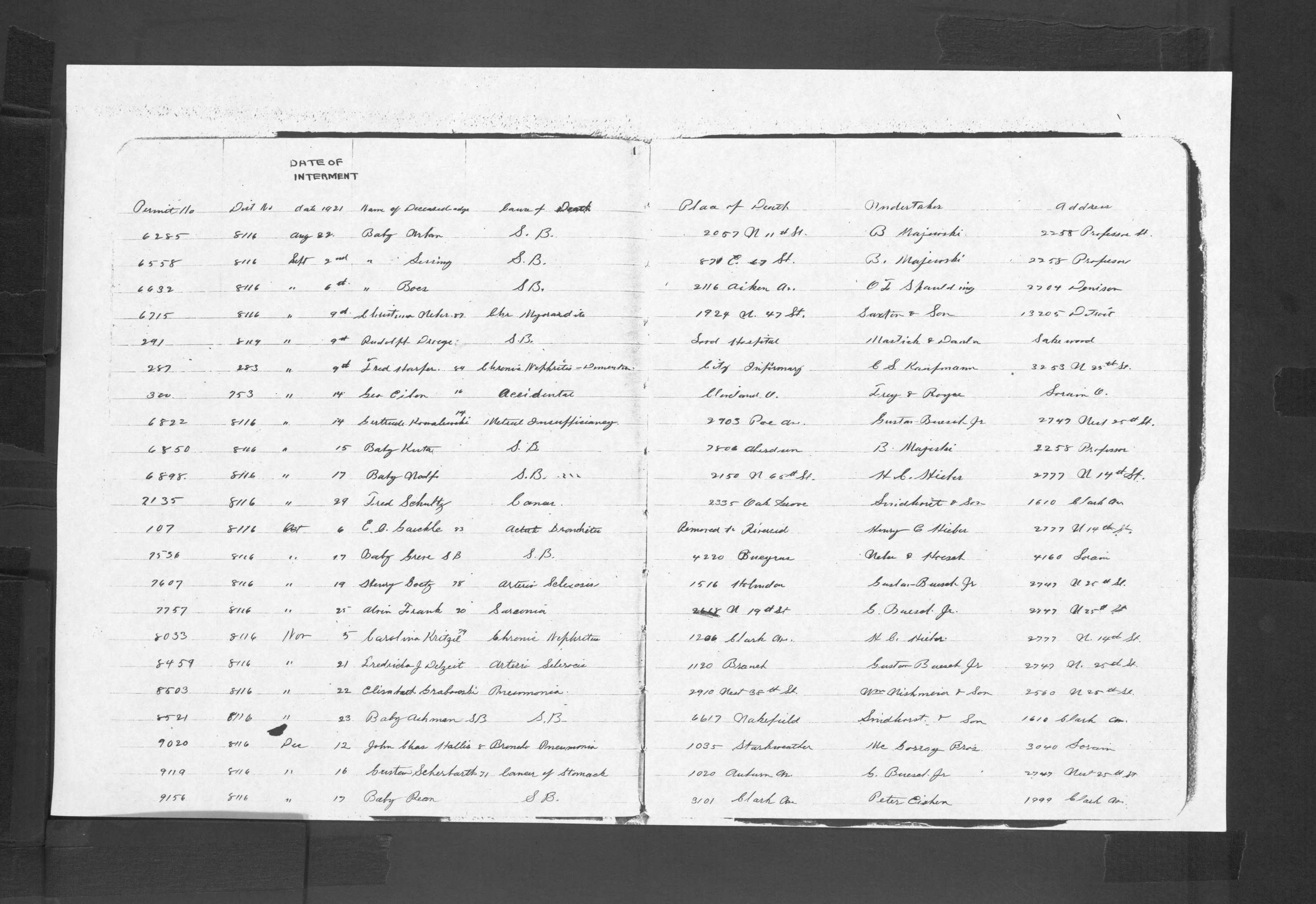 | West Park | 1 | 208 | Nov | 9 | 1920 | 6933 | Derrico, Michael | 9d | W | M | ||||