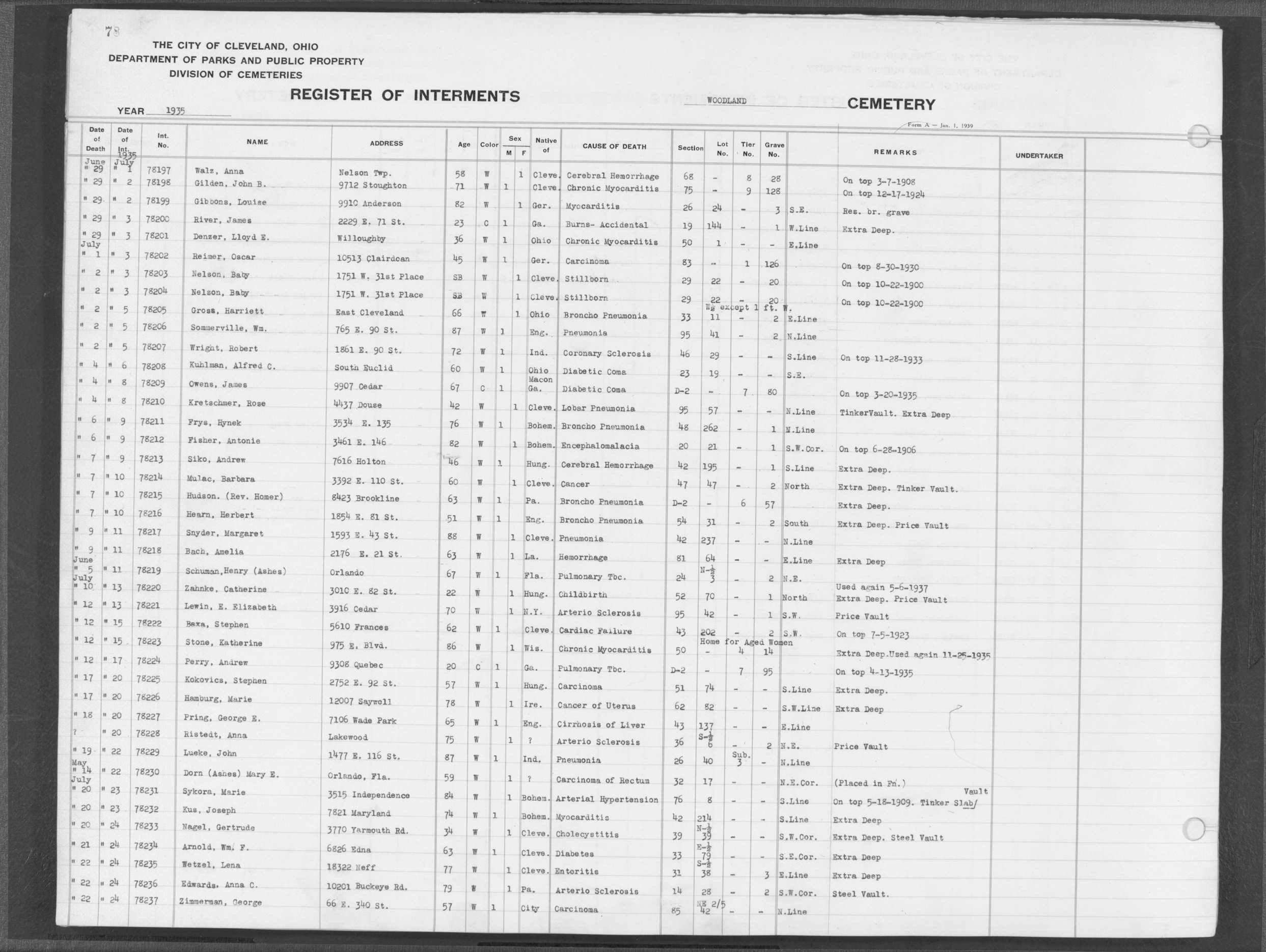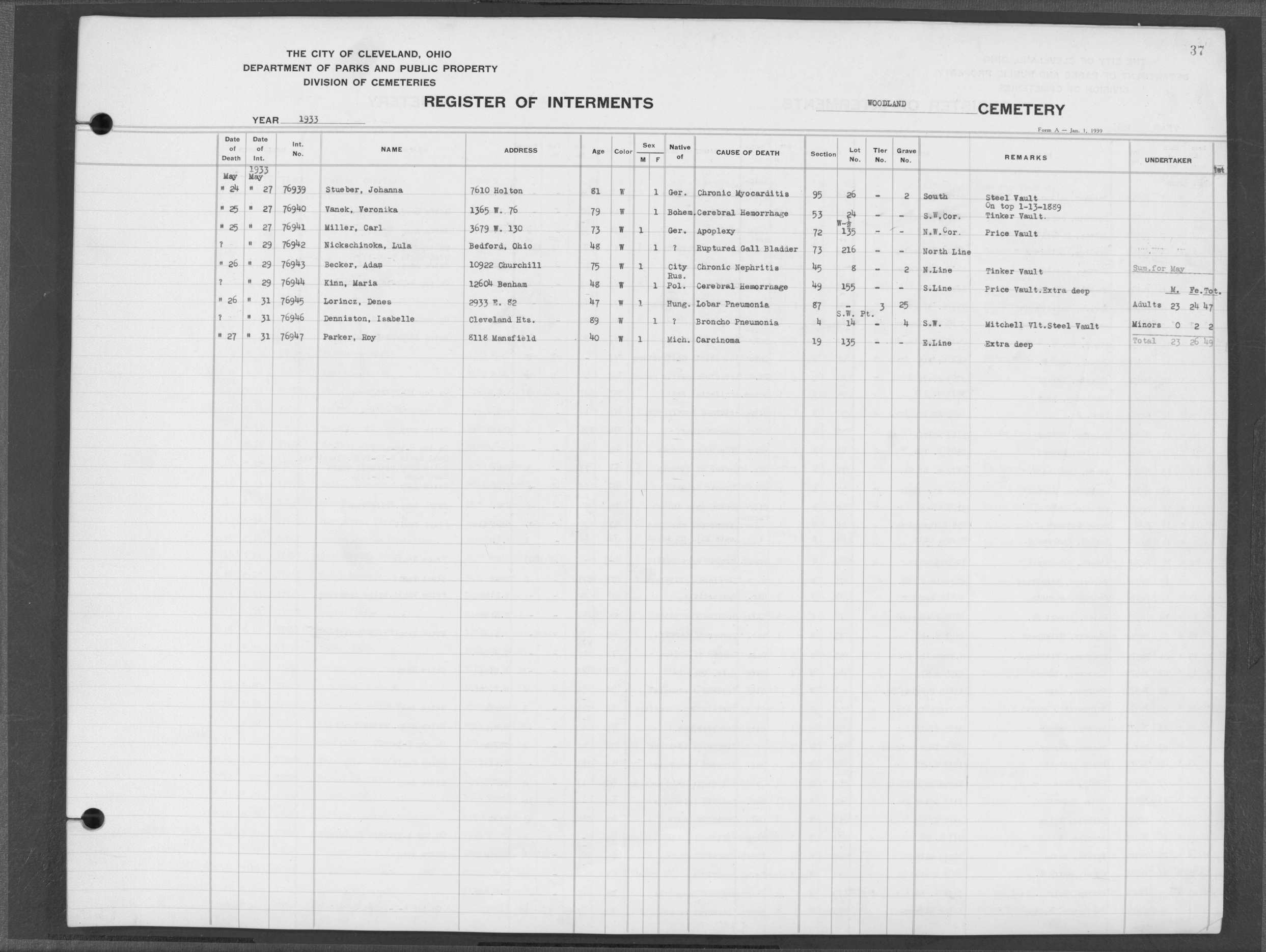 | Harvard Grove | 4 | 37 | Jul | 10 | 1937 | Jul | 13 | 1937 | 23130 | Dean, Alfred | 53y | W | M | |