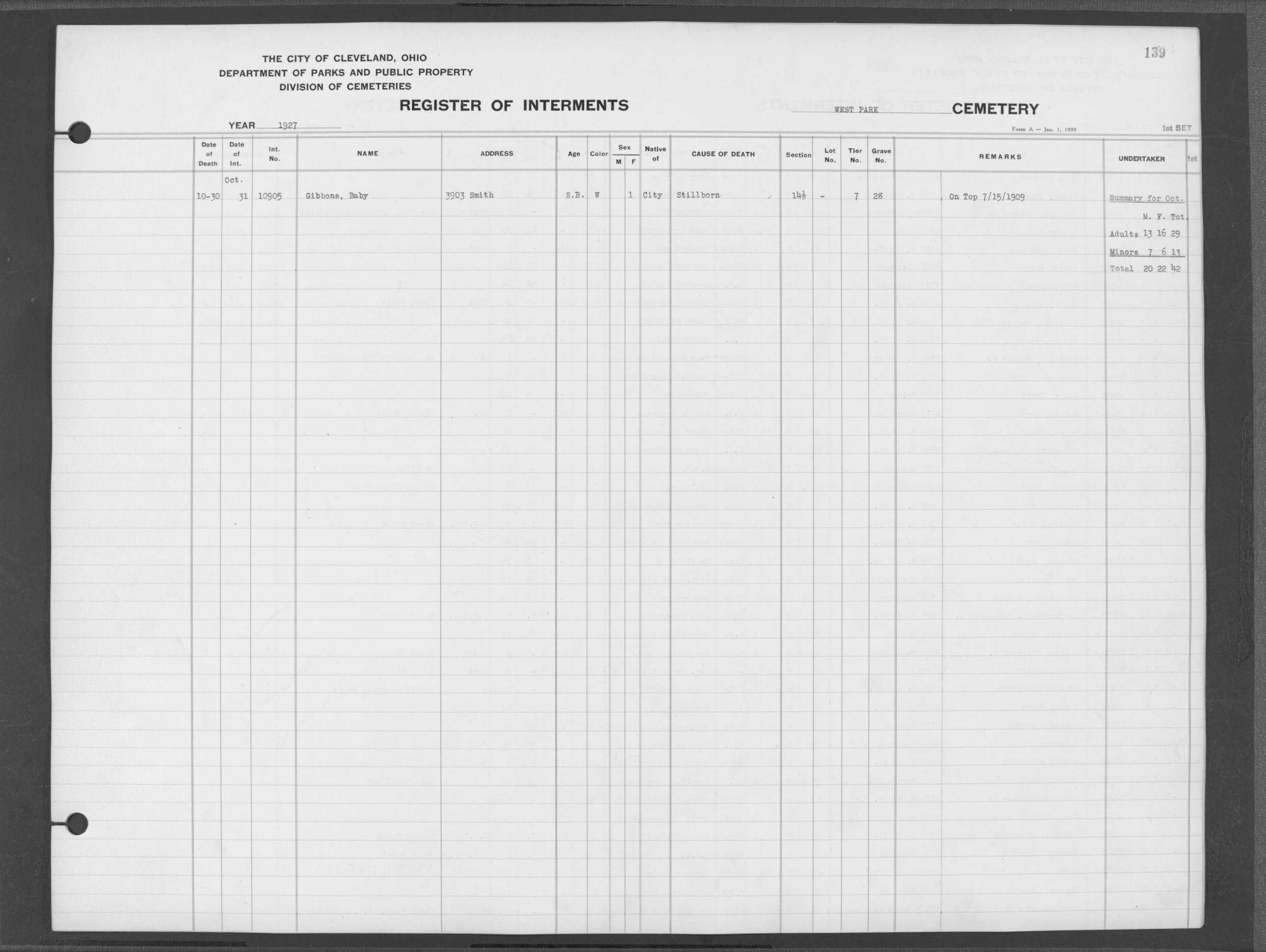 | West Park | 2 | 114 | Sep | 8 | 1926 | Sep | 10 | 1926 | 10270 | Gerber, Michael | 60y | W | M | |