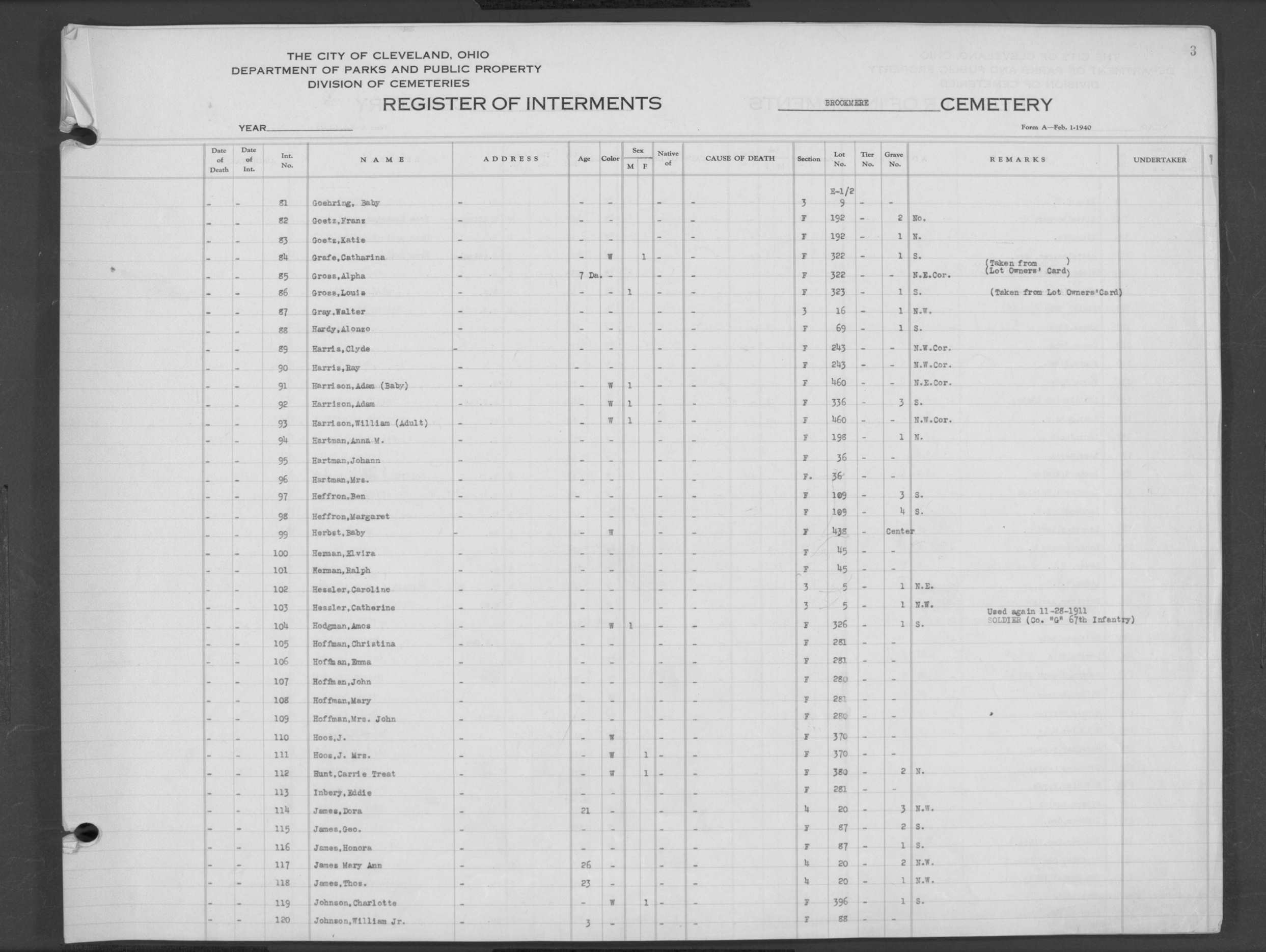 | Woodland | 9 | 108 | Apr | 8 | 1917 | Apr | 11 | 1917 | 66245 | Grbavcic, John | 60y | W | M | |