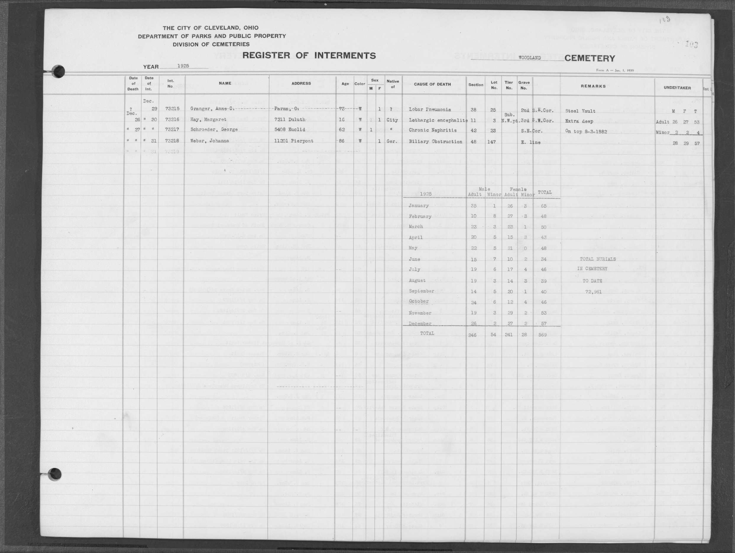 | Highland Park | 6 | 108 | Nov | 17 | 1960 | Nov | 21 | 1960 | 52285 | Graziano, Anna | 84y | F | ||