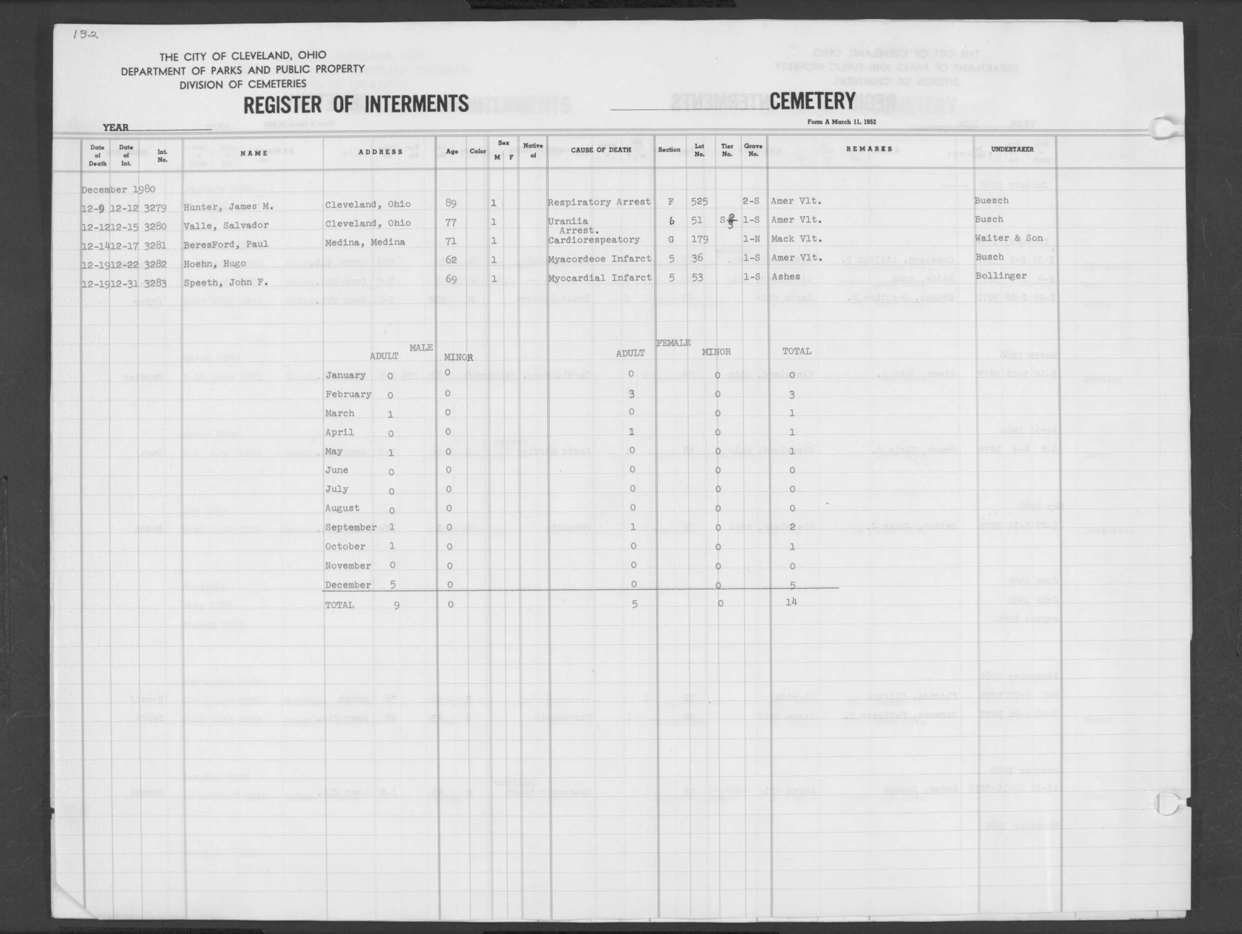 | Highland Park | 5 | 34 | Dec | 2 | 1947 | Dec | 22 | 1947 | 34259 | Hochlander, Francis | 51y | W | M | |