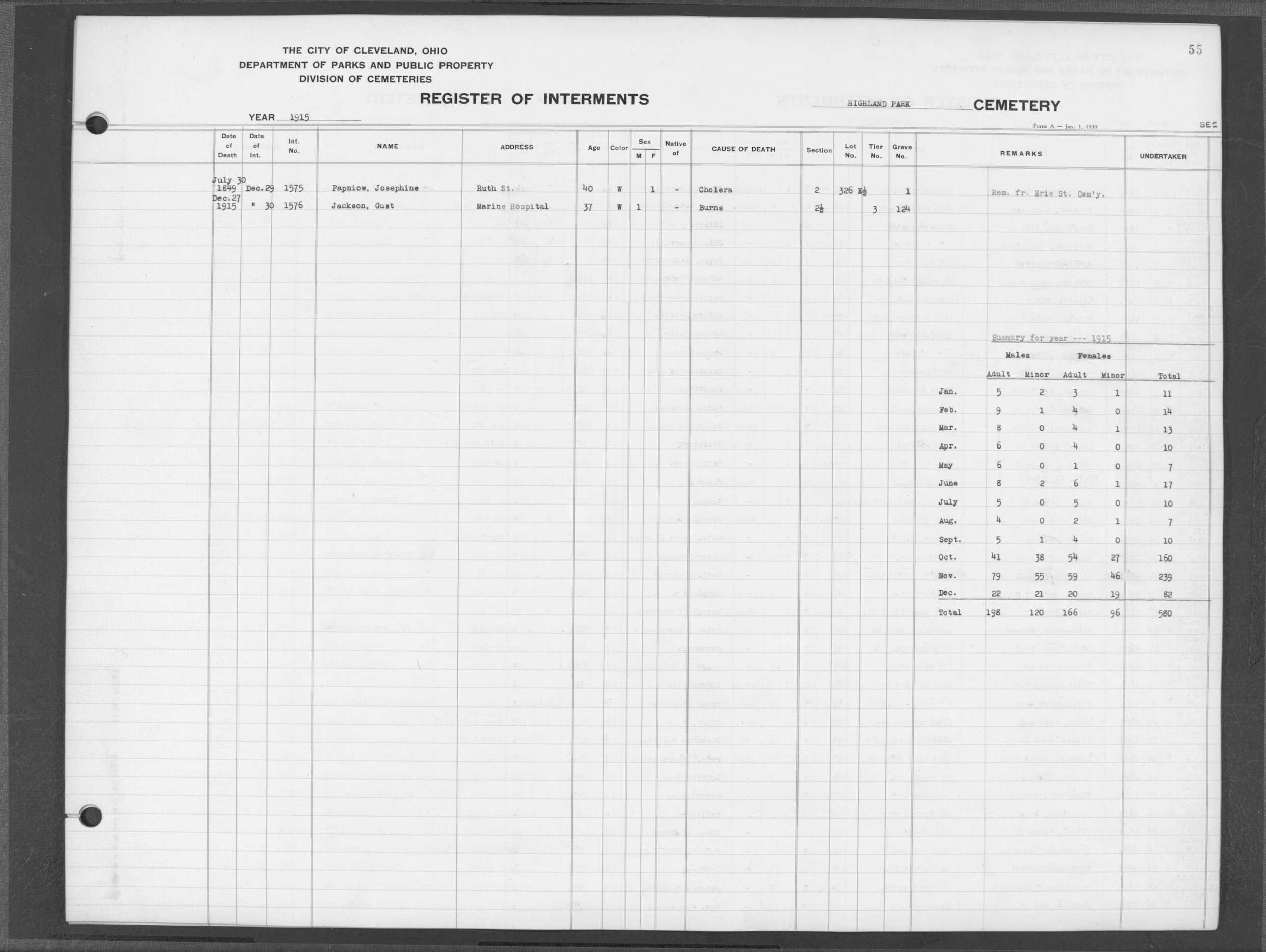 | Highland Park | 4 | 55 | 1939 | Mar | 3 | 1939 | 25126 | Jacoby, Walter H | 47y | W | M | |||