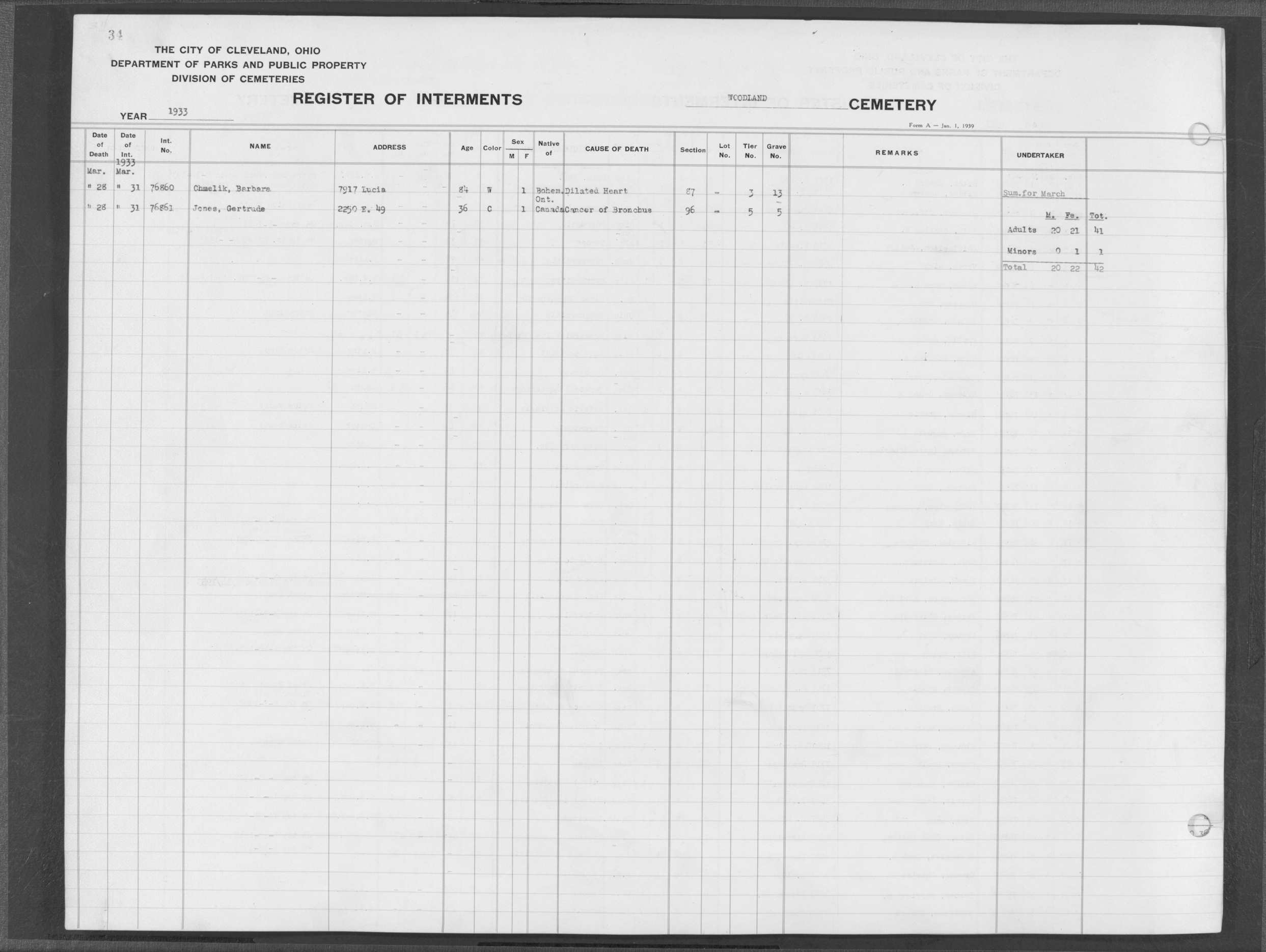 | Highland Park | 3 | 101 | May | 1 | 1933 | May | 13 | 1933 | 18794 | Jones, Lula | 58y | B | M | |