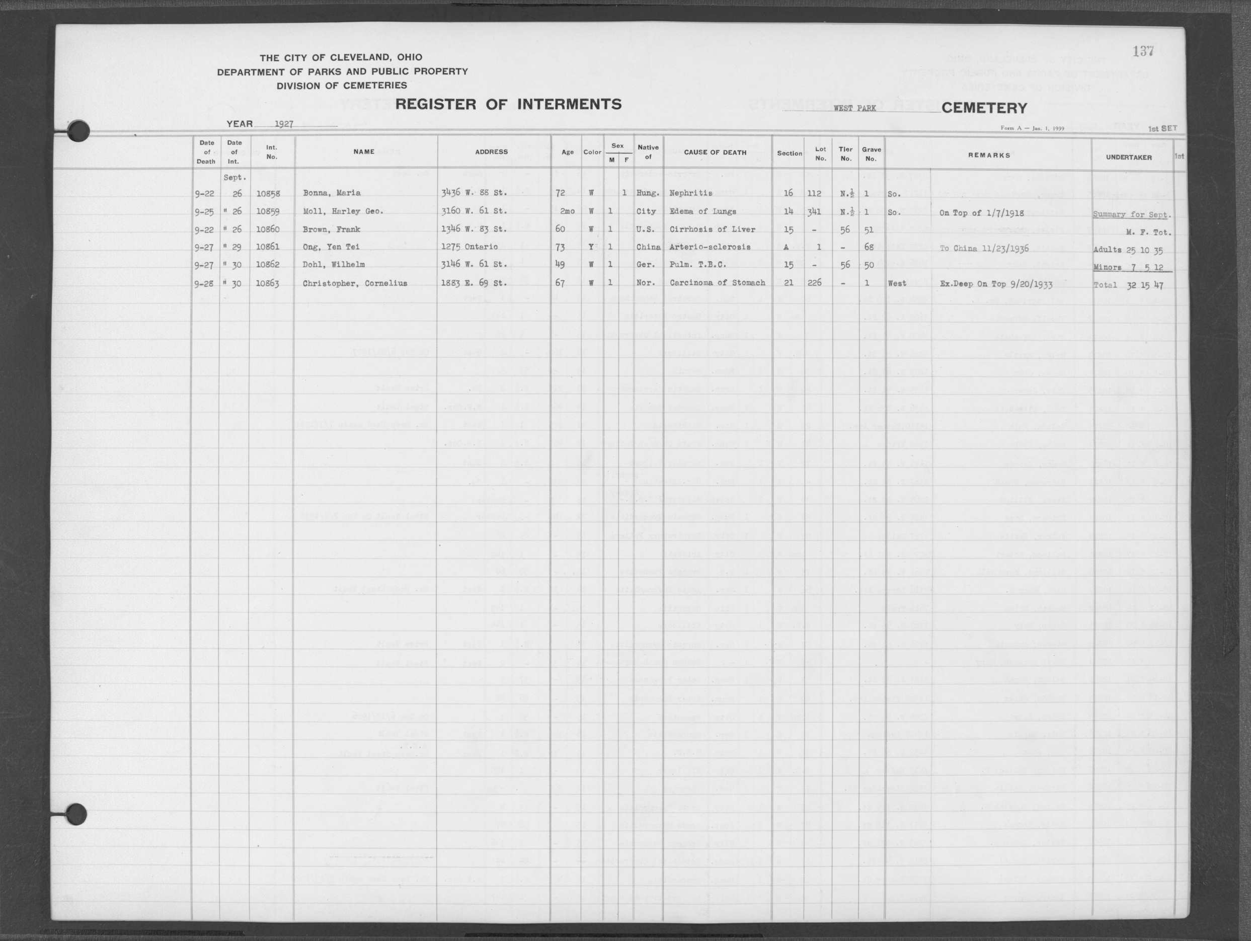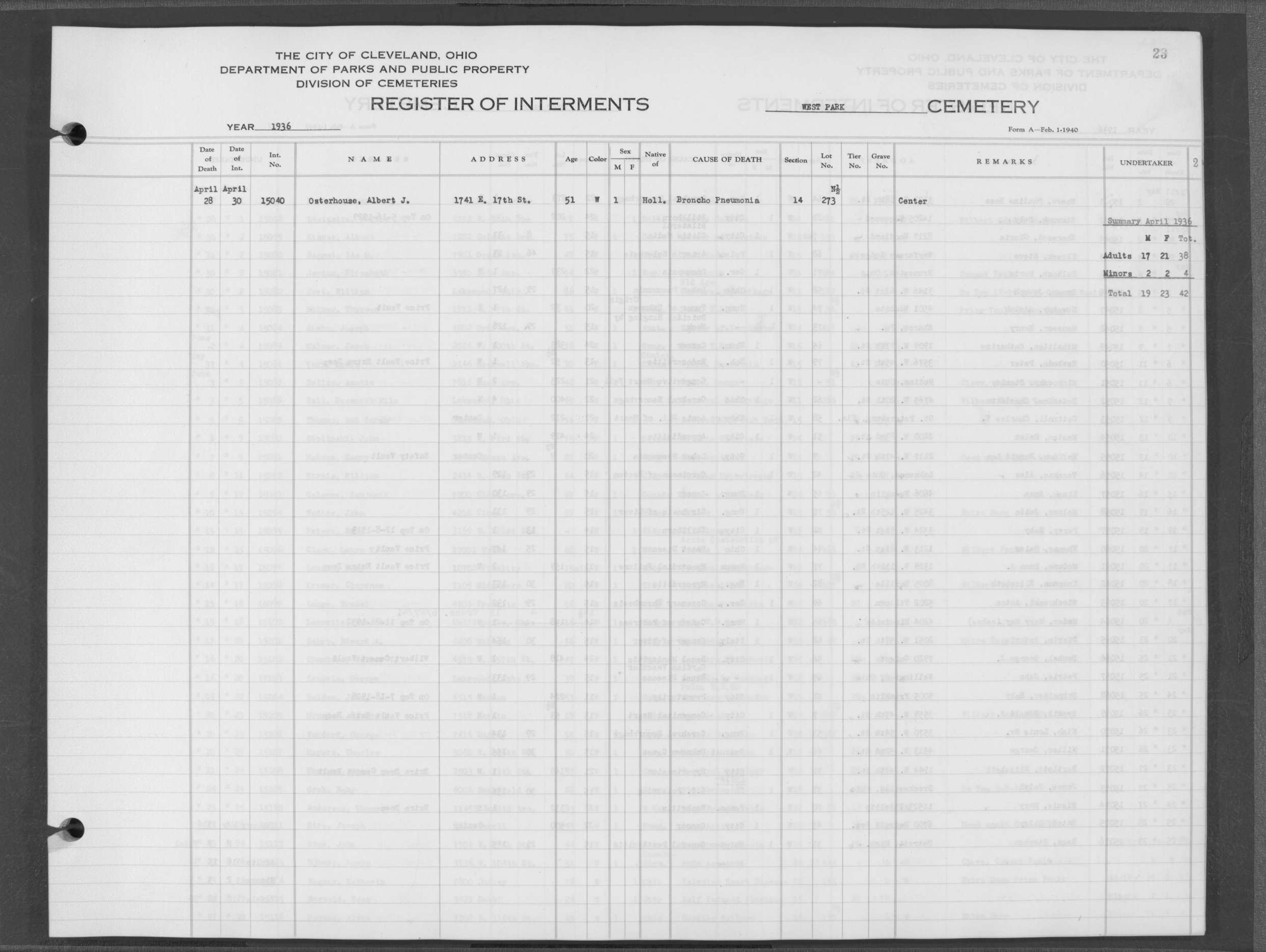 | West Park | 1 | 175 | Jan | 11 | 1919 | 5829 | Ozvar, Mathias | 35y | W | M | ||||