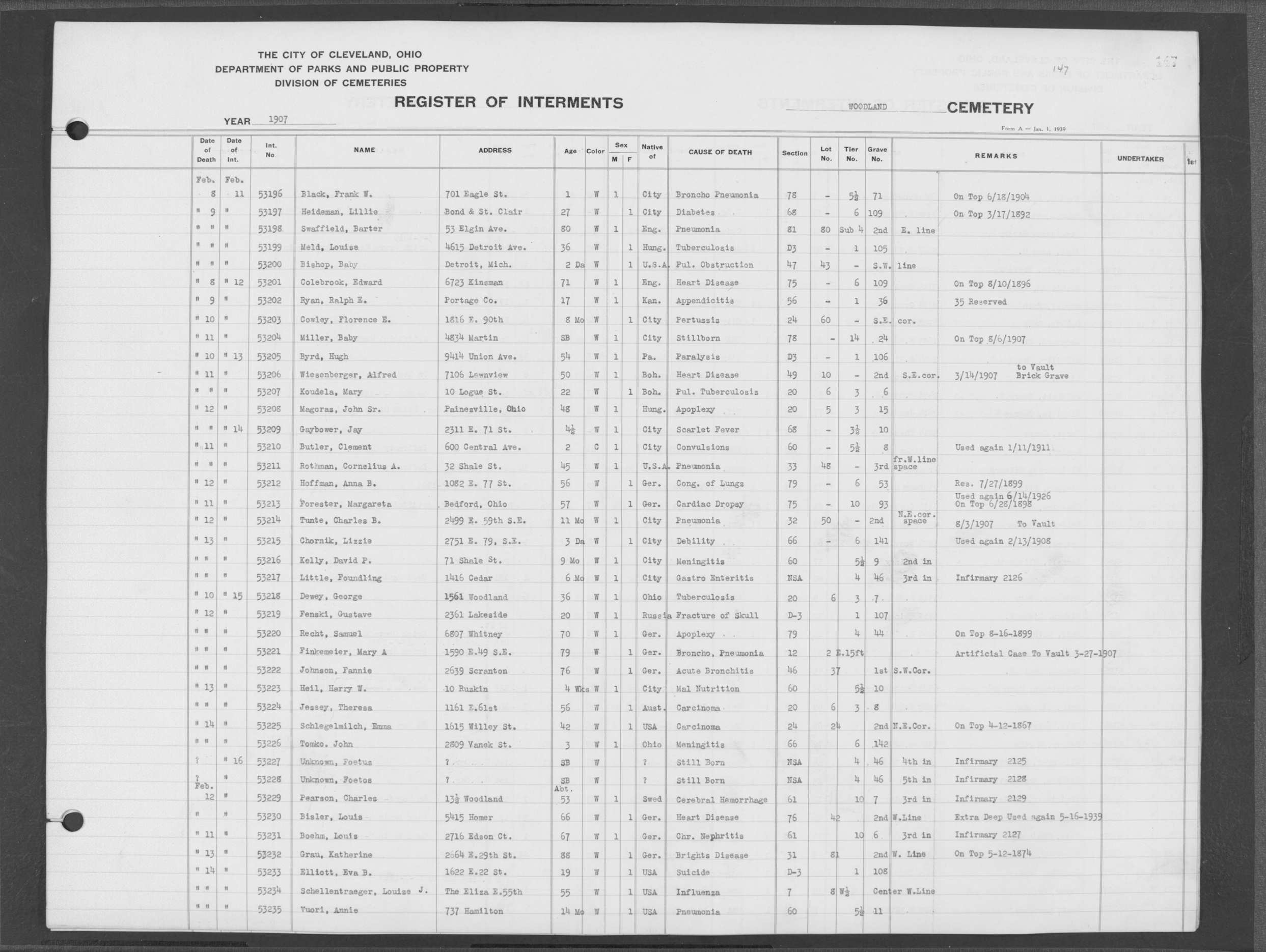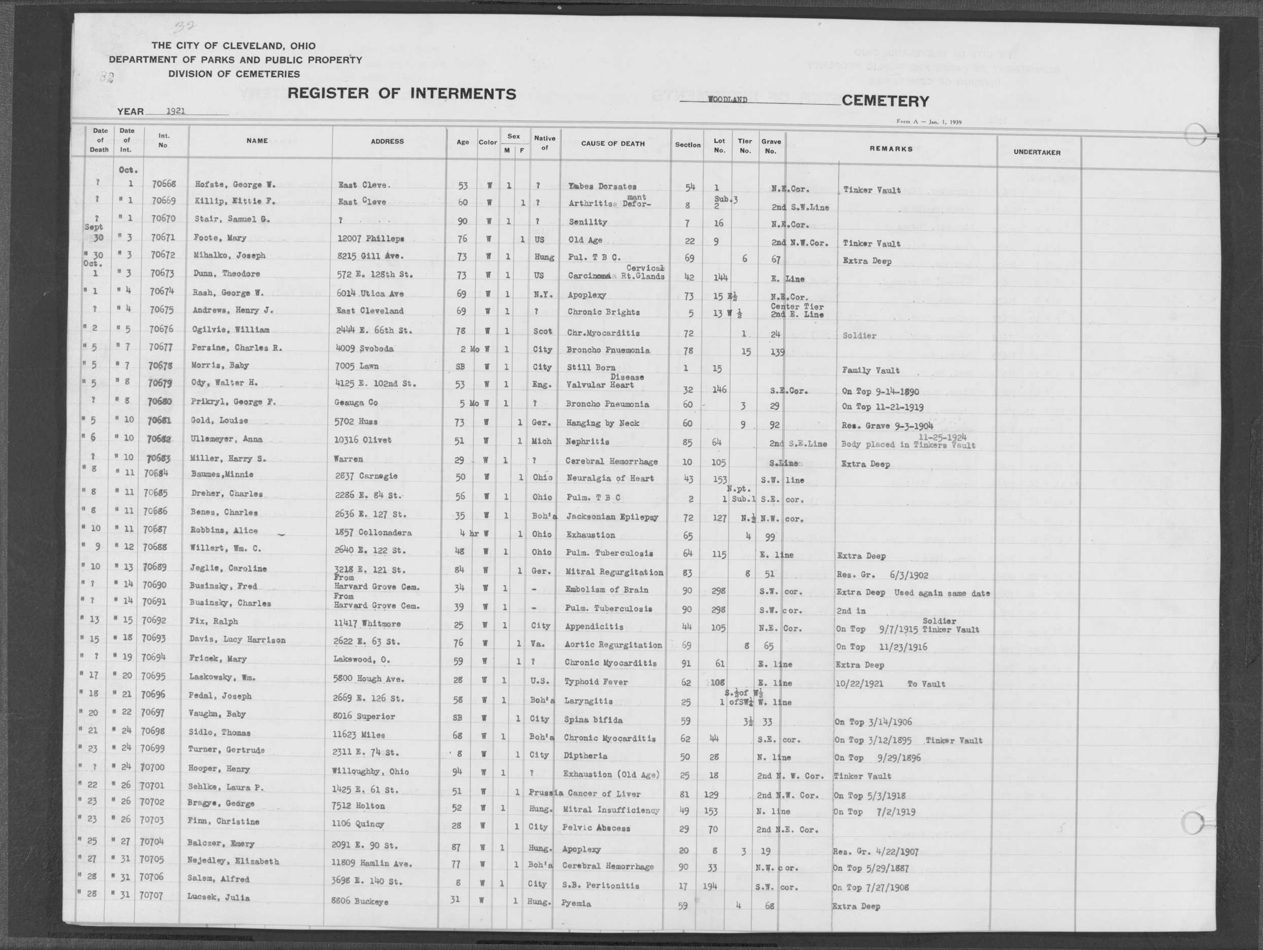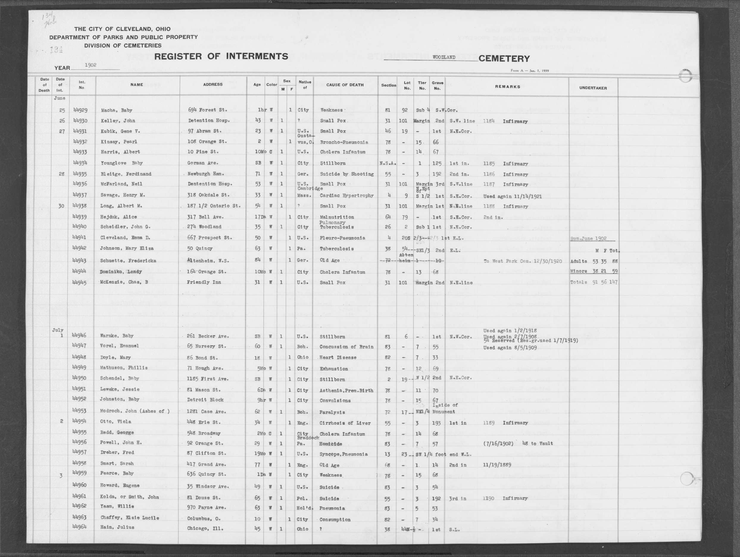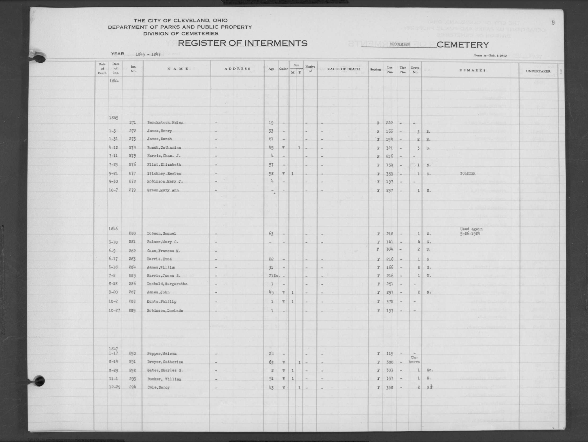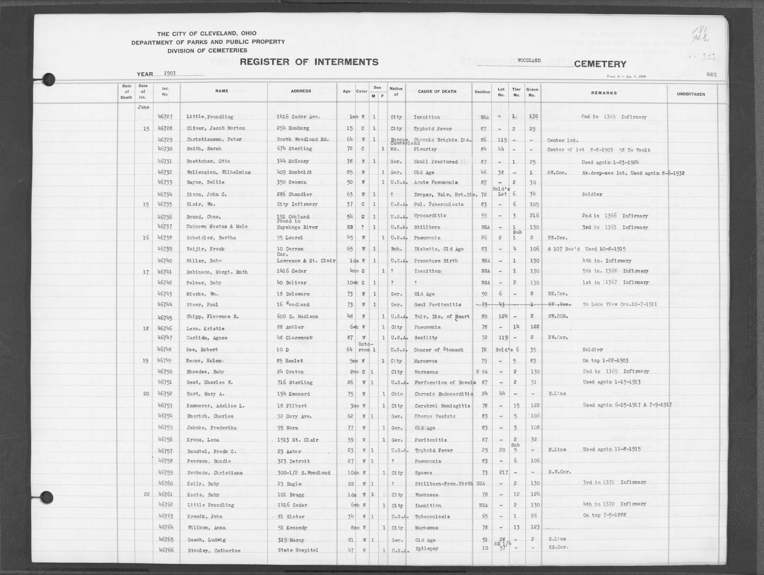 | West Park | 1 | 39 | Apr | 26 | 1909 | 1243 | Perkins, Mary A | 2d | W | F | ||||