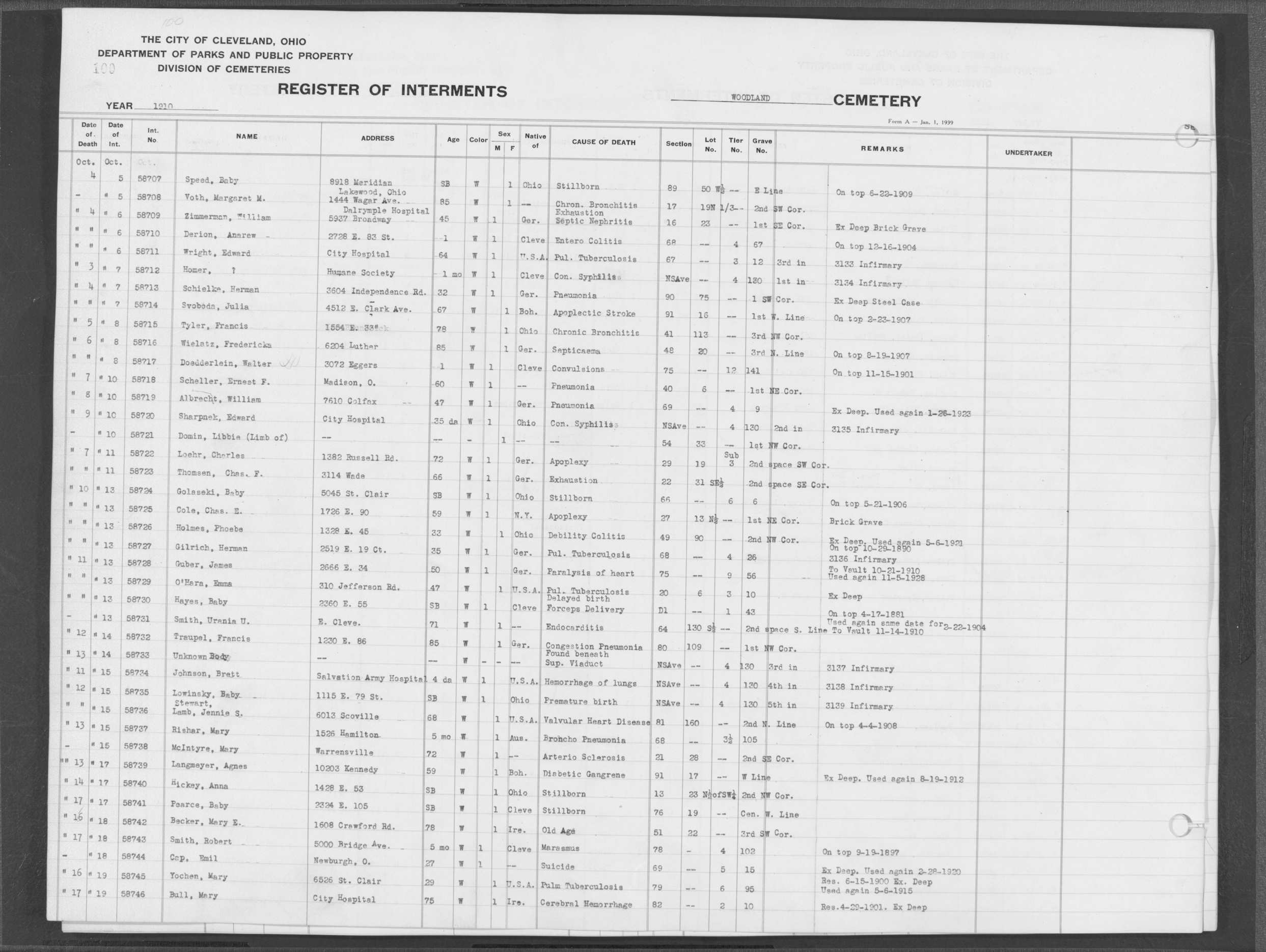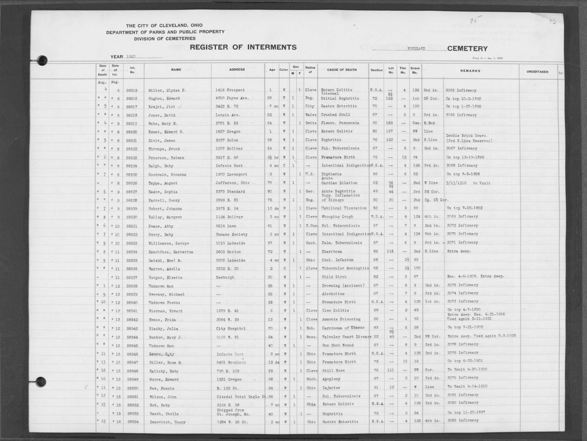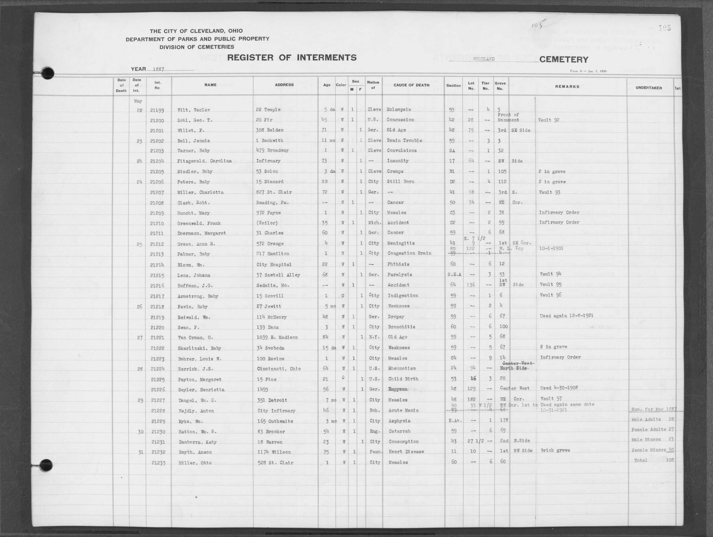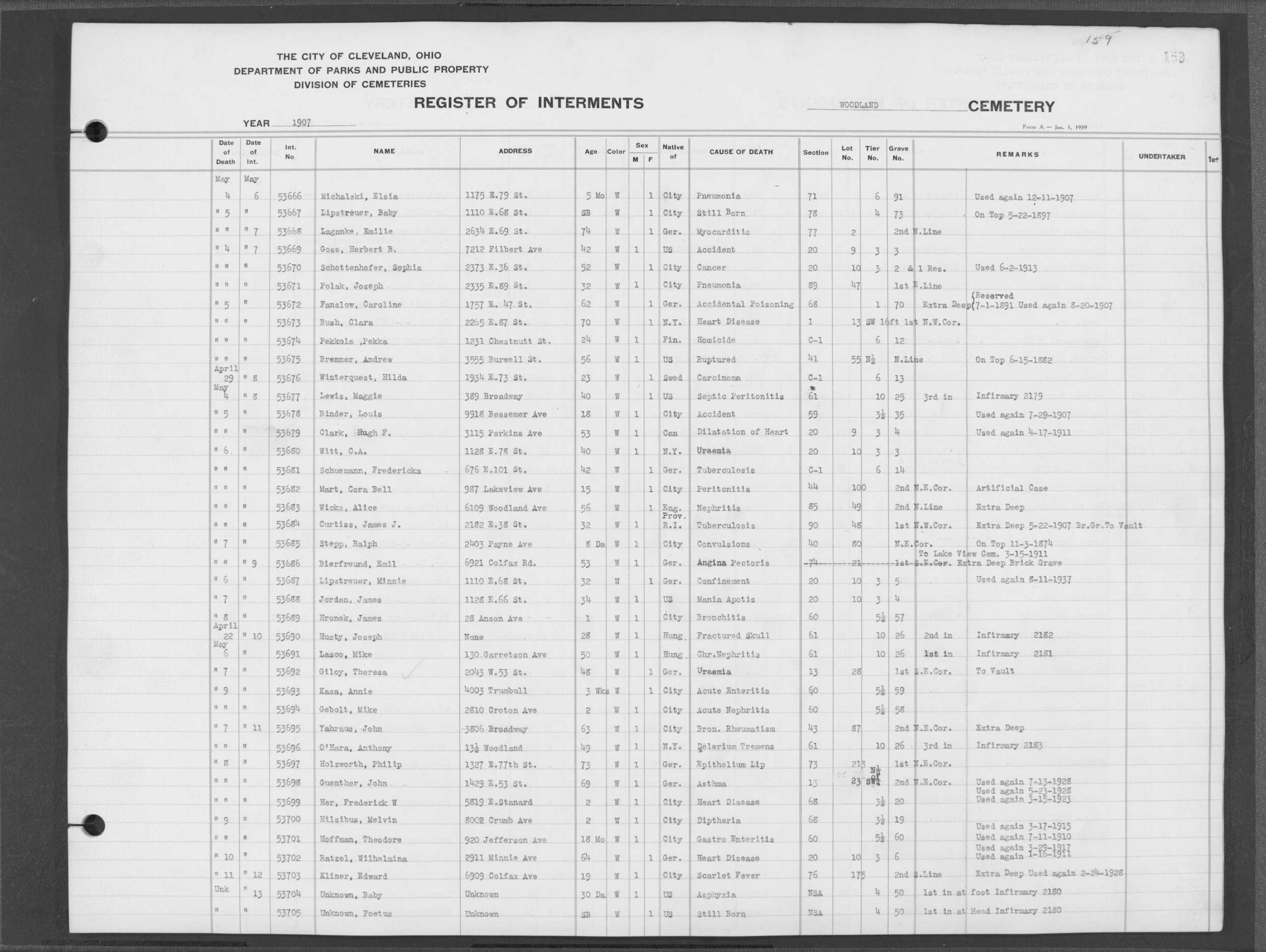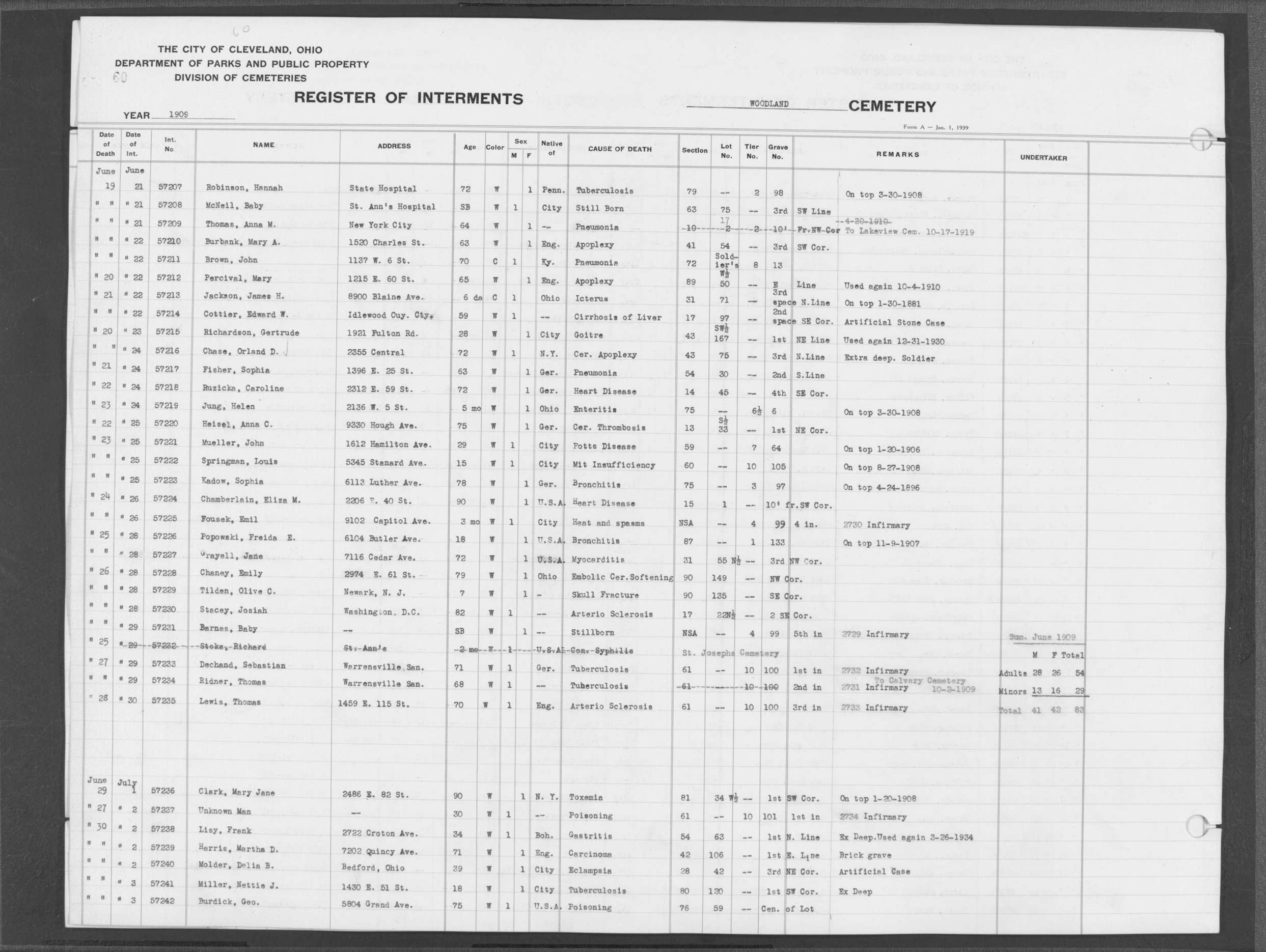 | West Park | 1 | 39 | Apr | 26 | 1909 | 1243 | Perkins, Mary A | 2d | W | F | ||||