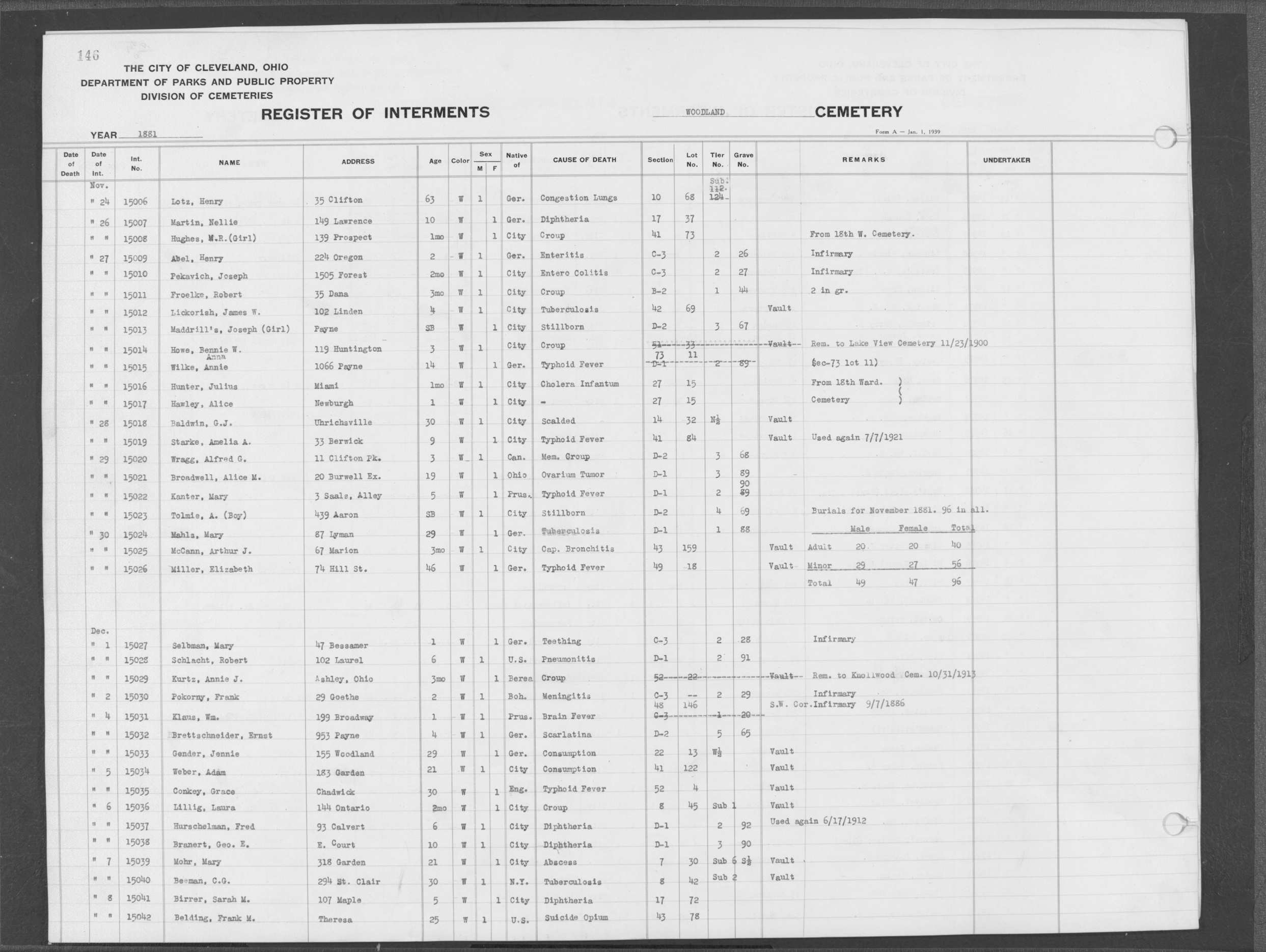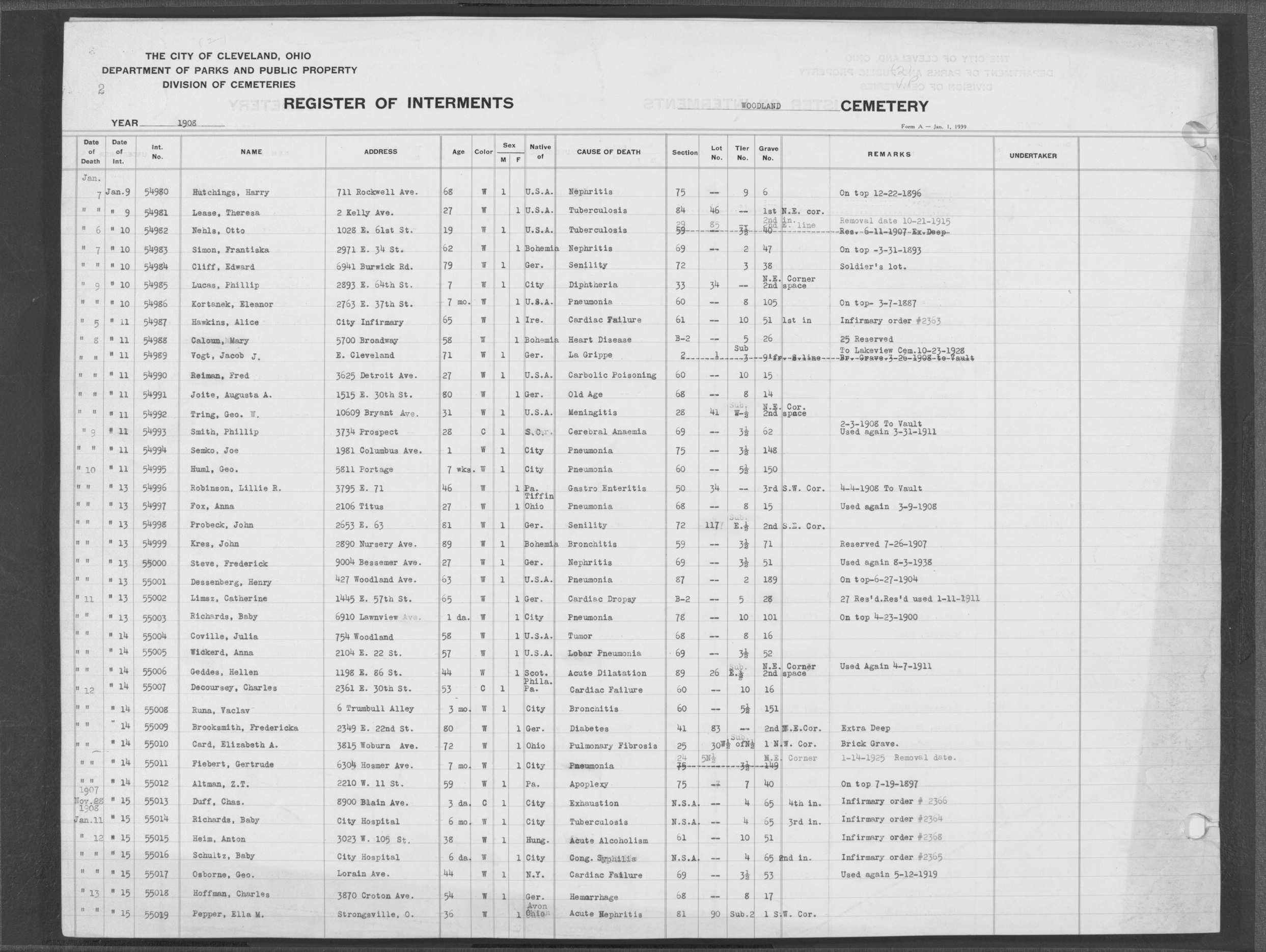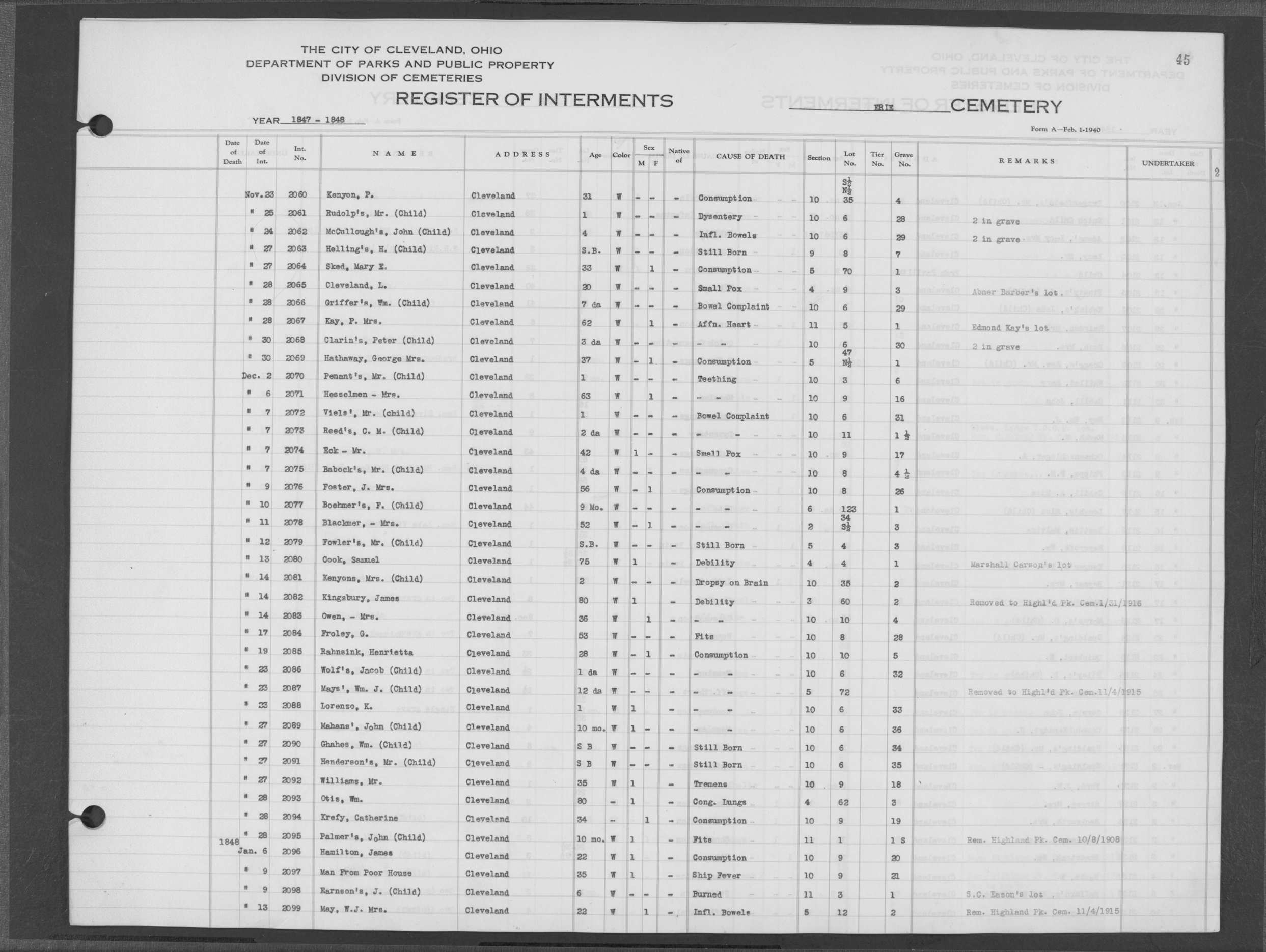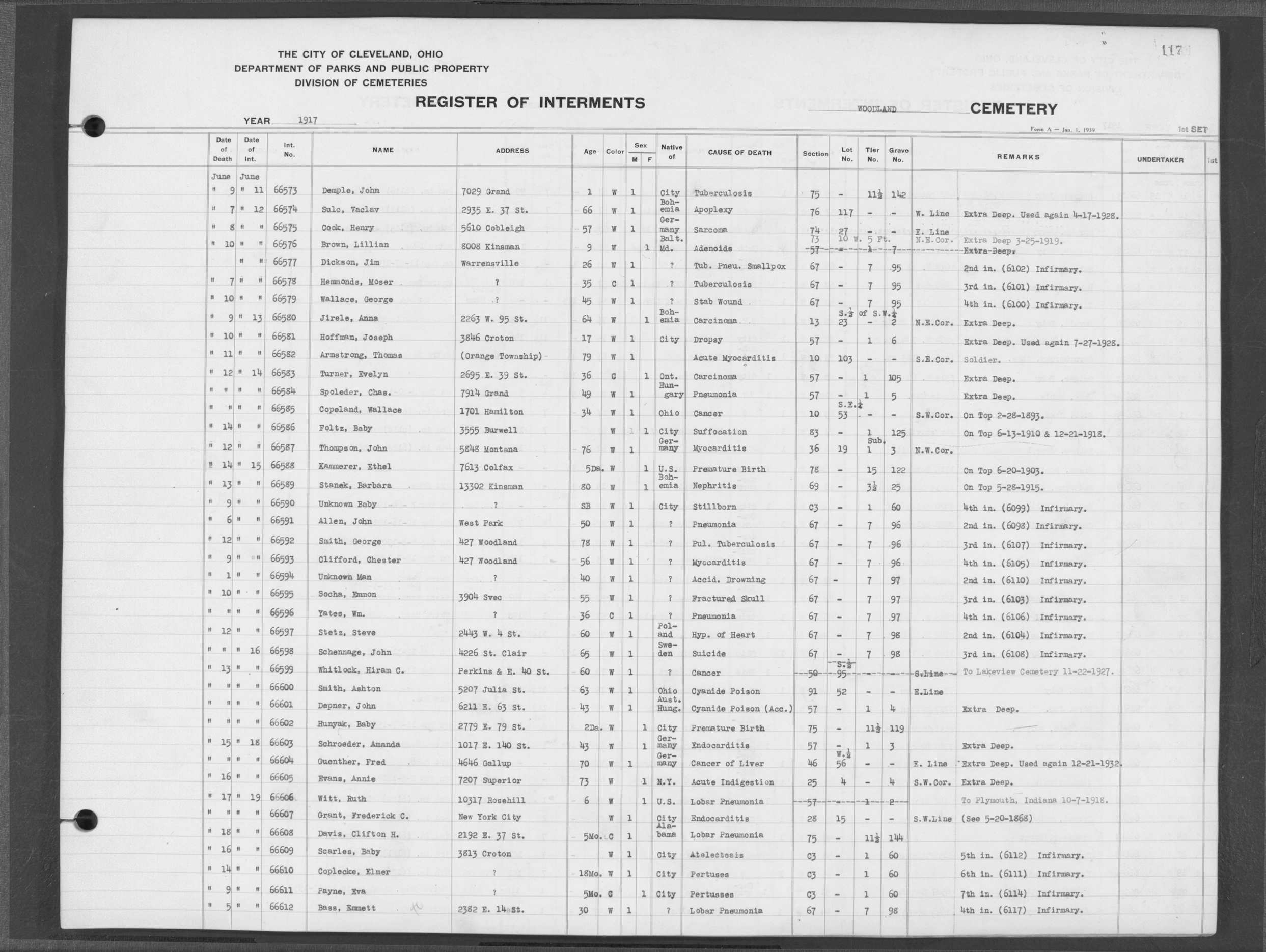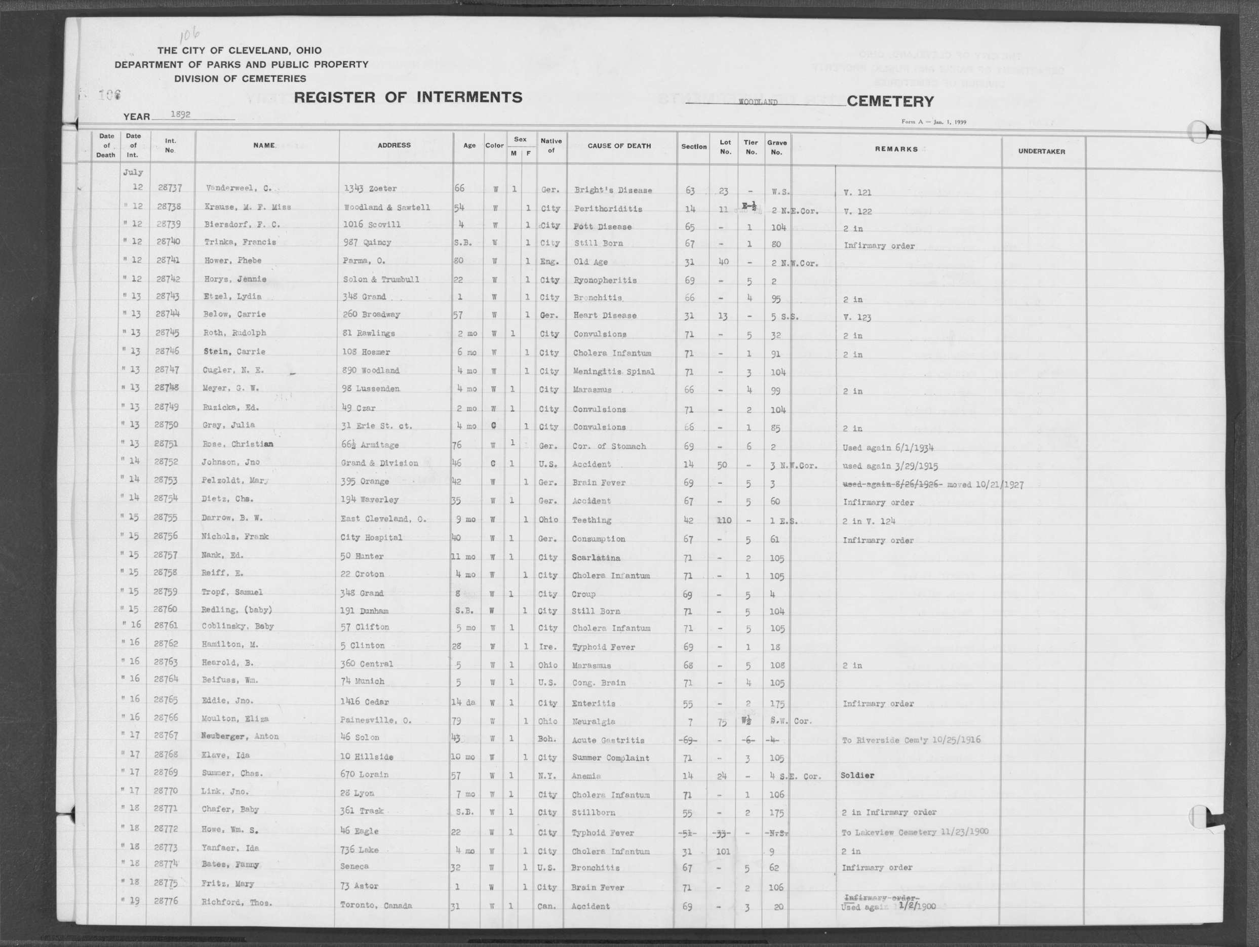 | West Park | 1 | 39 | Apr | 26 | 1909 | 1243 | Perkins, Mary A | 2d | W | F | ||||
