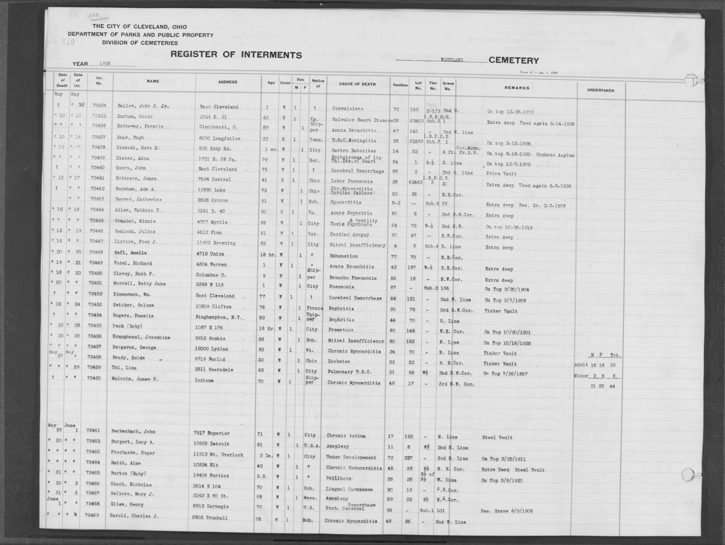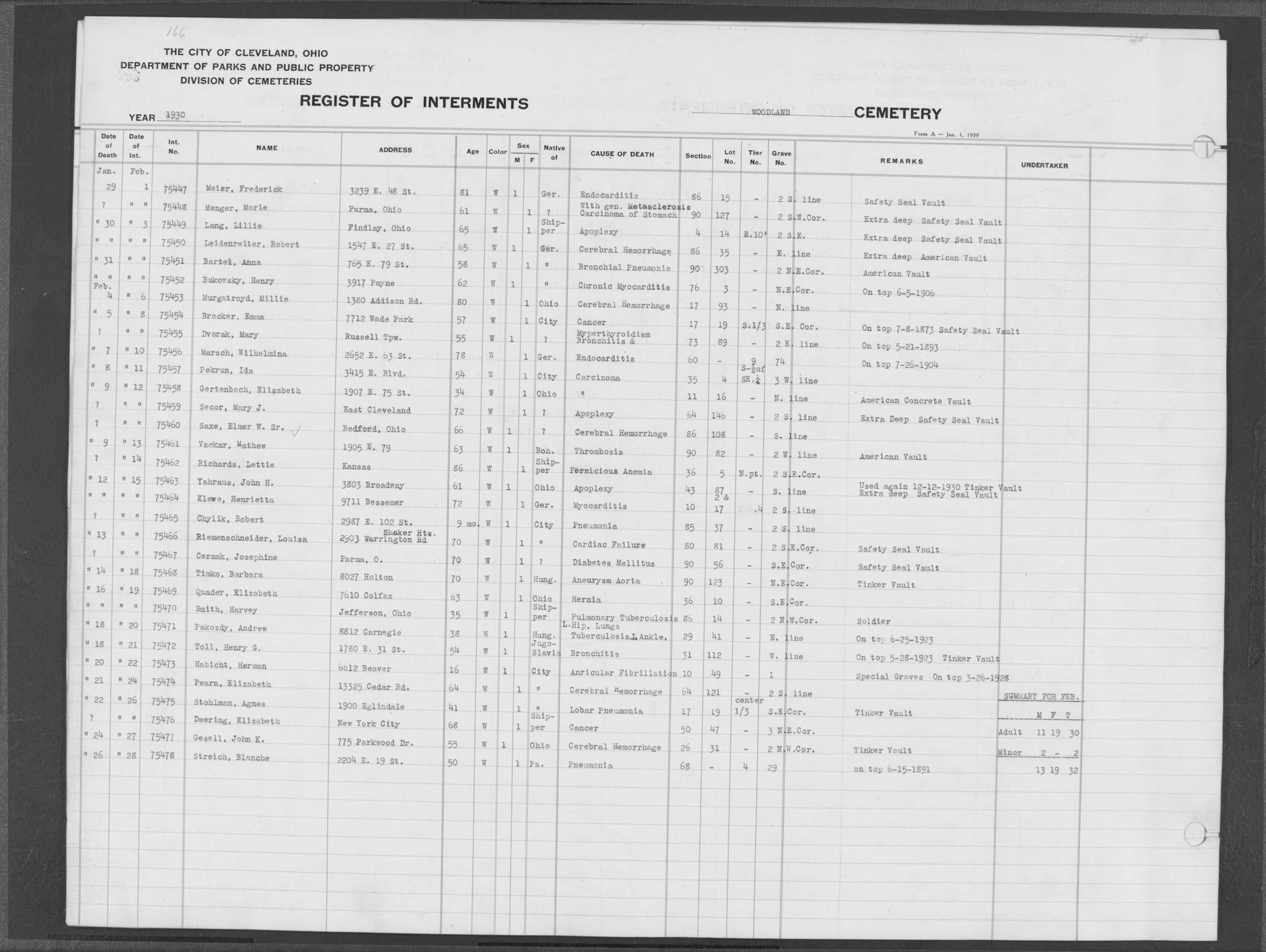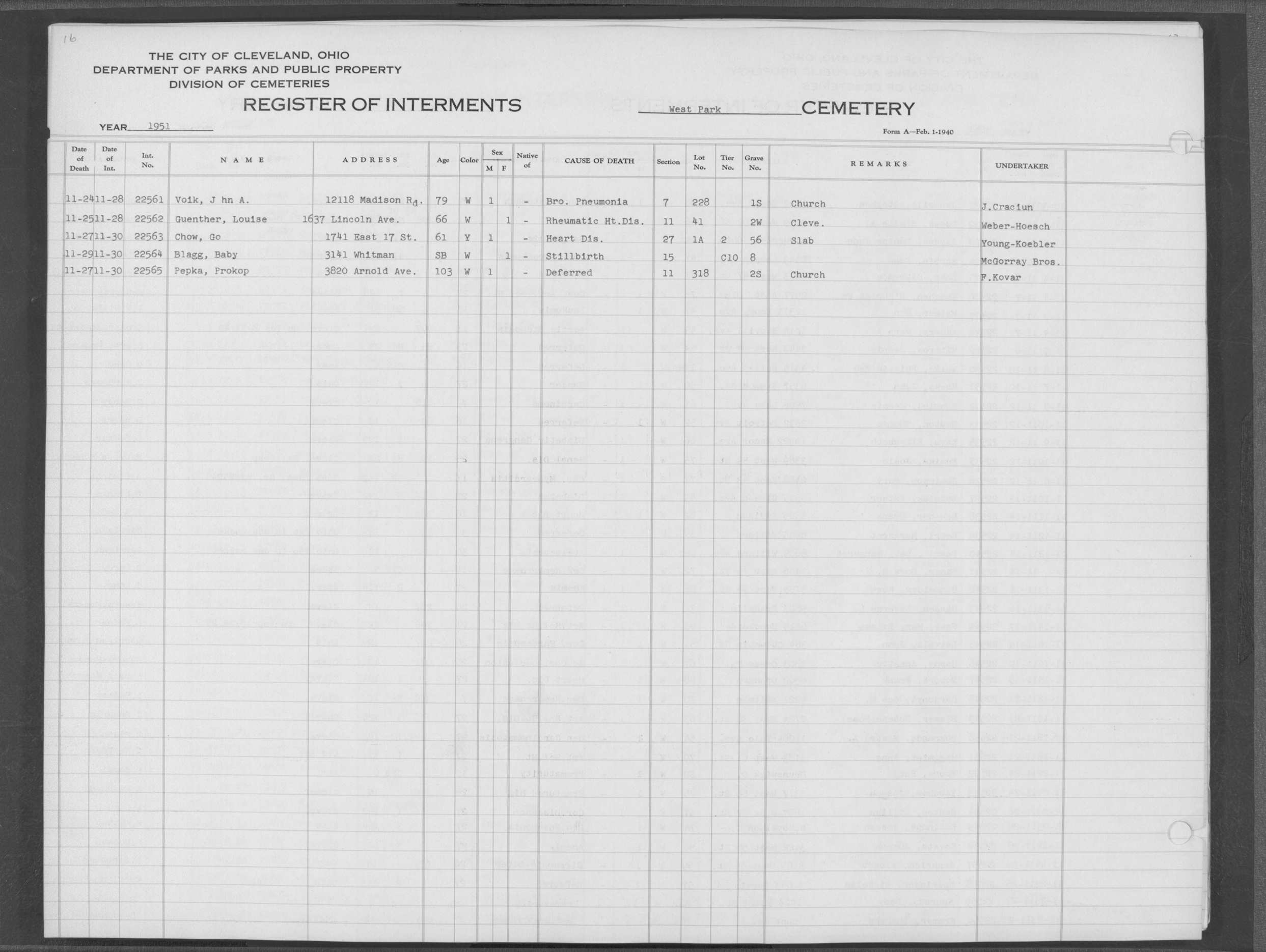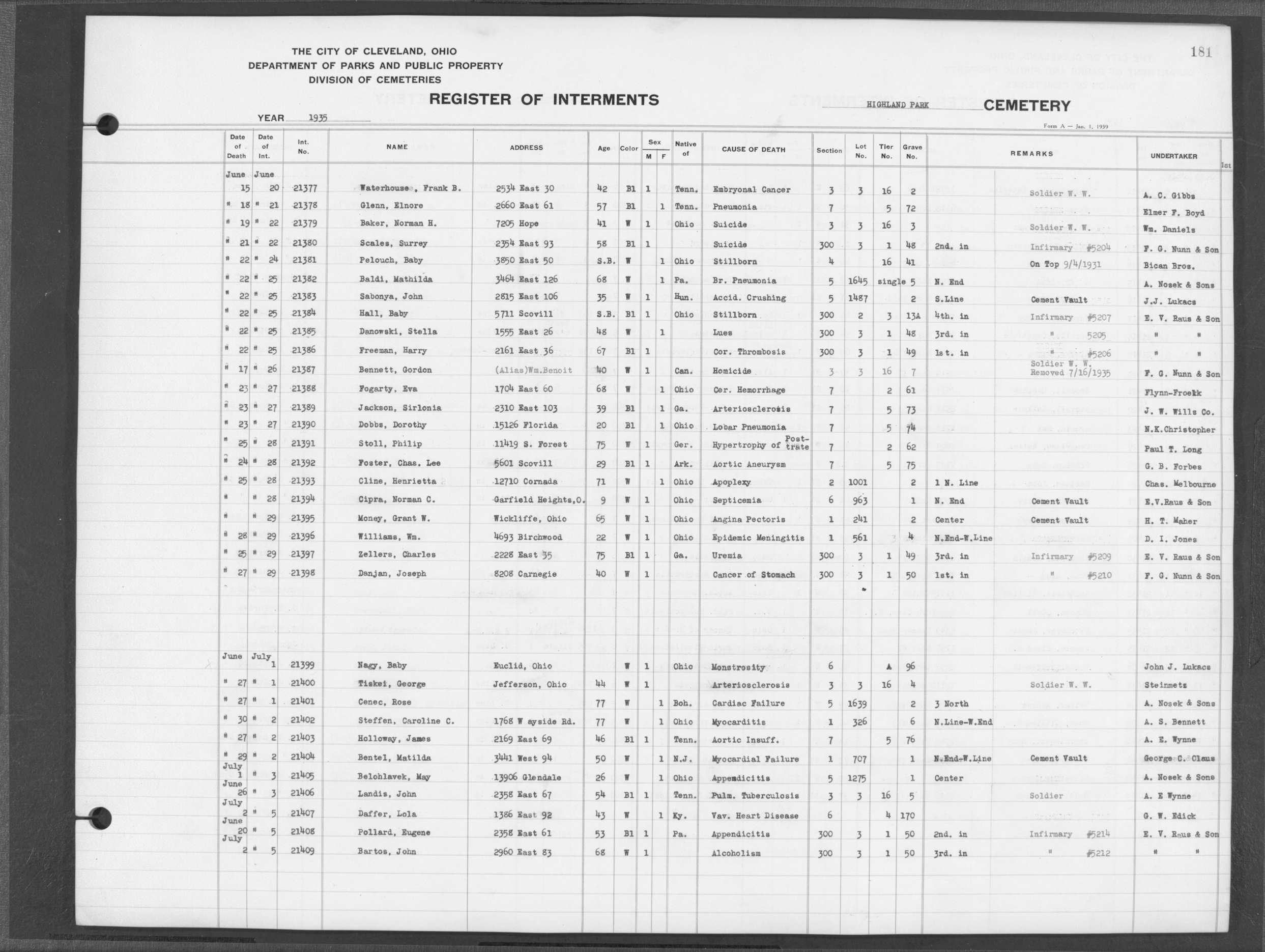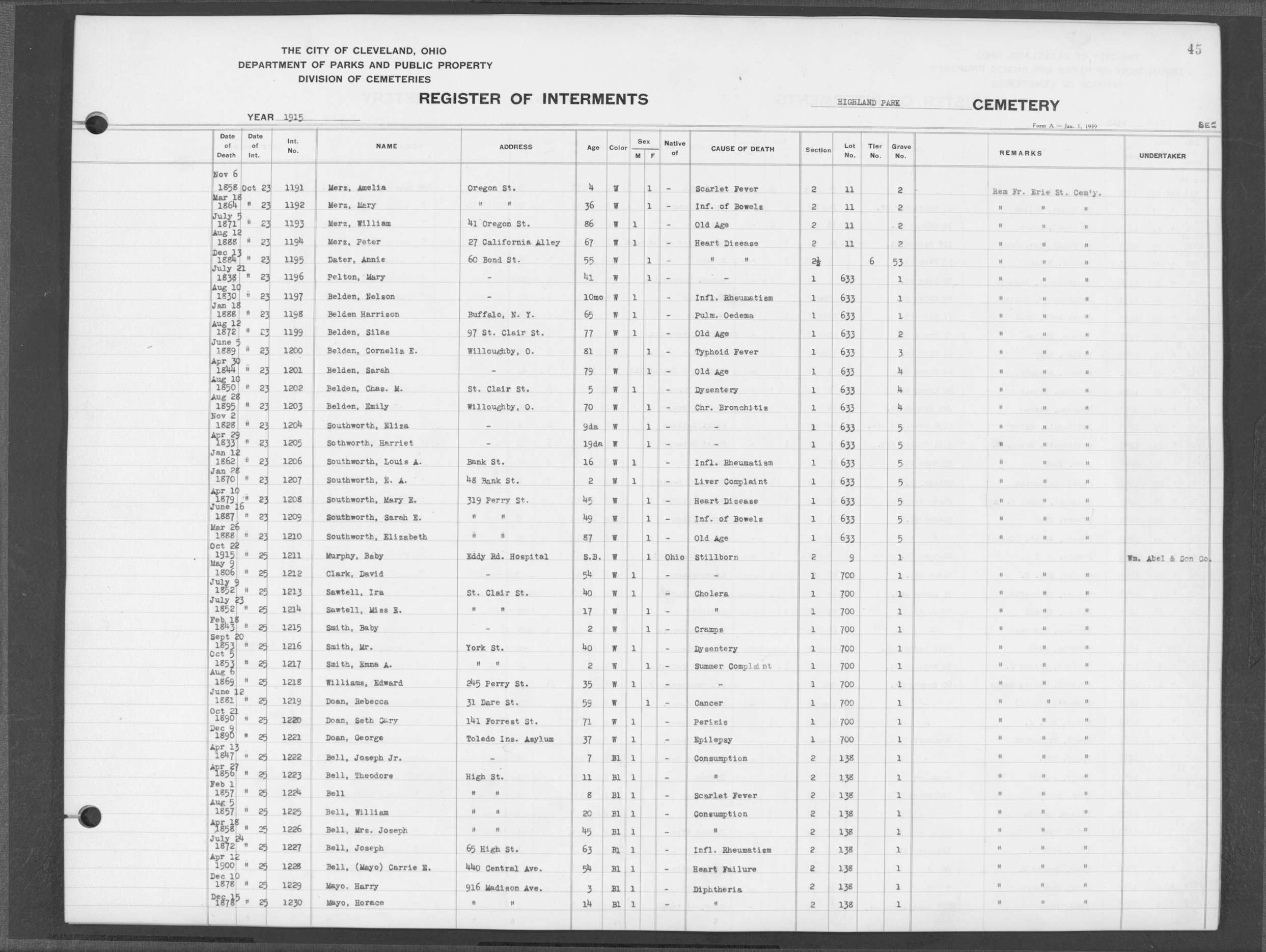 | West Park | 1 | 39 | Apr | 26 | 1909 | 1243 | Perkins, Mary A | 2d | W | F | ||||