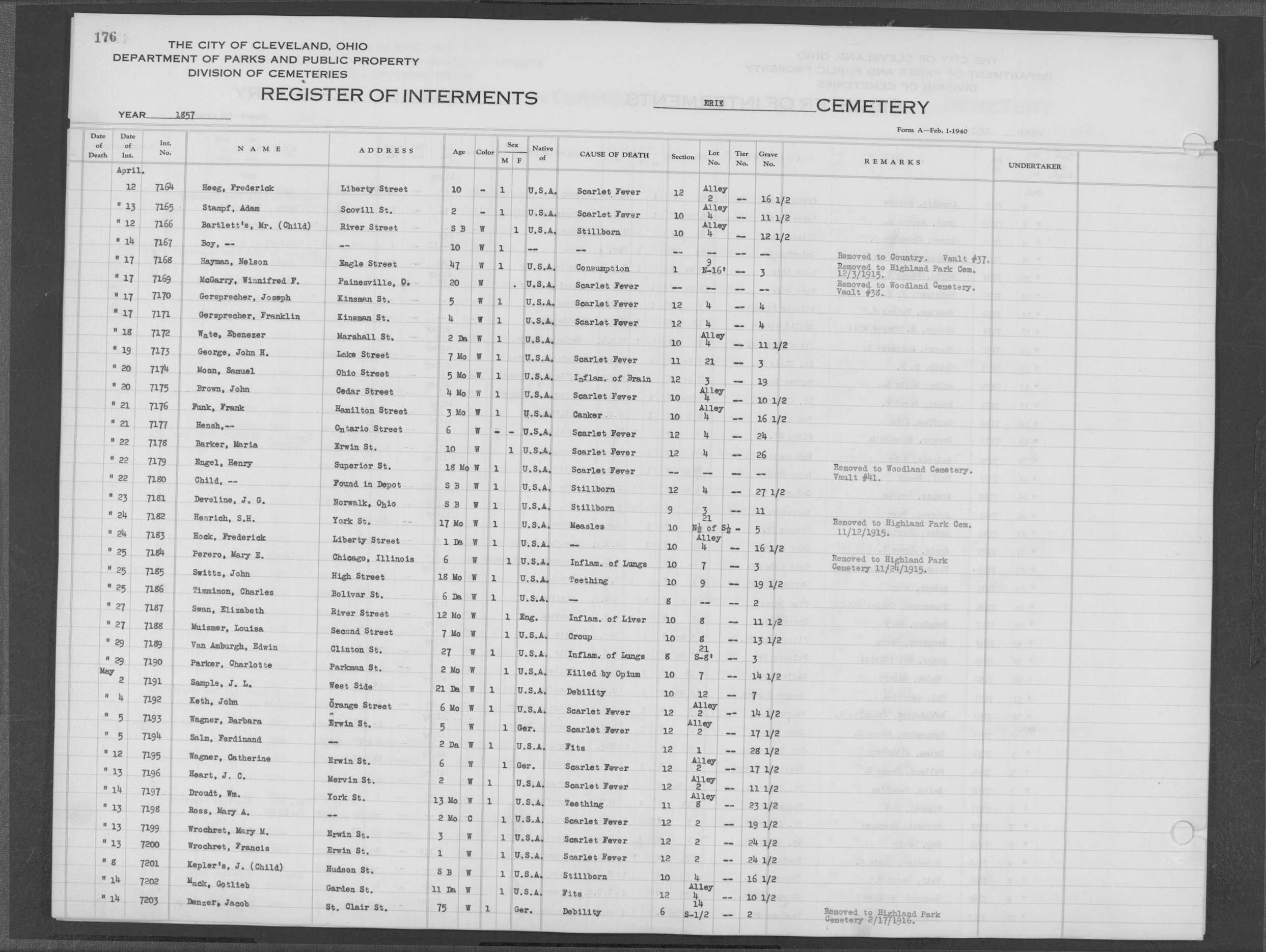 | Erie Street | 1 | 197 | Dec | 26 | 1859 | 7999 | Payne, | SB Child of H B | W | |||||