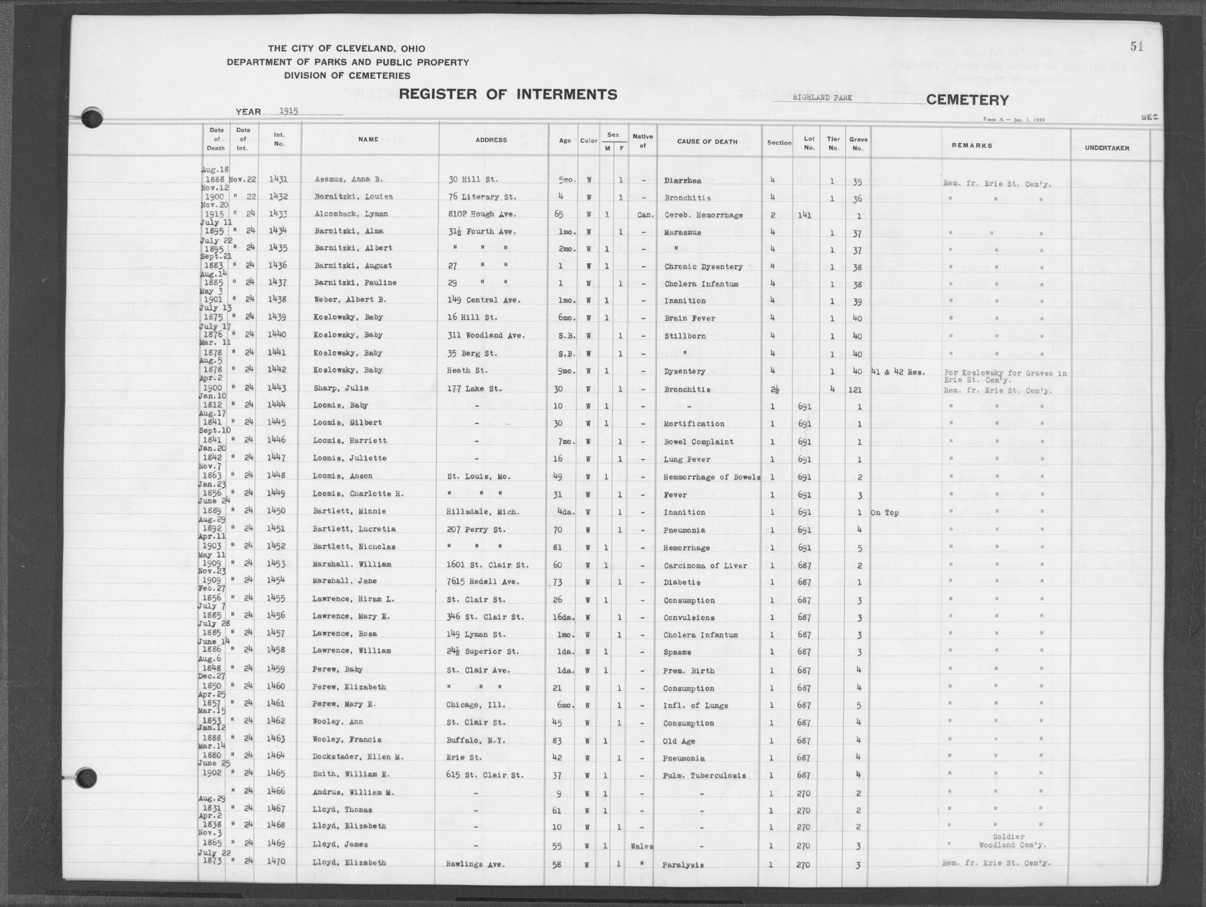 | Erie Street | 2 | 12 | Jul | 19 | 1881 | 13744 | Payles, | Child of Lewis | 3m | W | M | |||