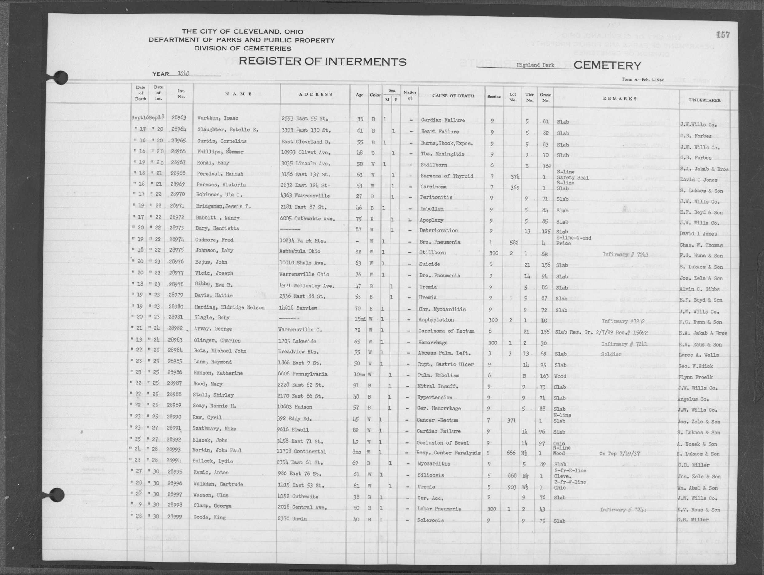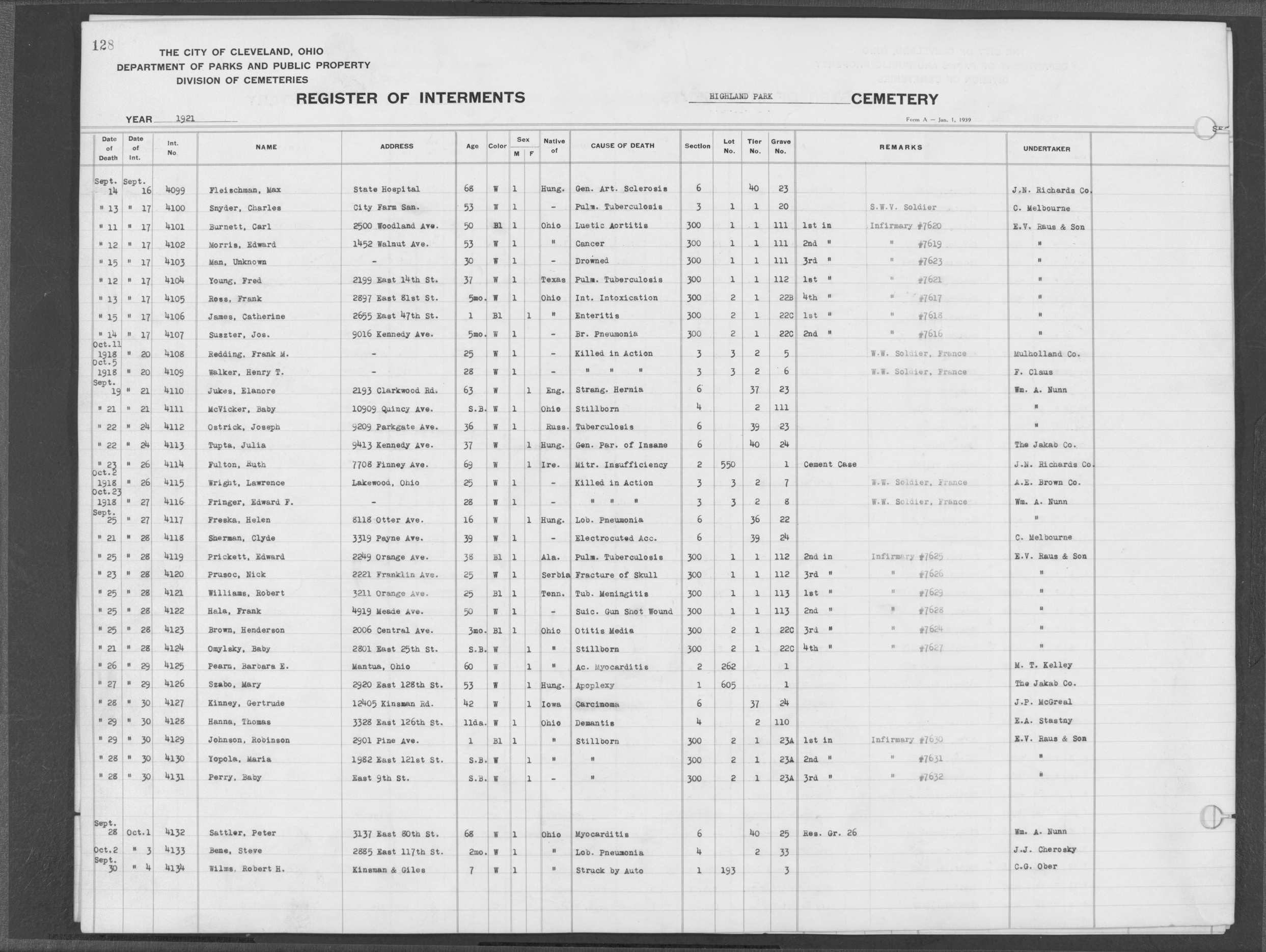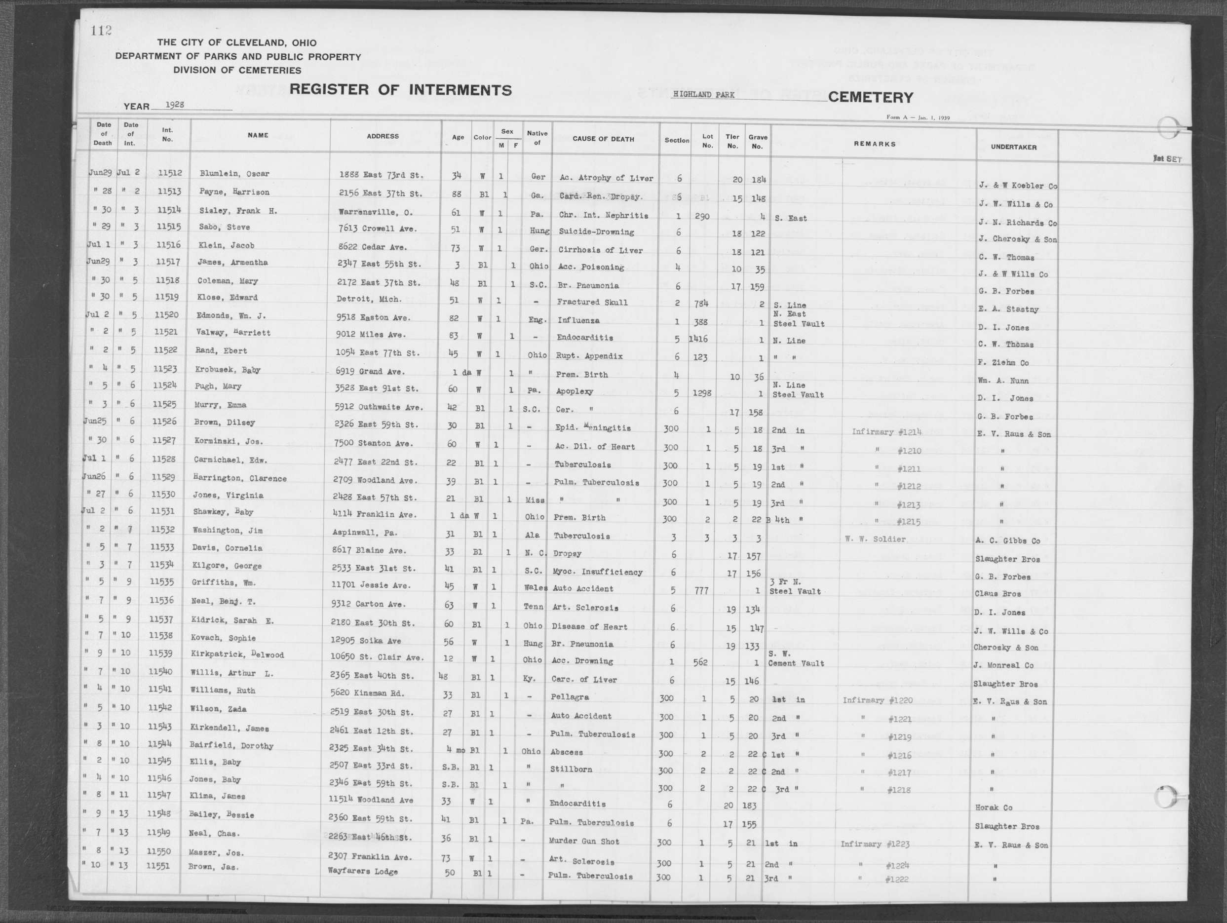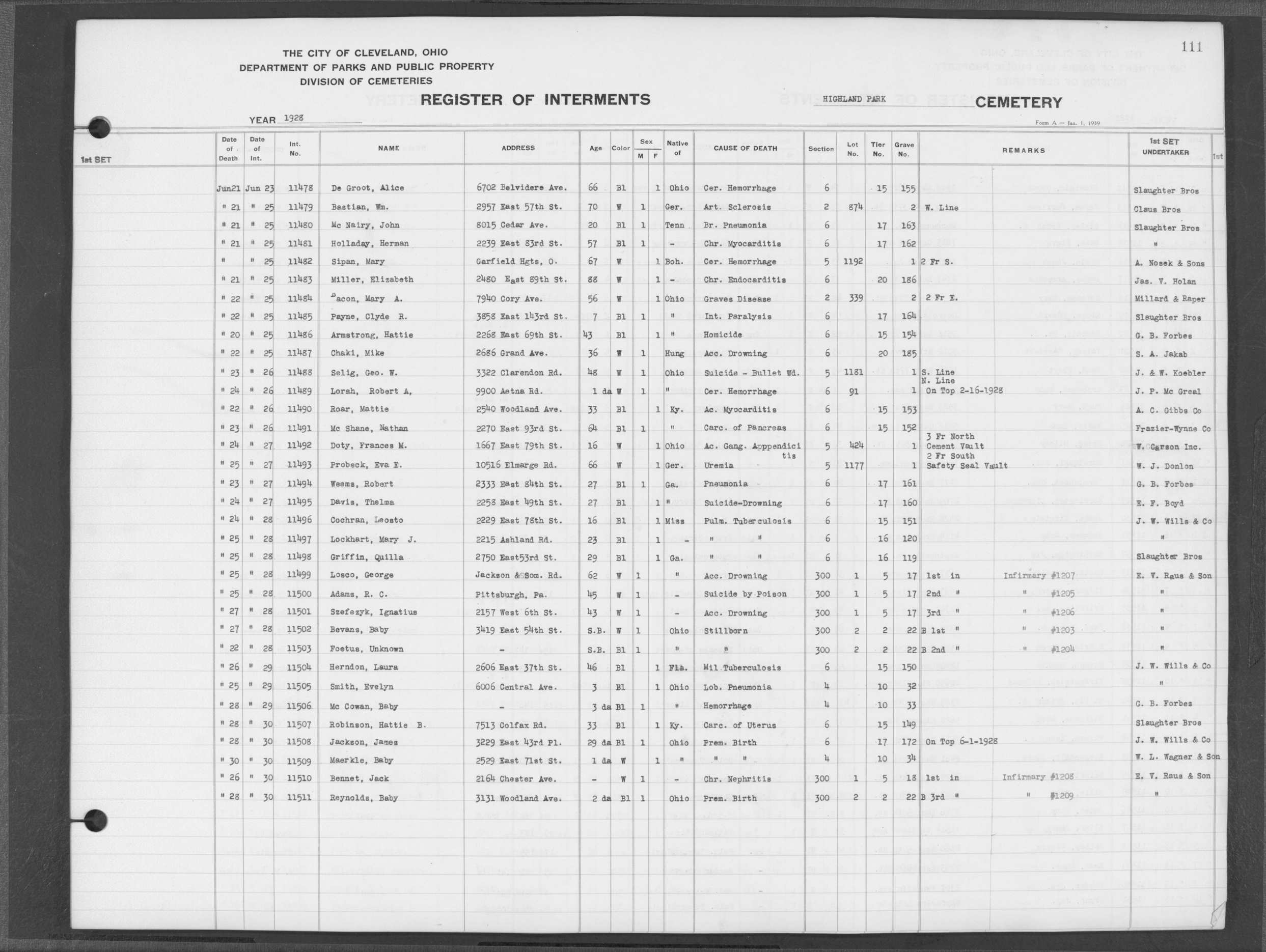 | Highland Park | 2 | 124 | Nov | 6 | 1928 | Nov | 9 | 1928 | 11986 | Payne, Carrie L | 20y | B | F | |