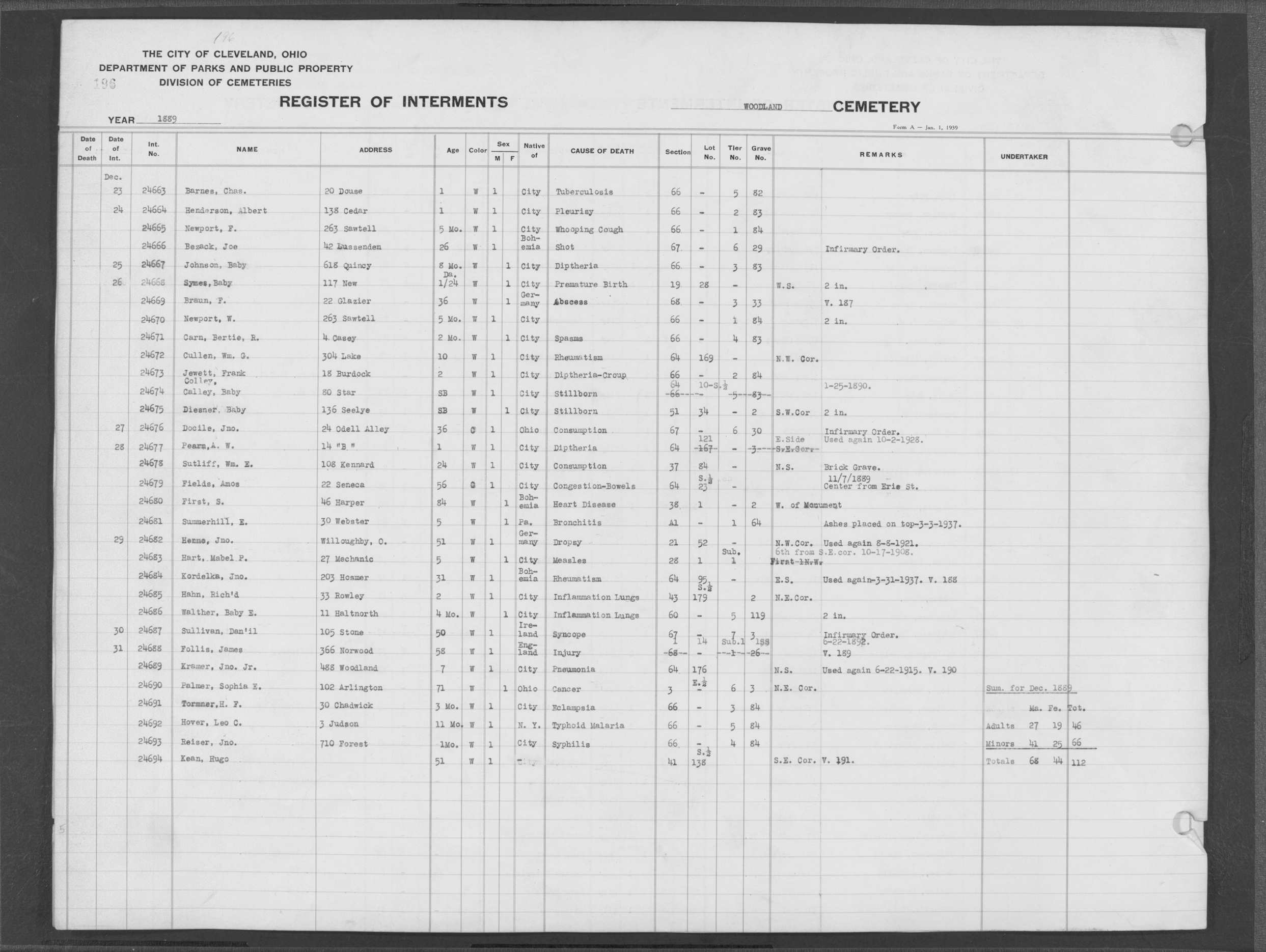 | Woodland | 4 | 82 | Dec | 29 | 1891 | 27880 | Payer, Rosetta | 6y | W | F | ||||