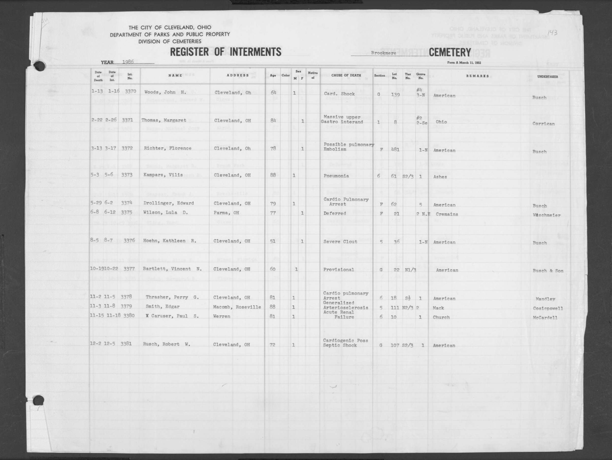 | Highland Park | 9 | 213 | Feb | 13 | 1982 | Feb | 18 | 1982 | 98892 | Smith, Julia M | 72y | F | ||