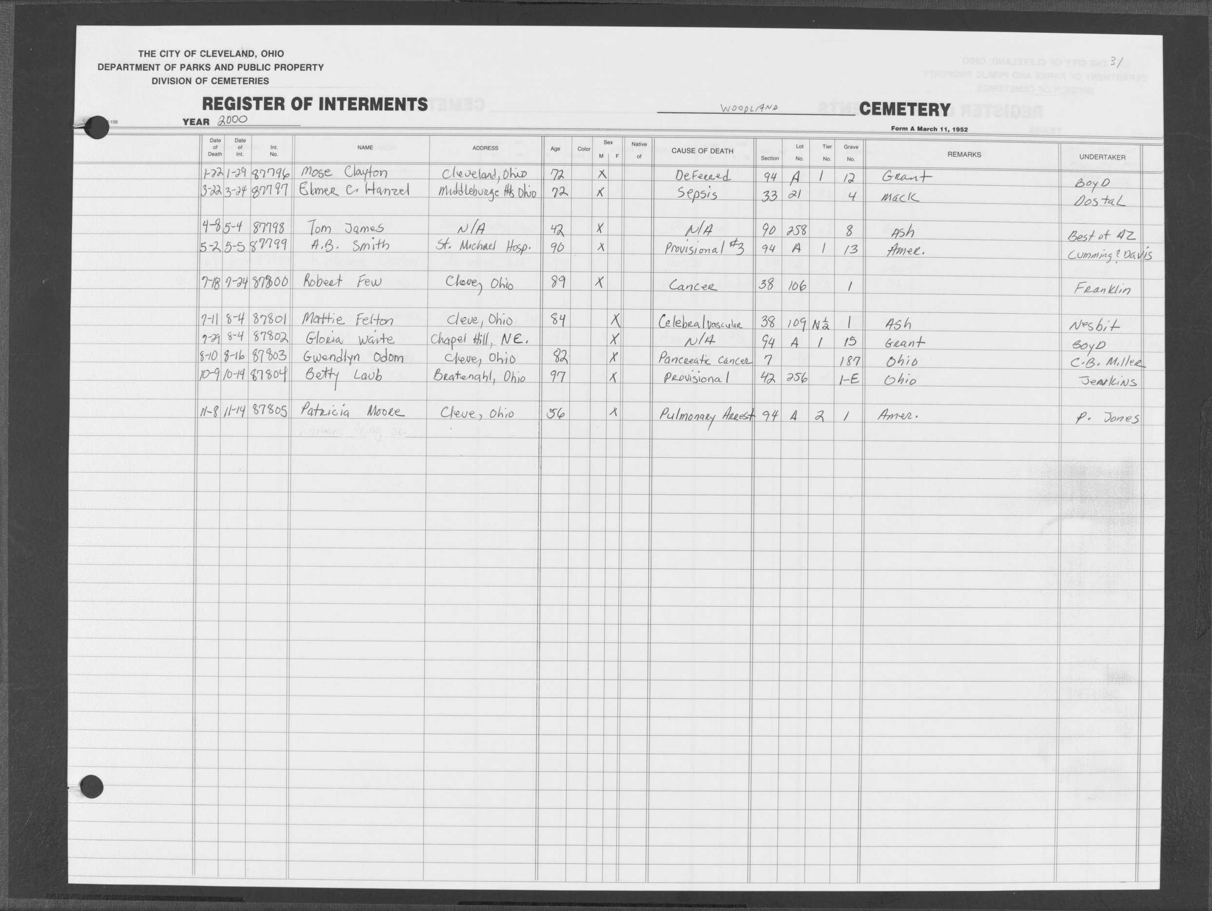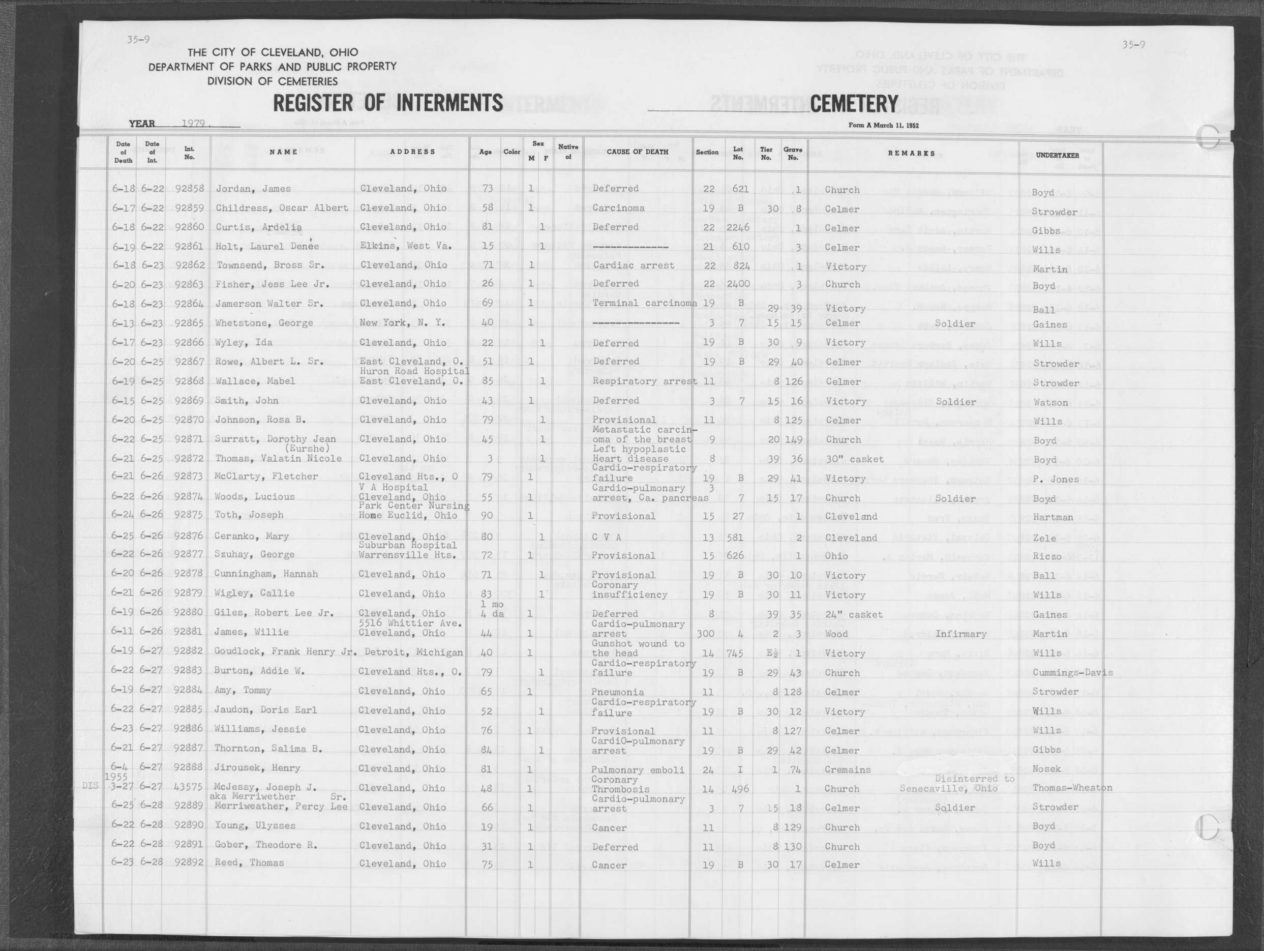 | Highland Park | 6 | 128 | May | 2 | 1961 | May | 6 | 1961 | 52997 | Smith, Joseph | 88y | M | ||