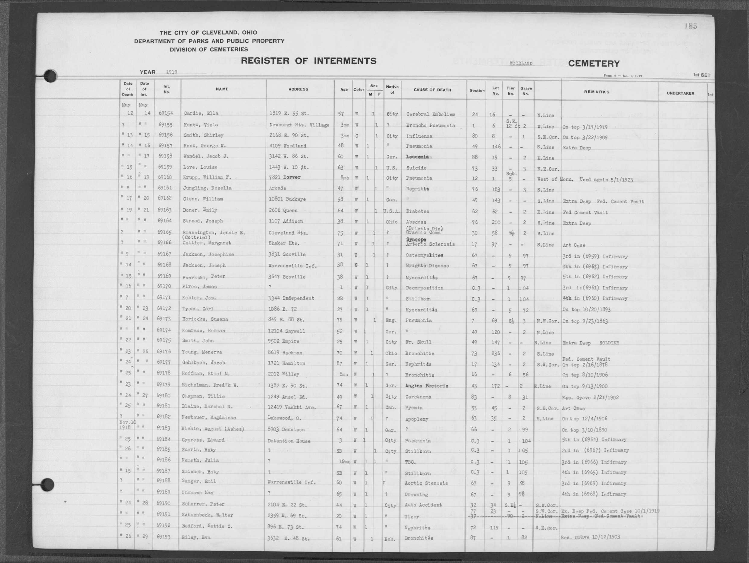 | Highland Park | 5 | 154 | Sep | 9 | 1951 | Sep | 14 | 1951 | 38739 | Smith, Julia | AKA Wells | 55y | B | F |