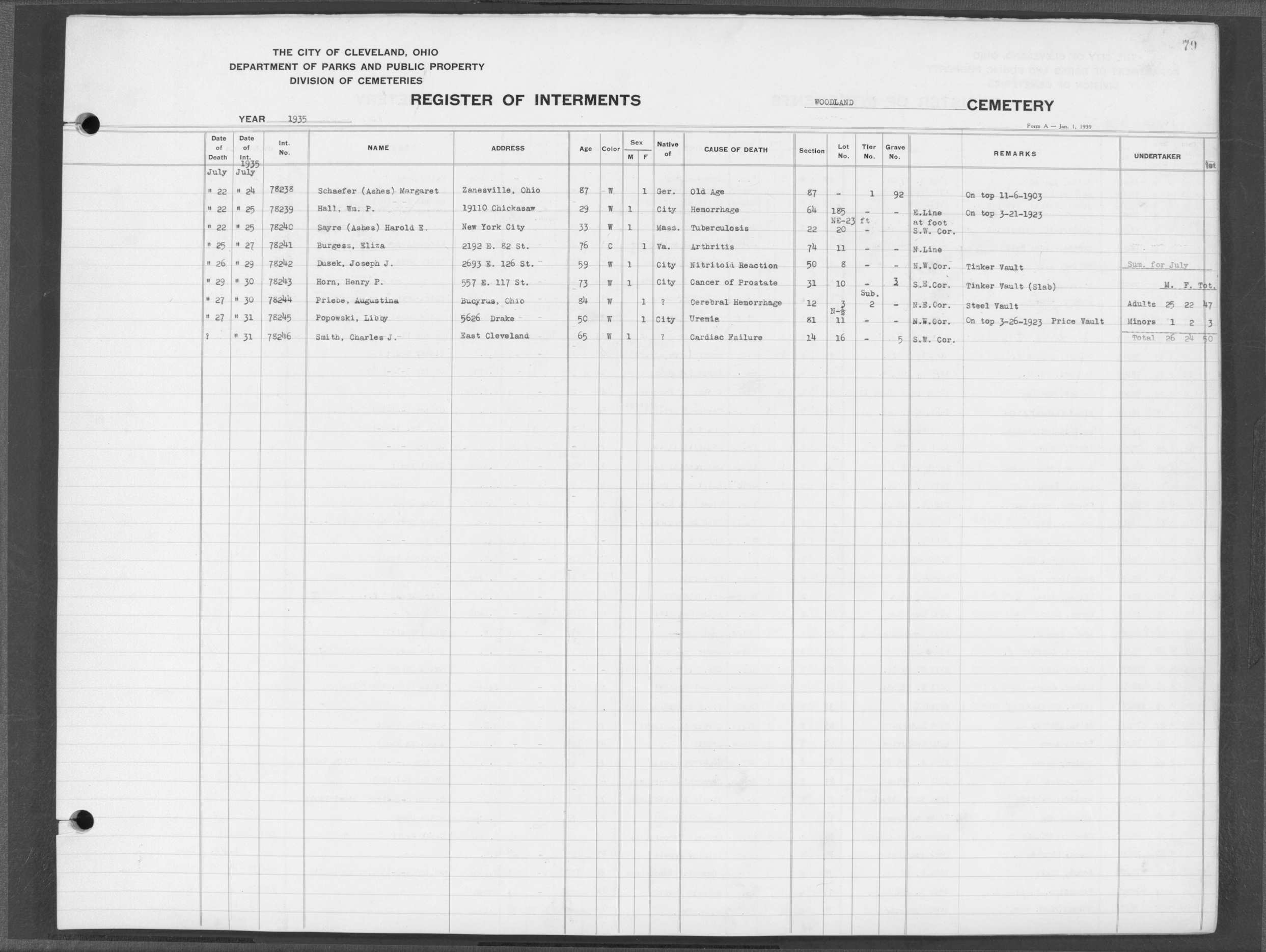 | Highland Park | 2 | 177 | Jan | 30 | 1930 | Feb | 4 | 1930 | 13911 | Smith, Julia | 41y | B | F | |