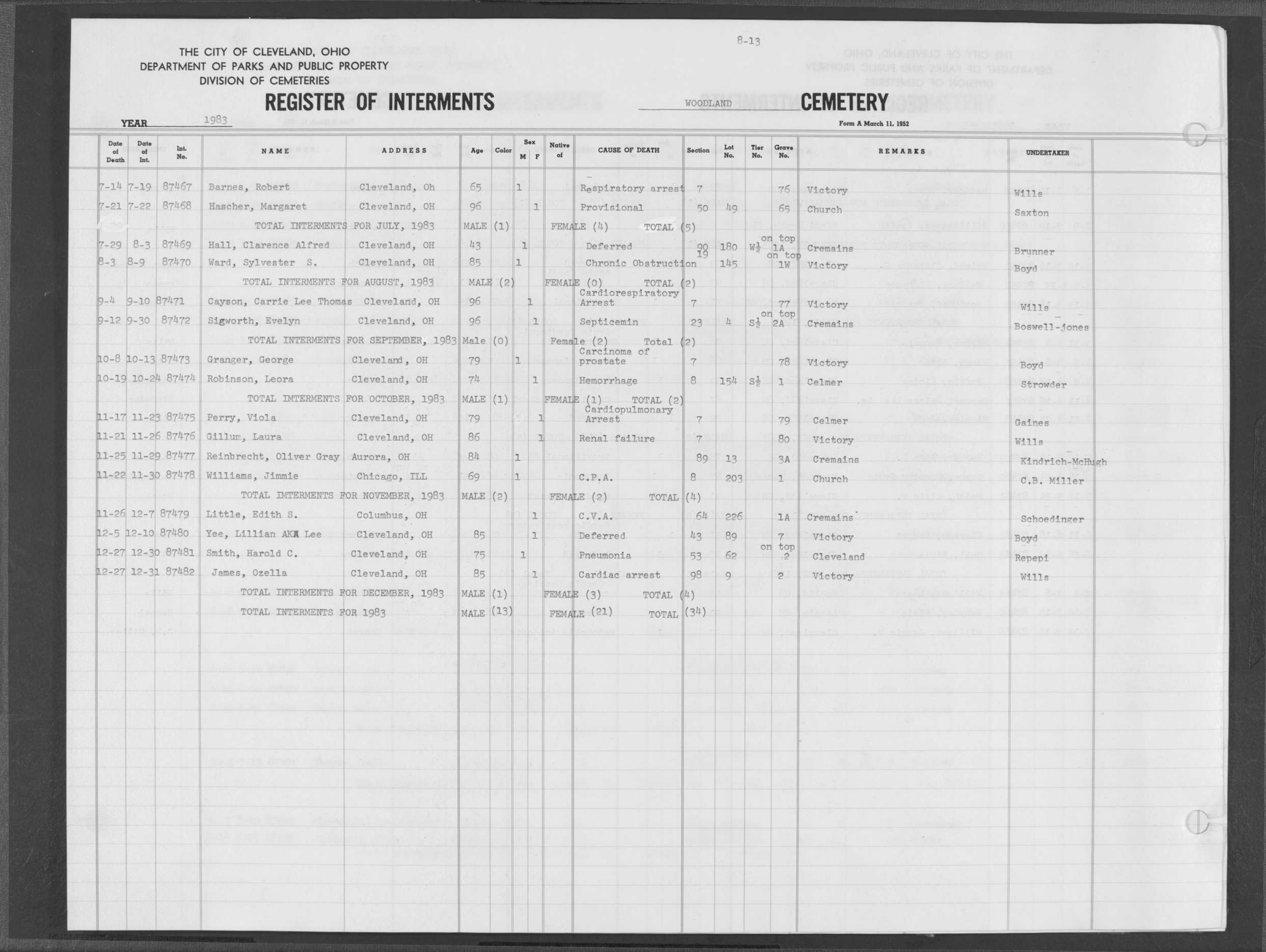 | Highland Park | 9 | 303 | Sep | 1 | 1983 | Sep | 8 | 1983 | 101896 | Smith, Joseph Nathaniel | 73y | M | ||