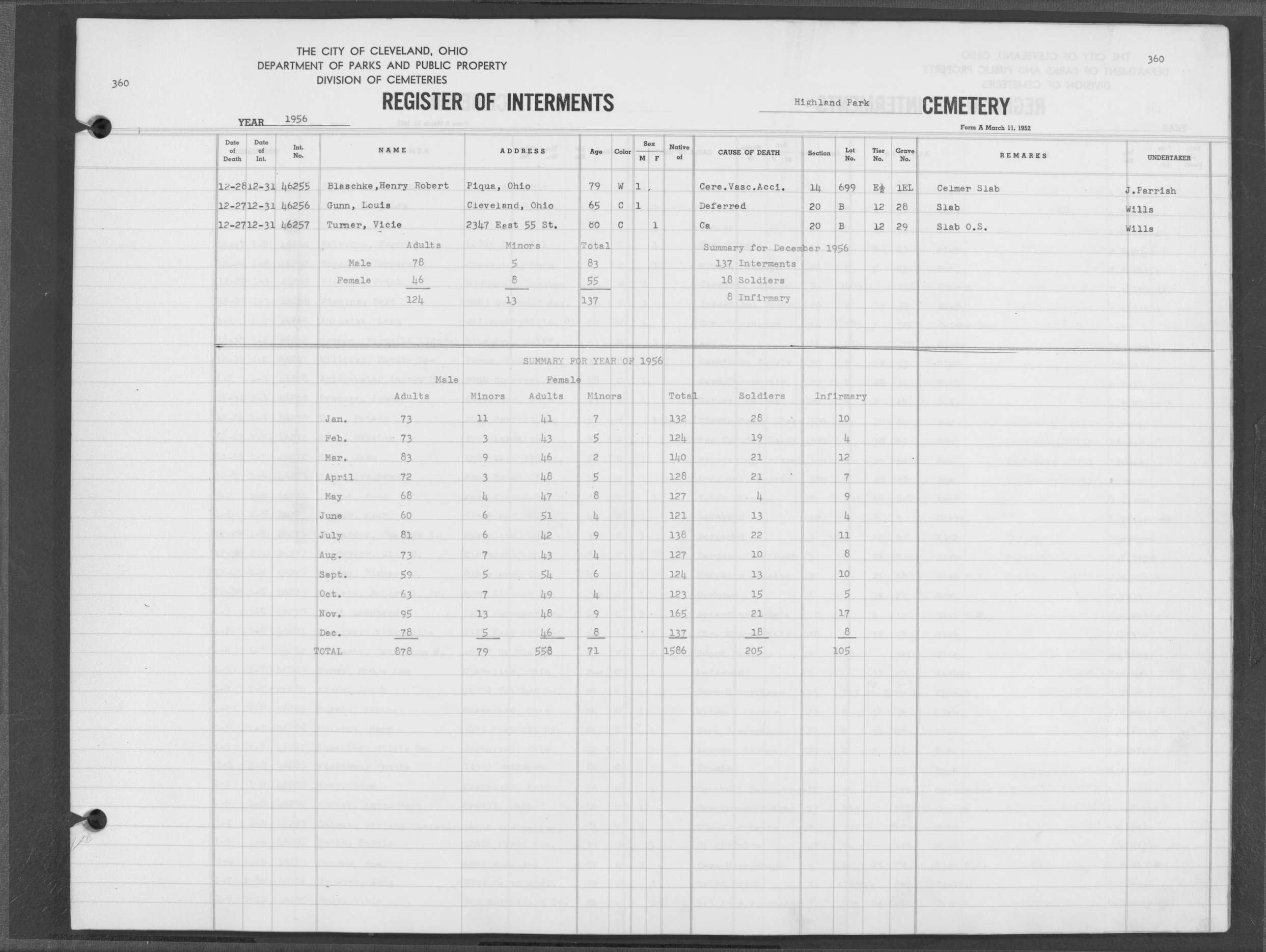 | Highland Park | 5 | 340 | Jul | 15 | 1956 | Jul | 21 | 1956 | 45541 | Tyree, William | 66y | C | M | |