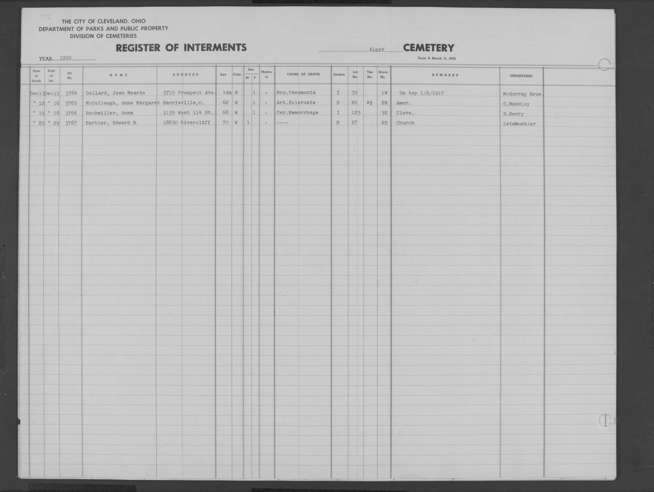 | Alger | 1 | 44 | Dec | 31 | 1917 | 890 | Zilich, Mary M | 57y | W | F | ||||